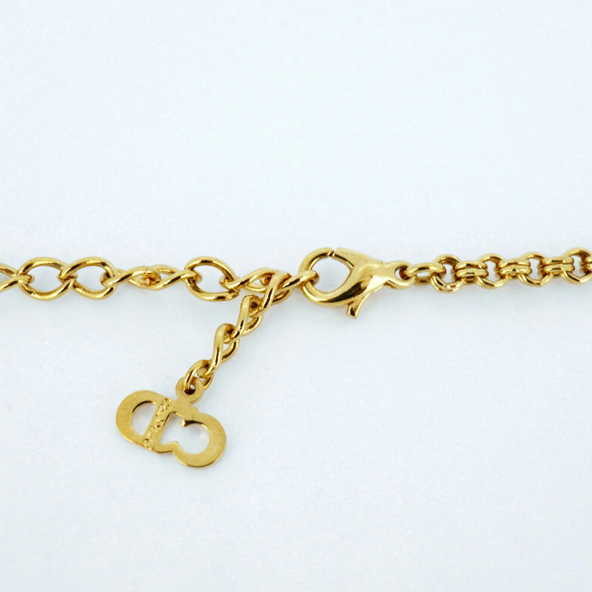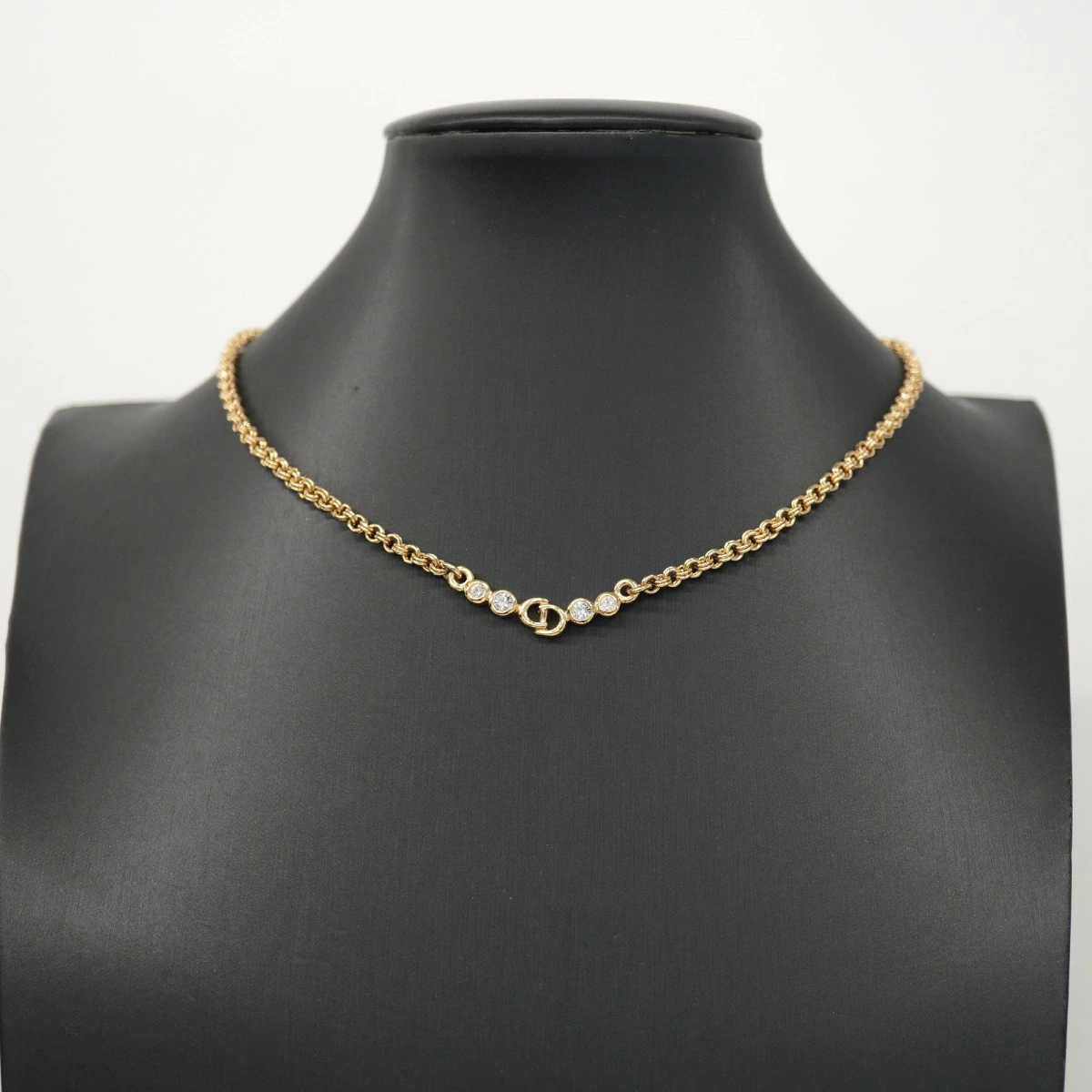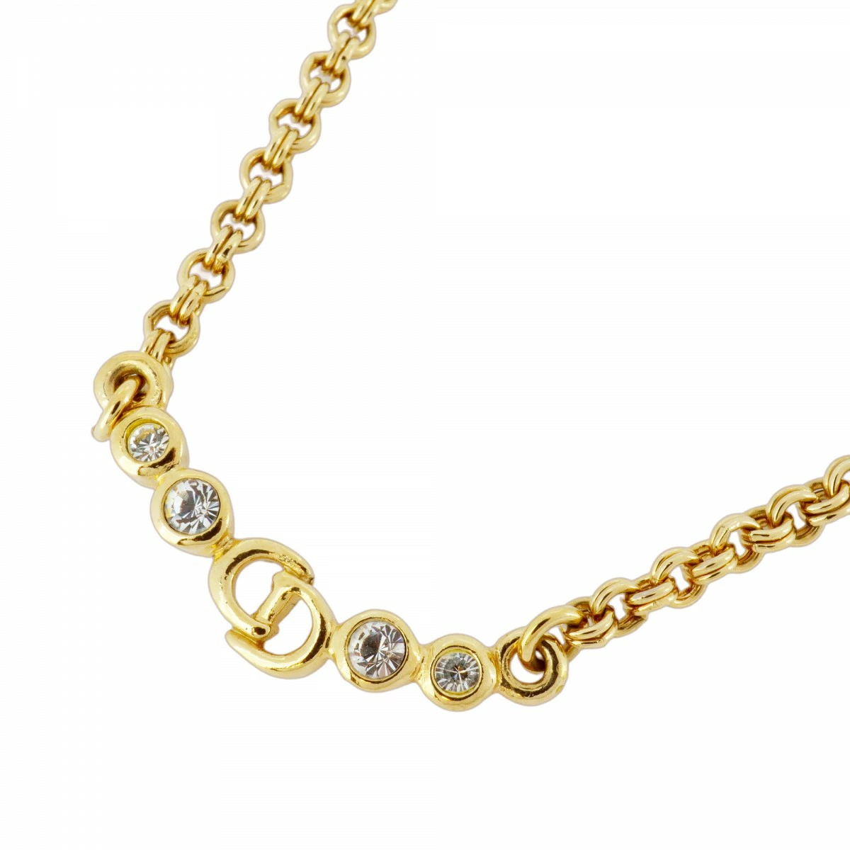 【5jmb0689】クリスチャンディオール ネックレス CDロゴ GPメッキ ラインストーン ゴールド【中古】レディース