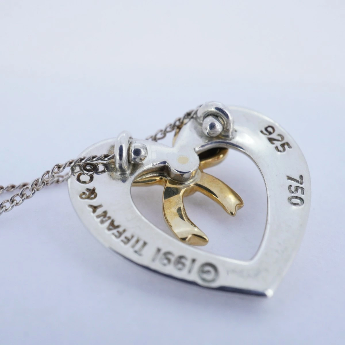 【5jmb0697】ティファニー ネックレス ハートリボン K18YG イエローゴールド シルバー925【中古】レディース