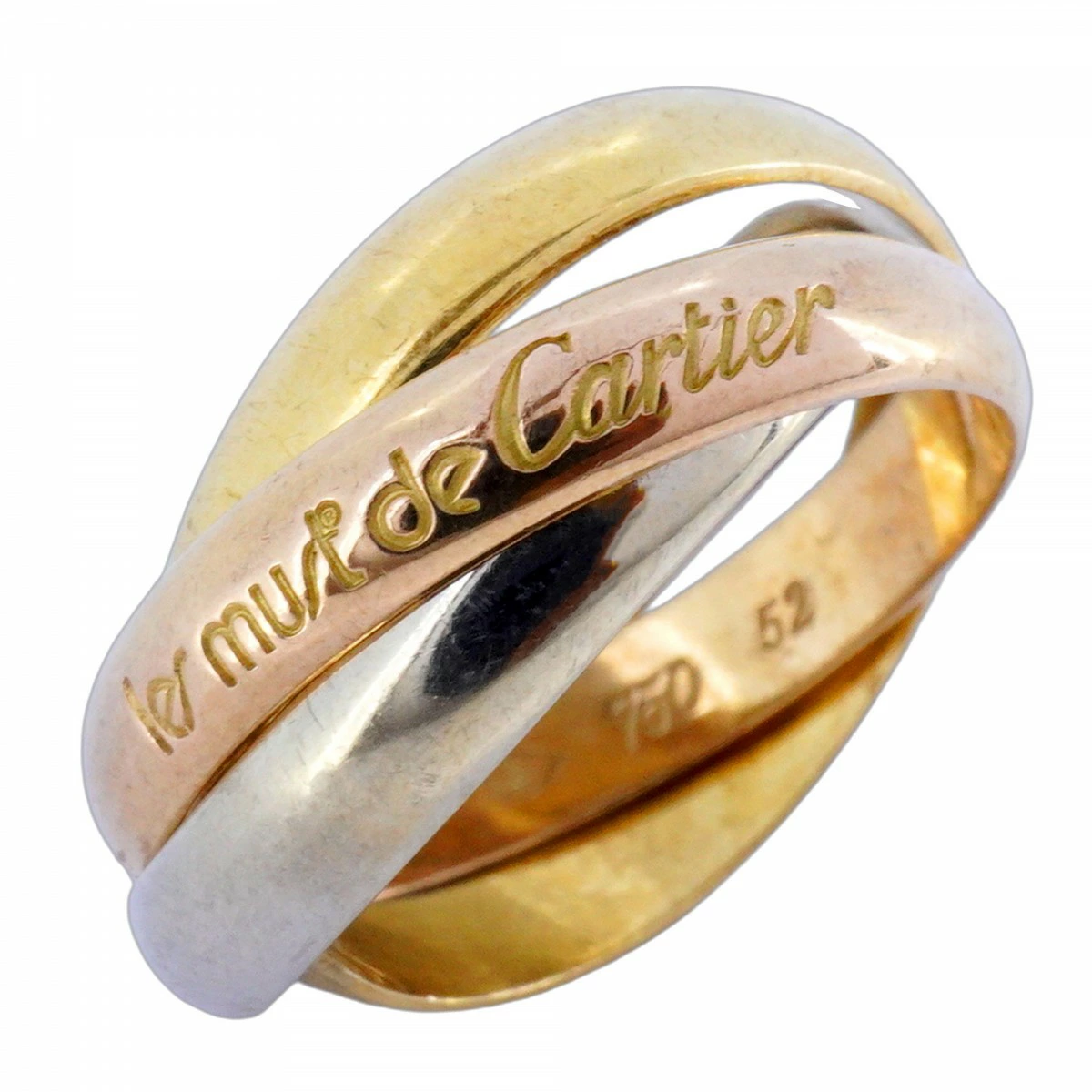 【5jmb0700】カルティエ リング トリニティ K18YG イエローゴールド K18WG ホワイトゴールド K18PG ピンクゴールド #52【中古】レディース