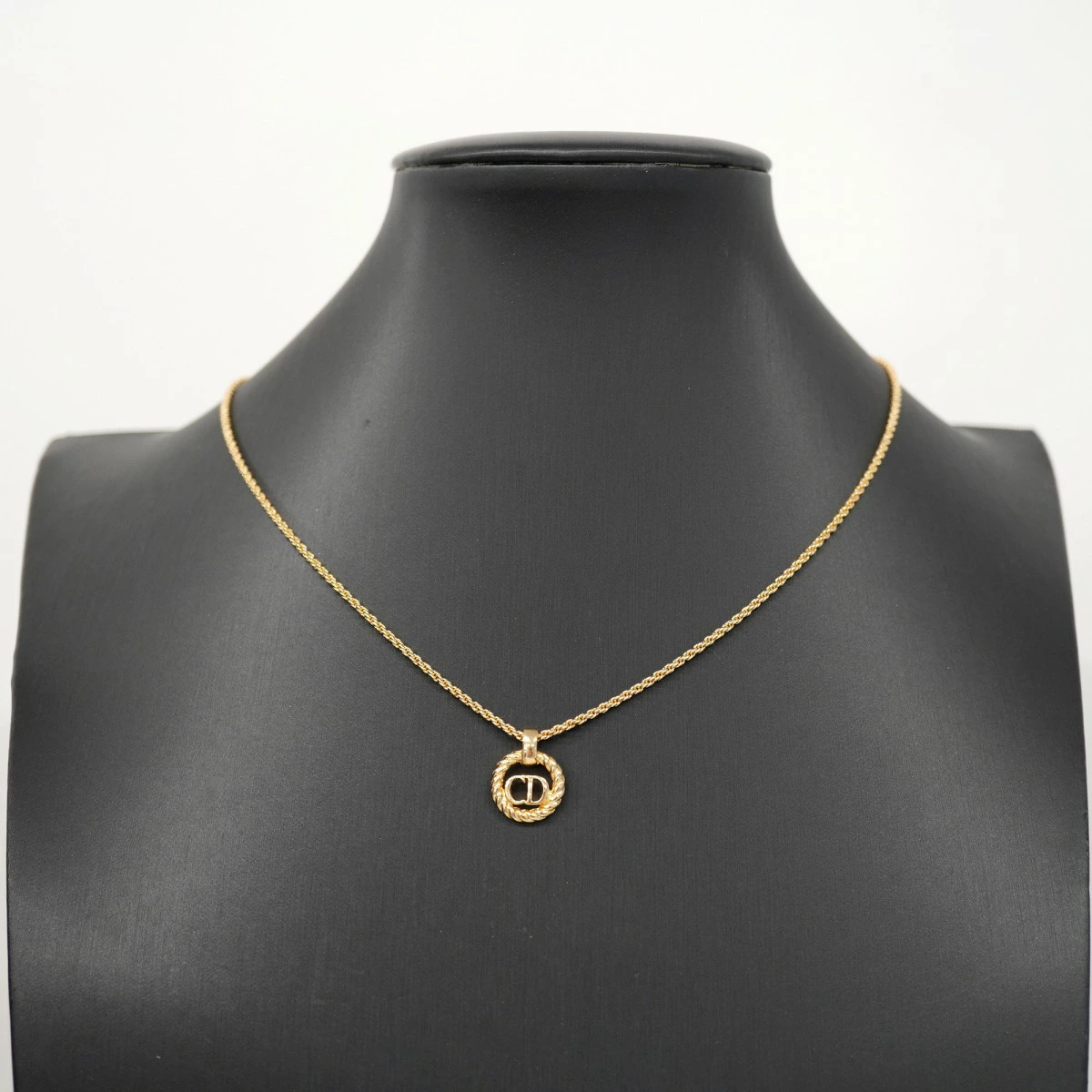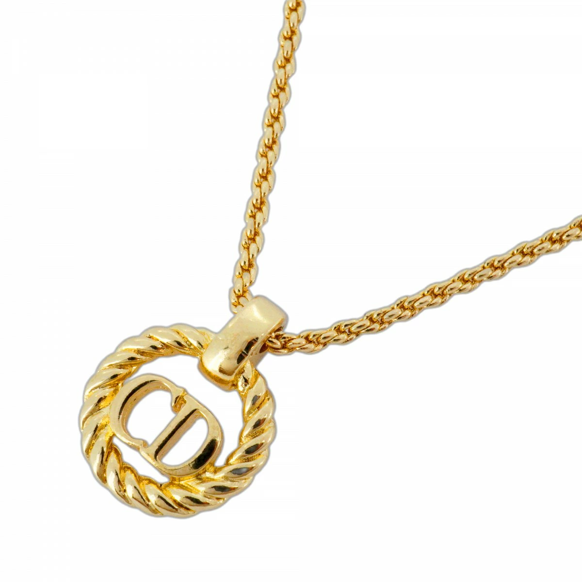 【5jmb0724】クリスチャンディオール ネックレス CDロゴ 丸型 サークル GPメッキ ゴールド【中古】レディース
