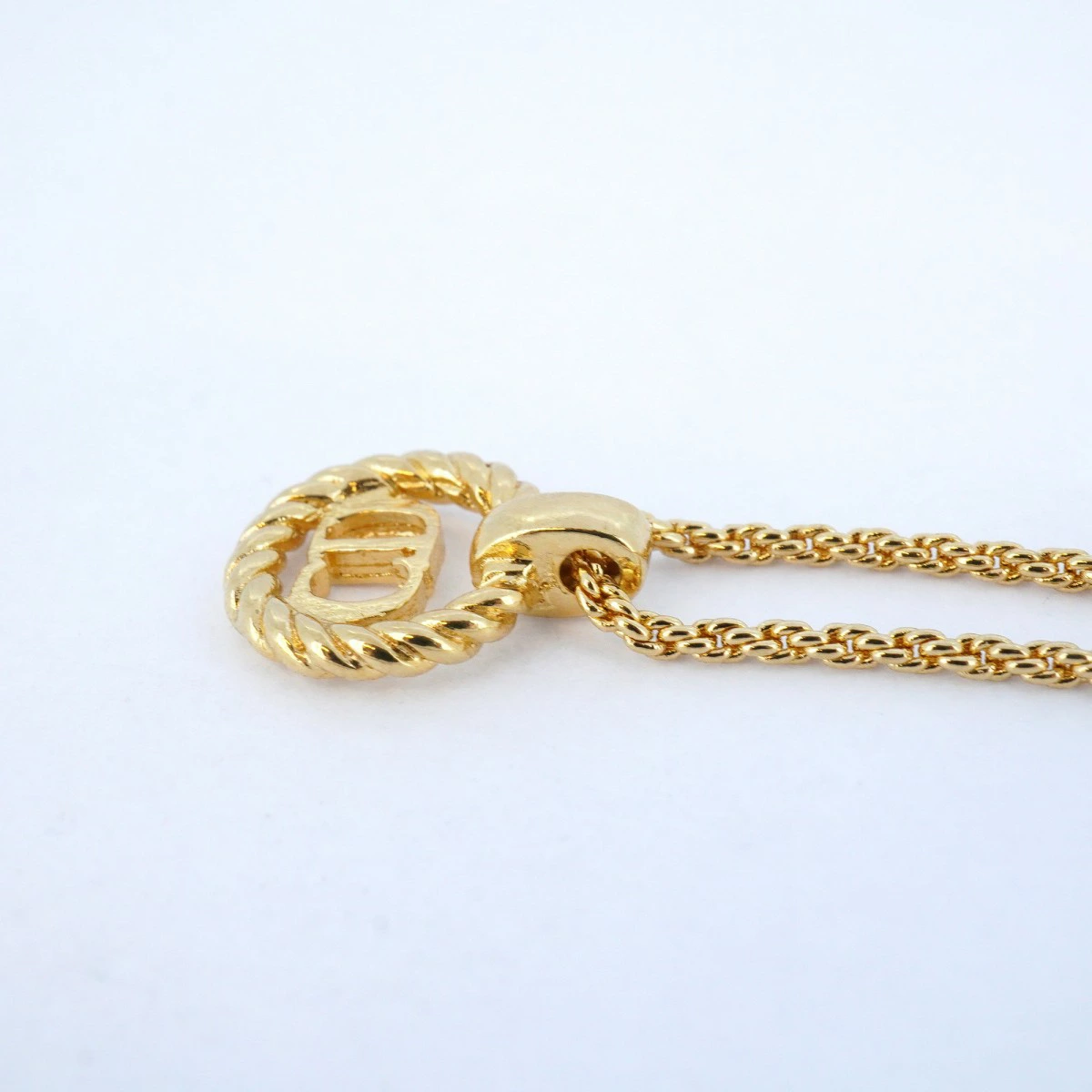 [5jmb0724] Christian Dior CD logo round circle necklace in GP-plated gold. Pre-owned. Women's.