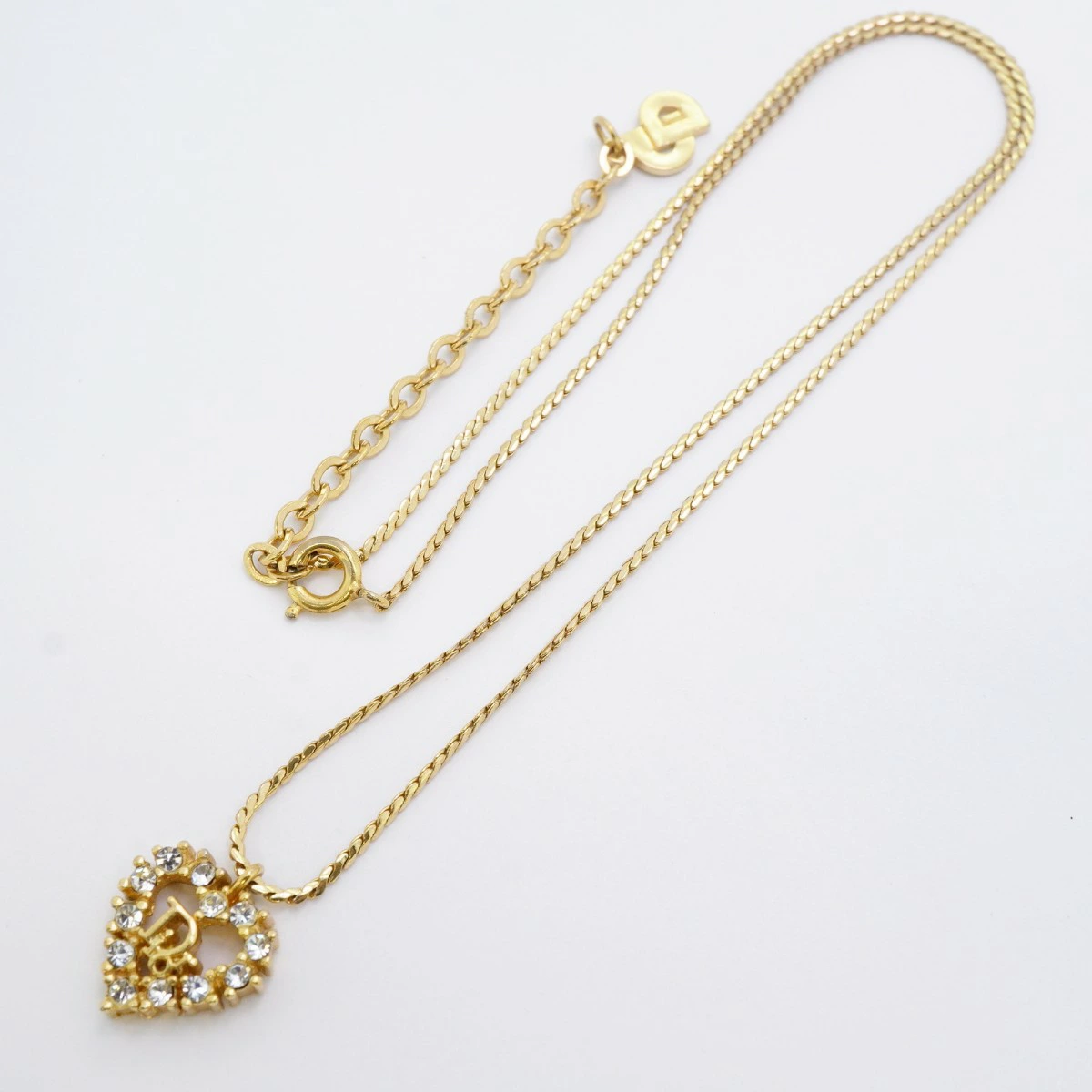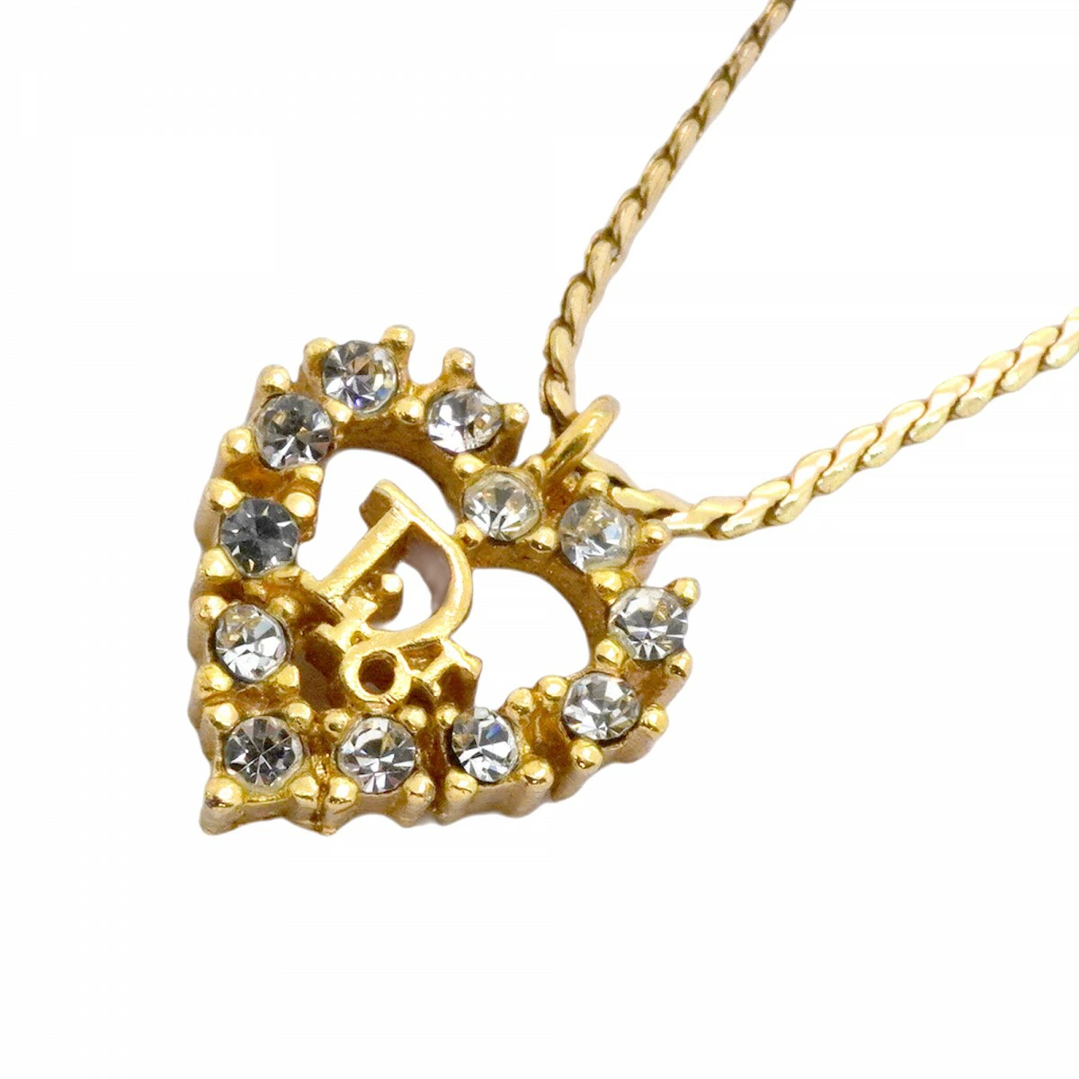 【5jmb0733】クリスチャンディオール ネックレス ディオールロゴ ハートモチーフ GPメッキ ラインストーン ゴールド【中古】レディース