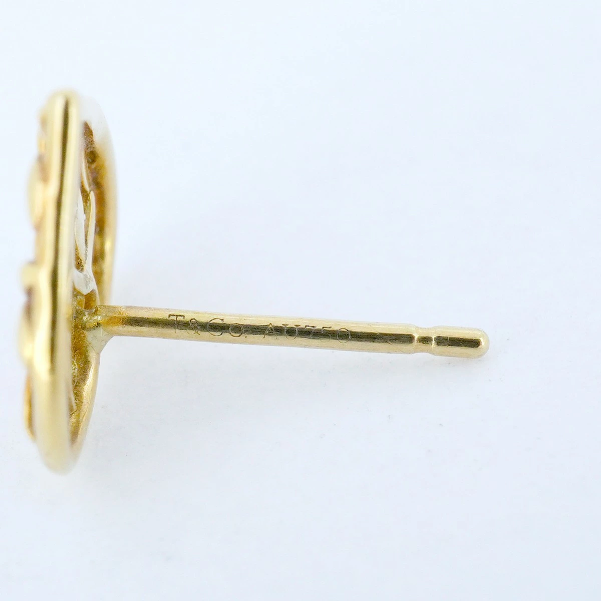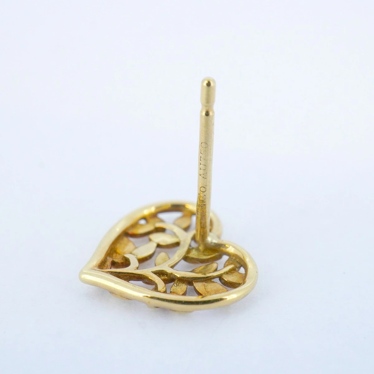[5jmb0747] Tiffany earrings with olive leaf and heart motif in 18K yellow gold. Pre-owned. Women's.