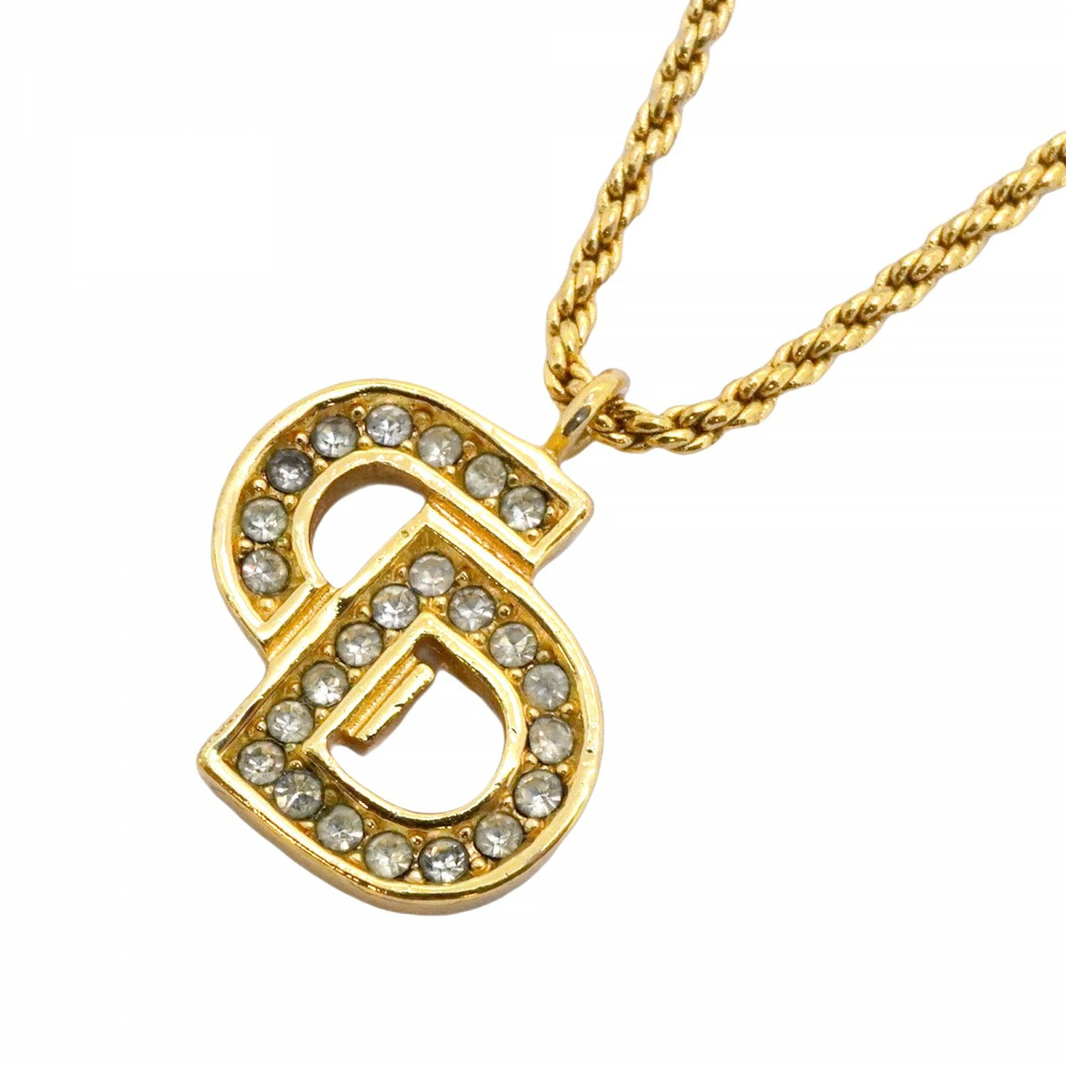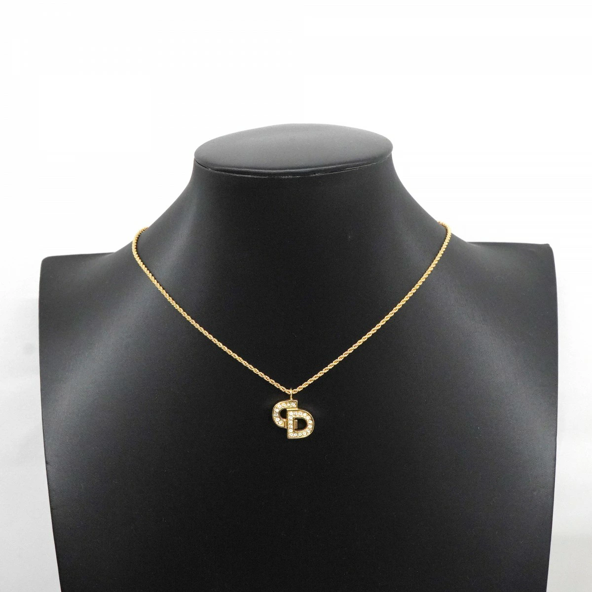 【5jmb0757】クリスチャンディオール ネックレス CDロゴ GPメッキ ラインストーン ゴールド【中古】レディース