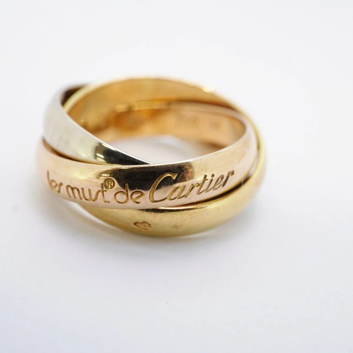 【5jmb0771】カルティエ リング トリニティ K18YG イエローゴールド K18WG ホワイトゴールド K18PG ピンクゴールド #48【中古】レディース