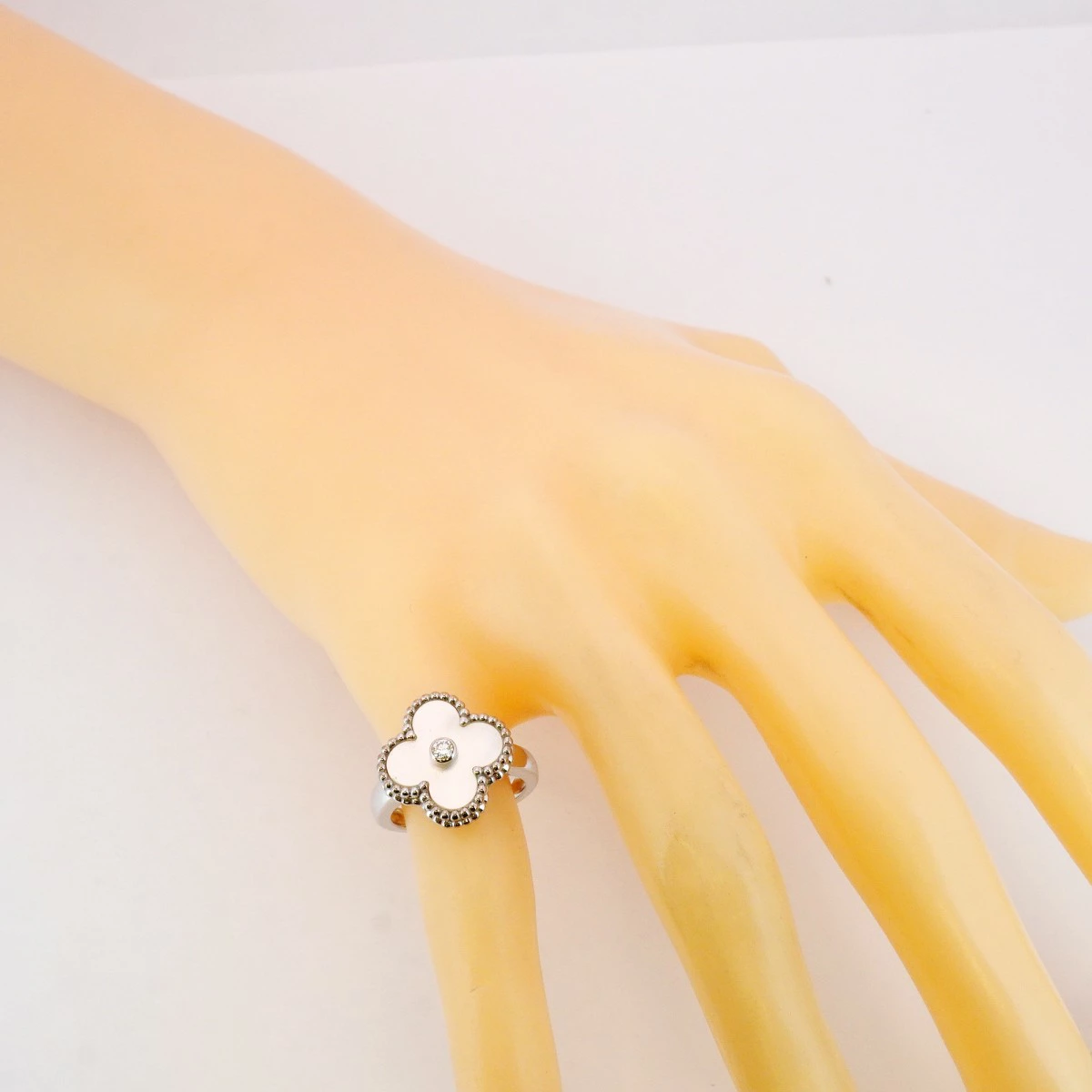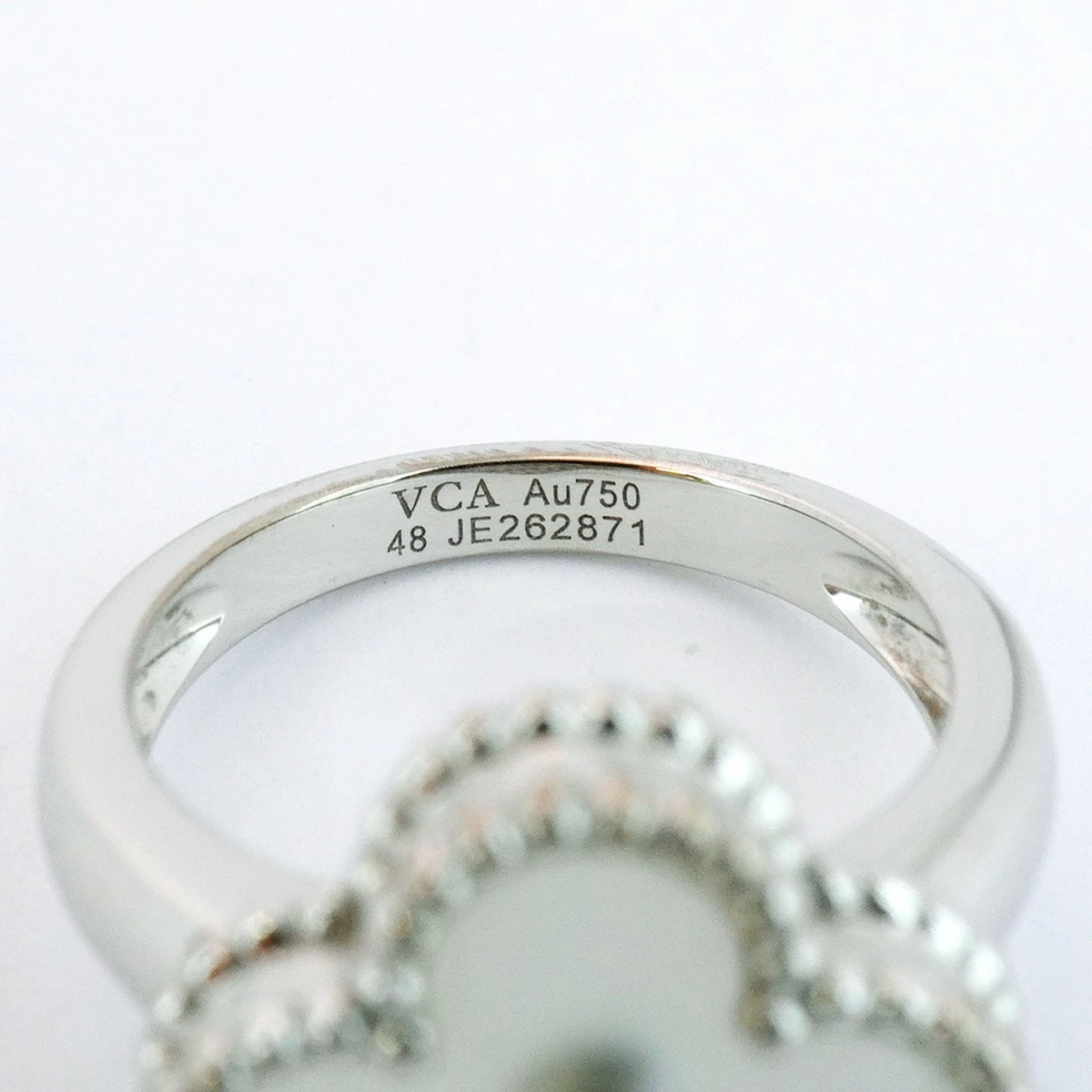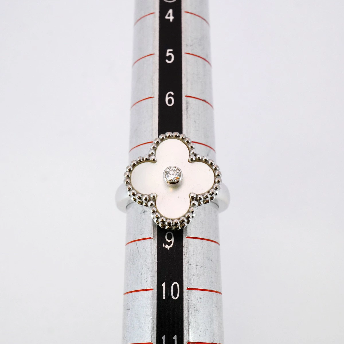 【5jmb0832】ヴァンクリーフ&アーペル リング ヴィンテージ アルハンブラ 1PD K18WG ホワイトゴールド ダイヤモンド マザーオブパール #48【中古】レディース