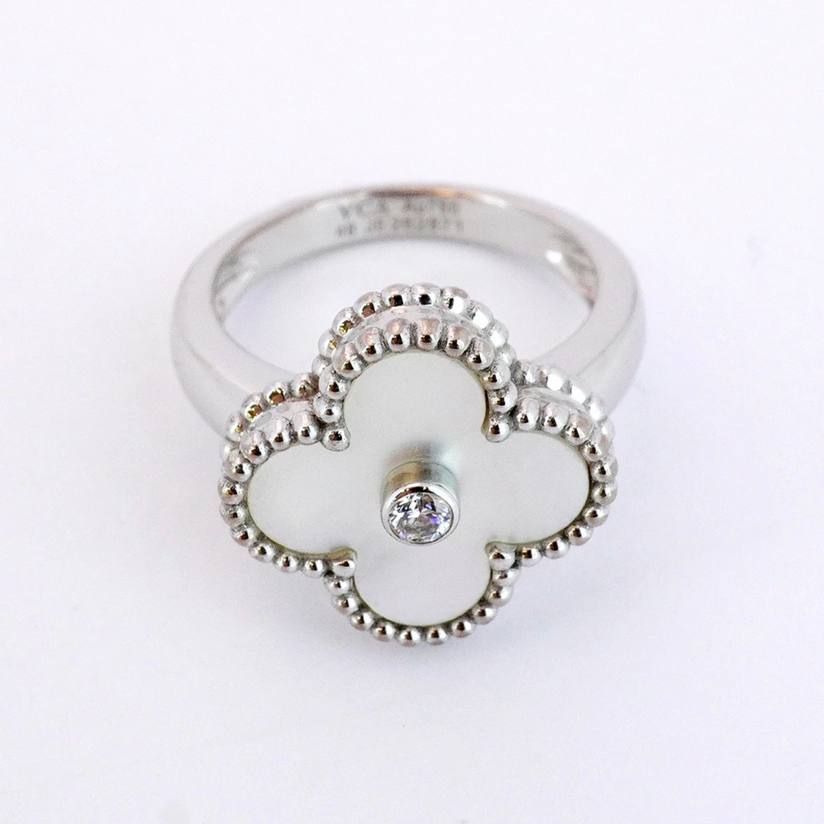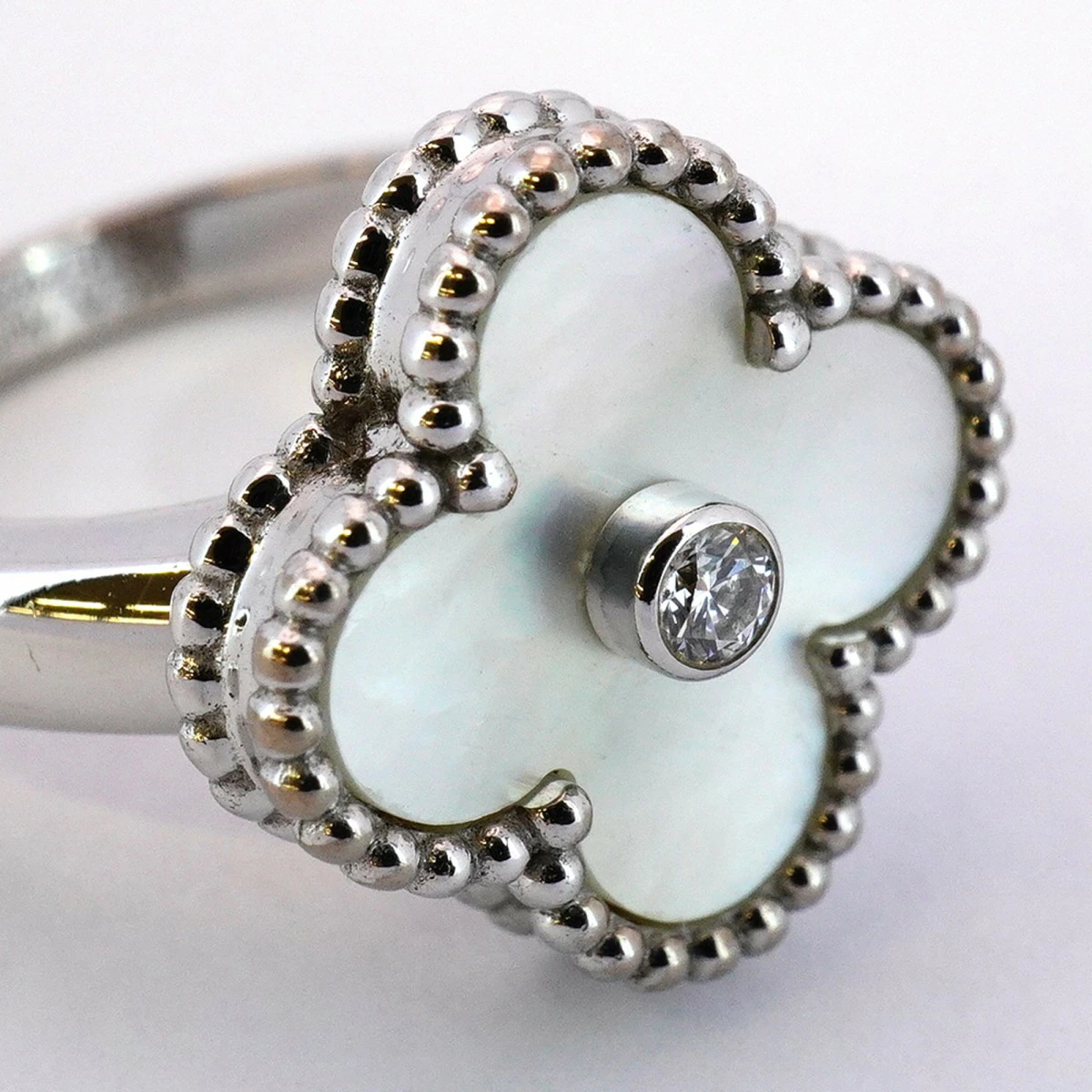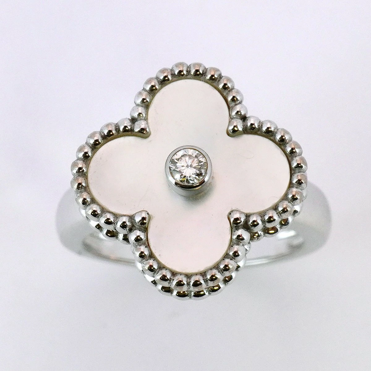 【5jmb0832】ヴァンクリーフ&アーペル リング ヴィンテージ アルハンブラ 1PD K18WG ホワイトゴールド ダイヤモンド マザーオブパール #48【中古】レディース