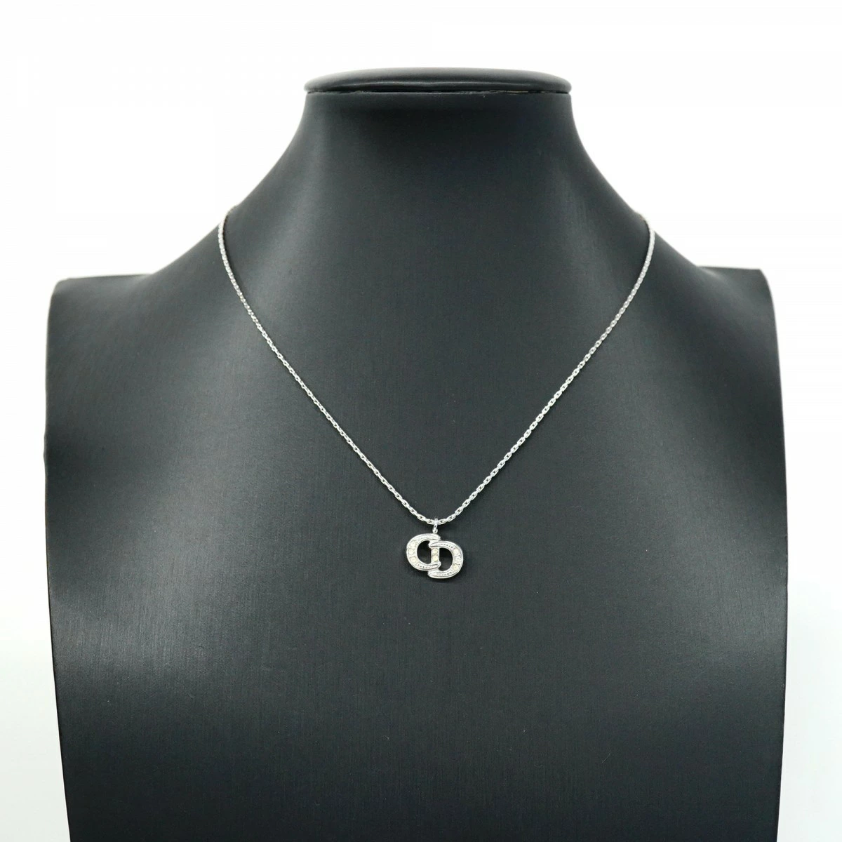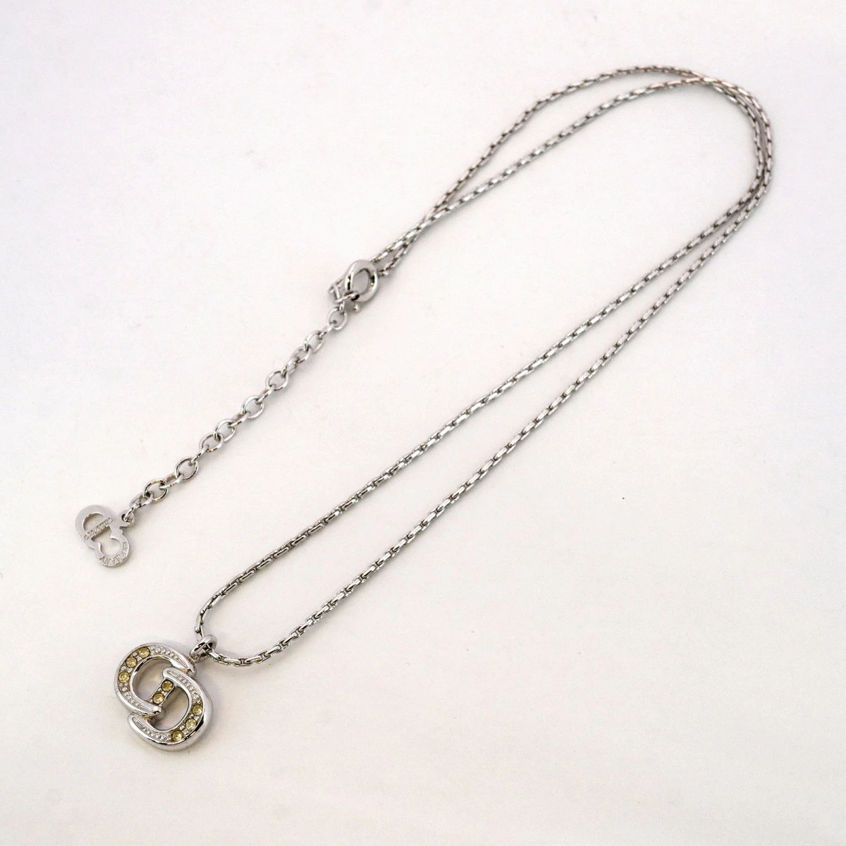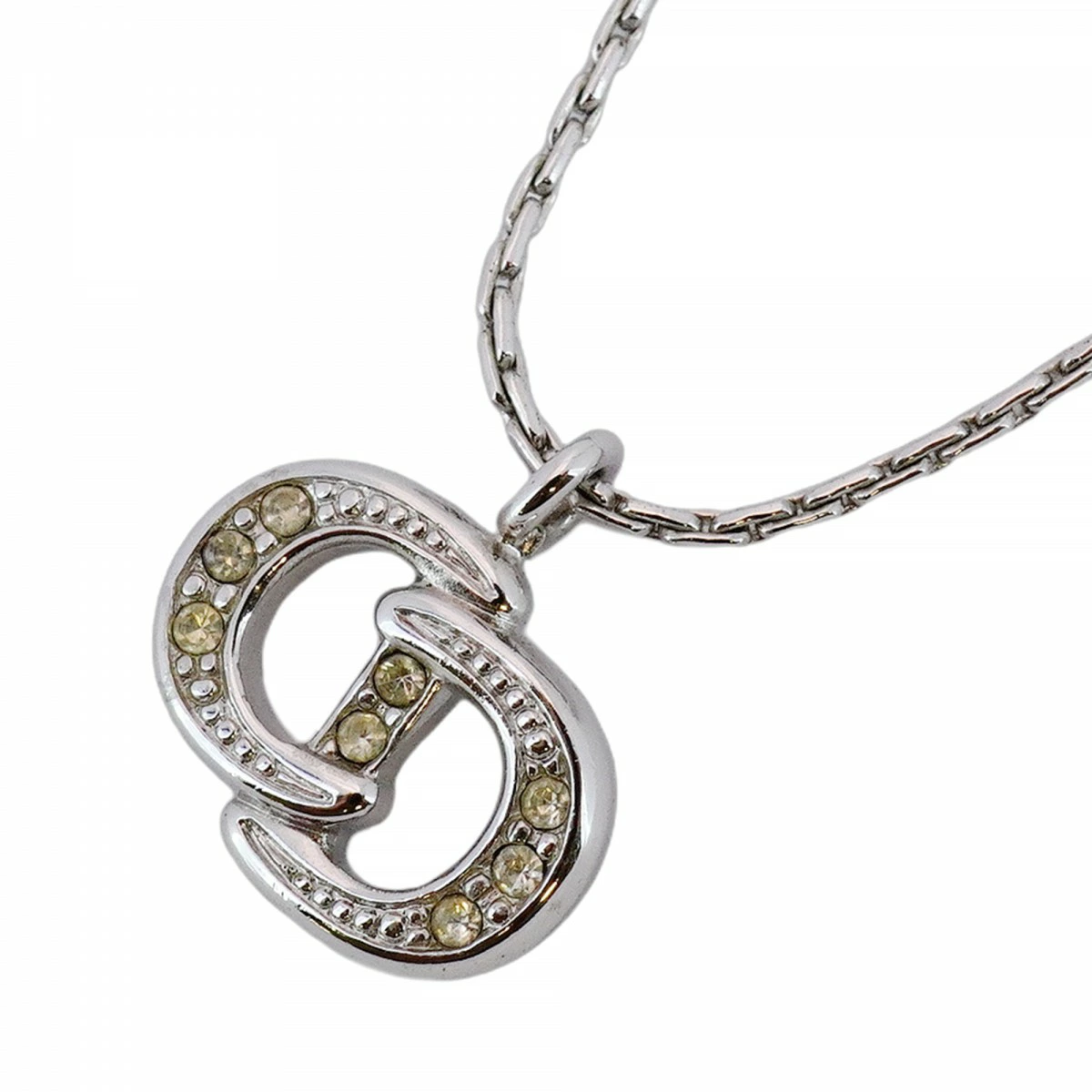 【5jmb0848】クリスチャンディオール ネックレス CDロゴ メタル ラインストーン シルバー【中古】レディース