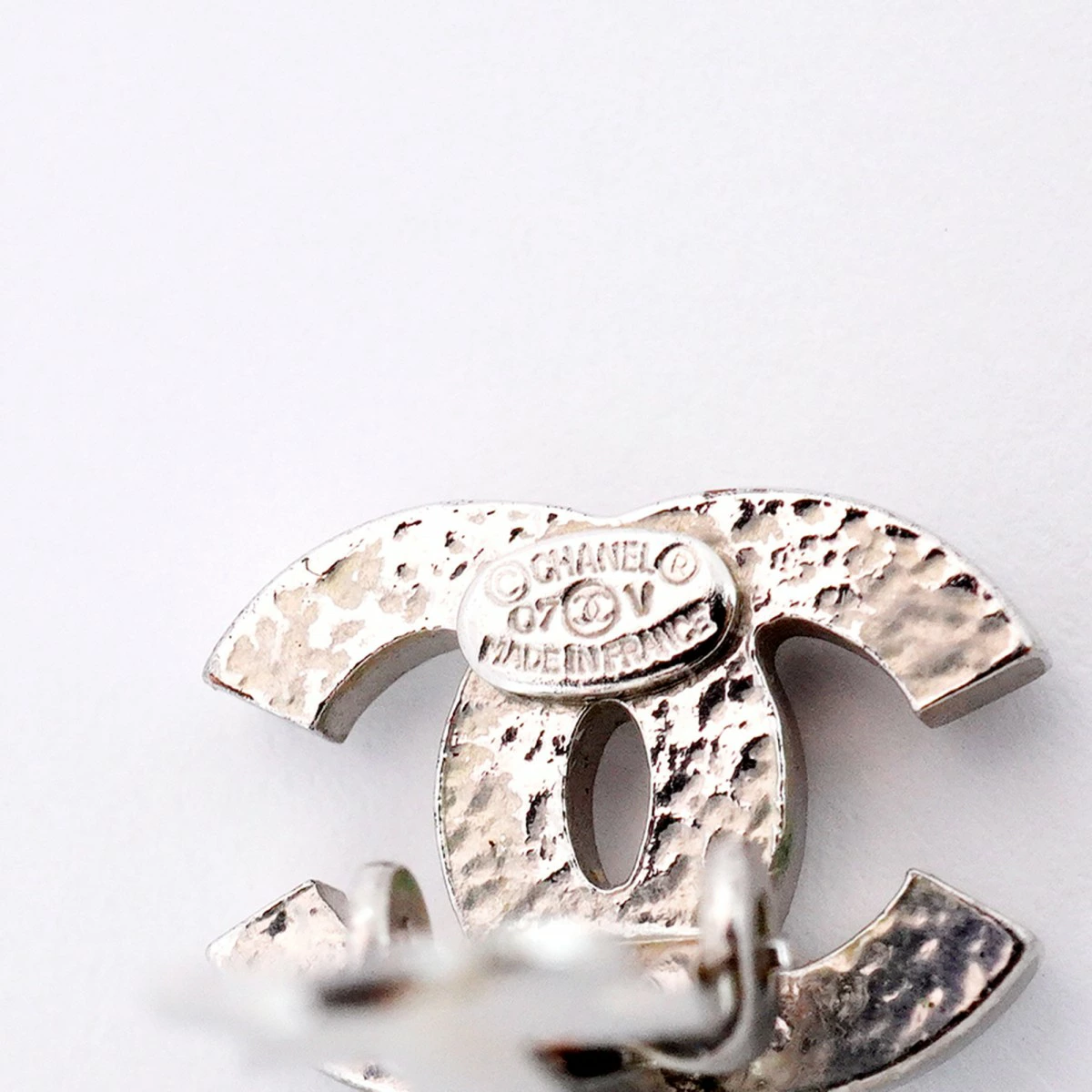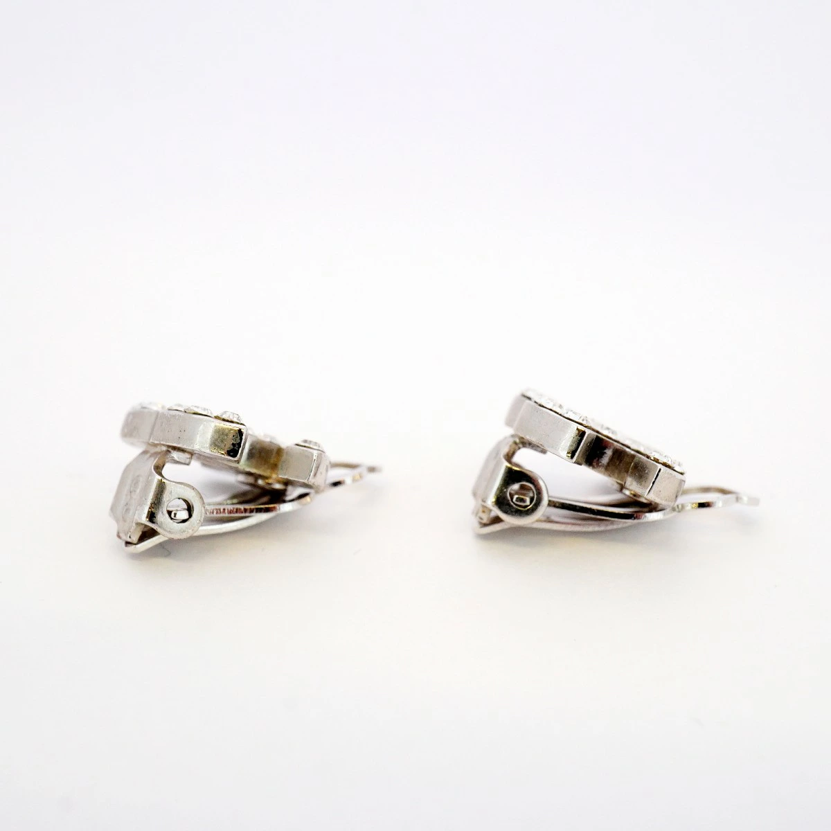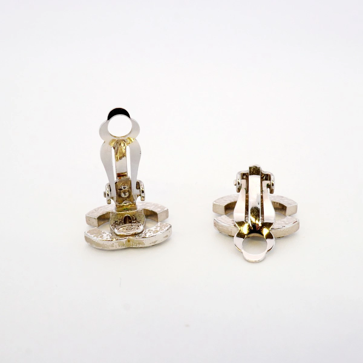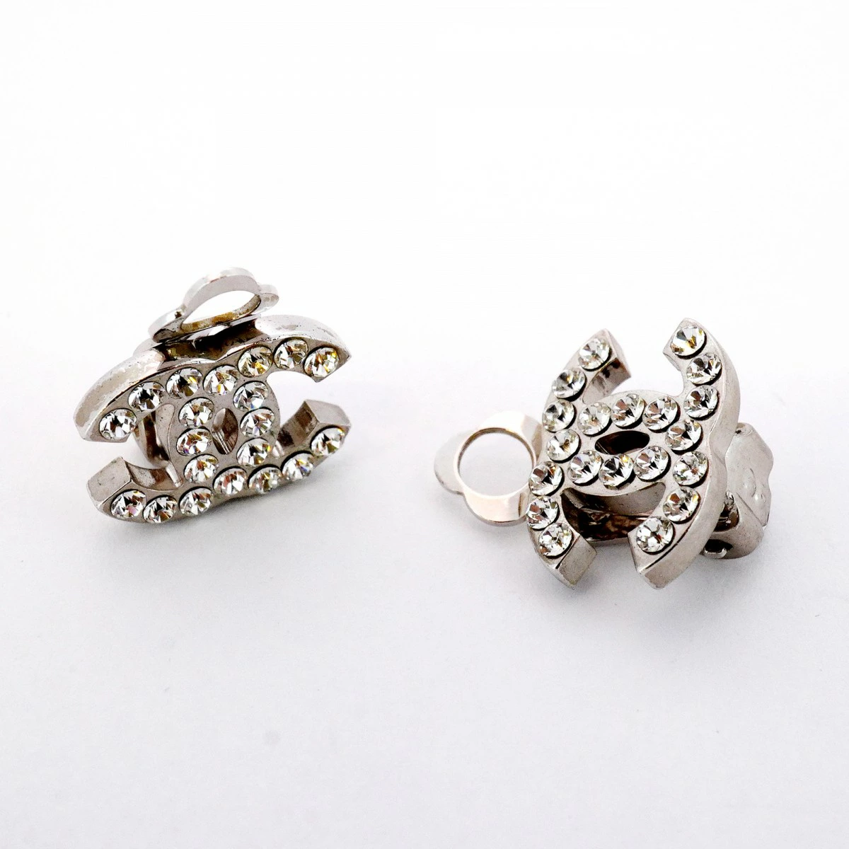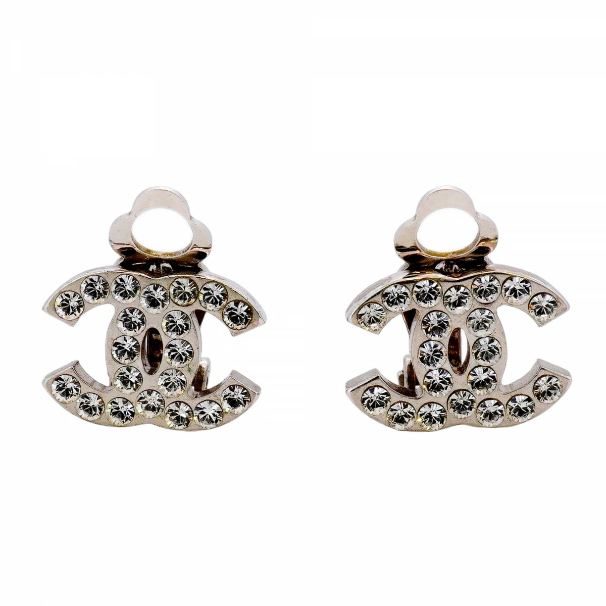 [5jmb0867] Chanel Coco Mark Metal Rhinestone Silver Earrings [Pre-owned] Women's