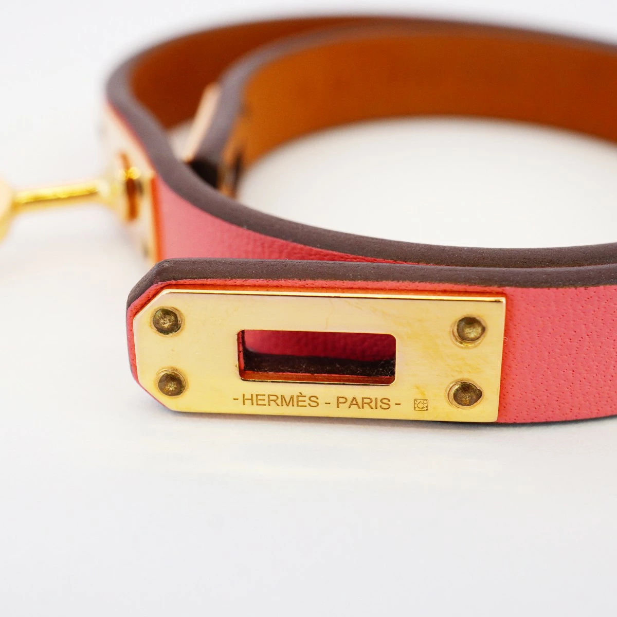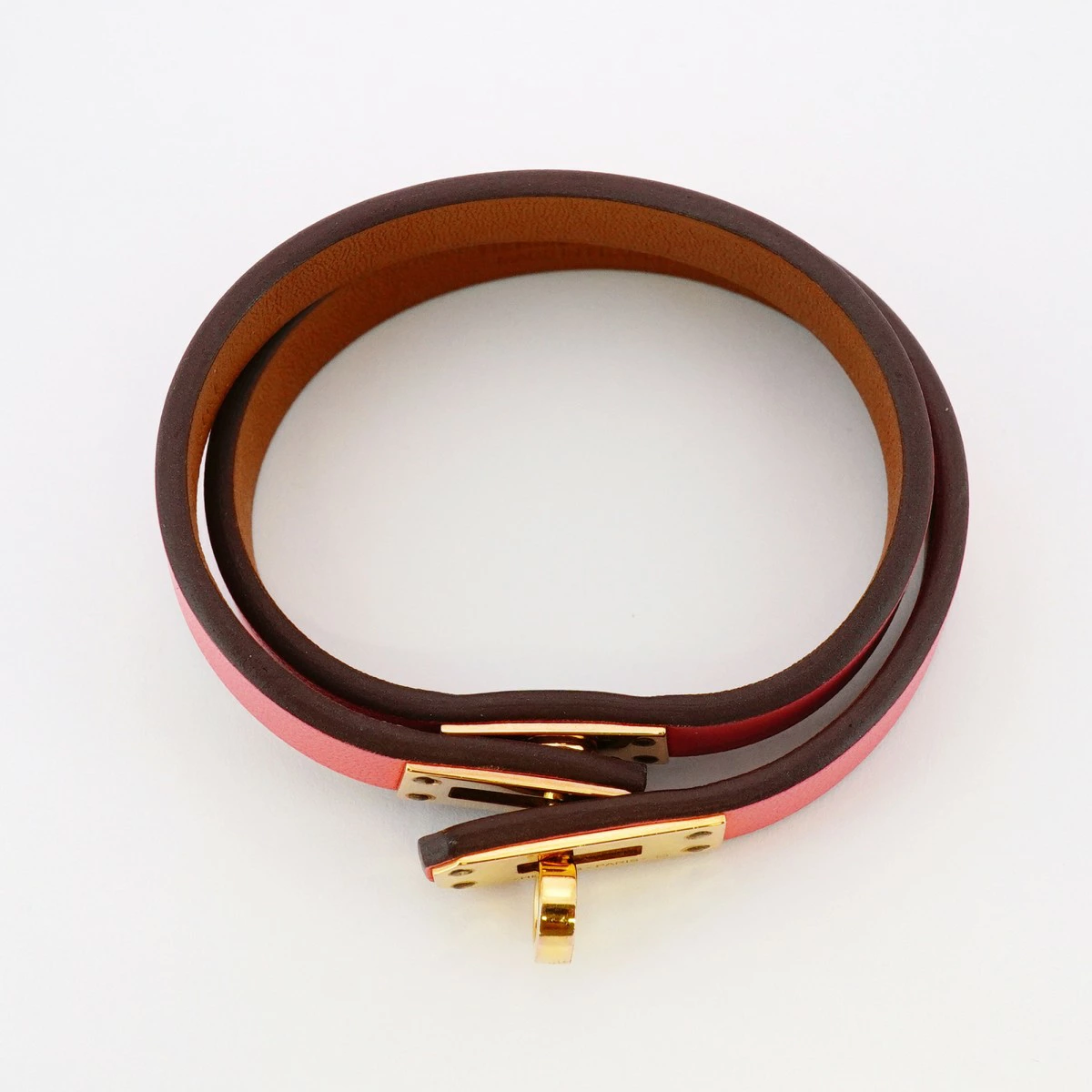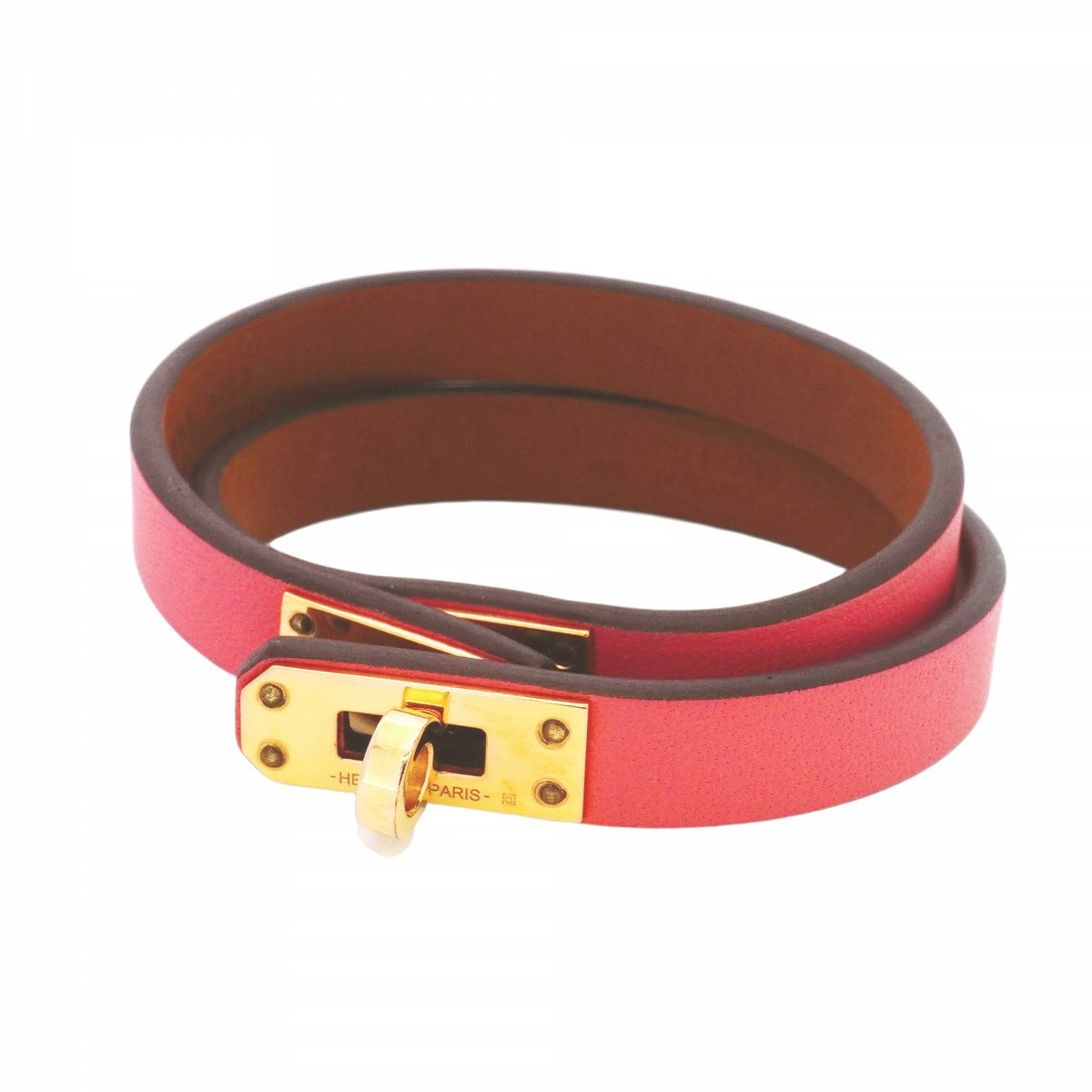 ★最終価格【5jmb0919】エルメス ブレスレット ミニケリー/ドゥブルトゥール GPメッキ レザー ゴールド ピンク【中古】レディース
