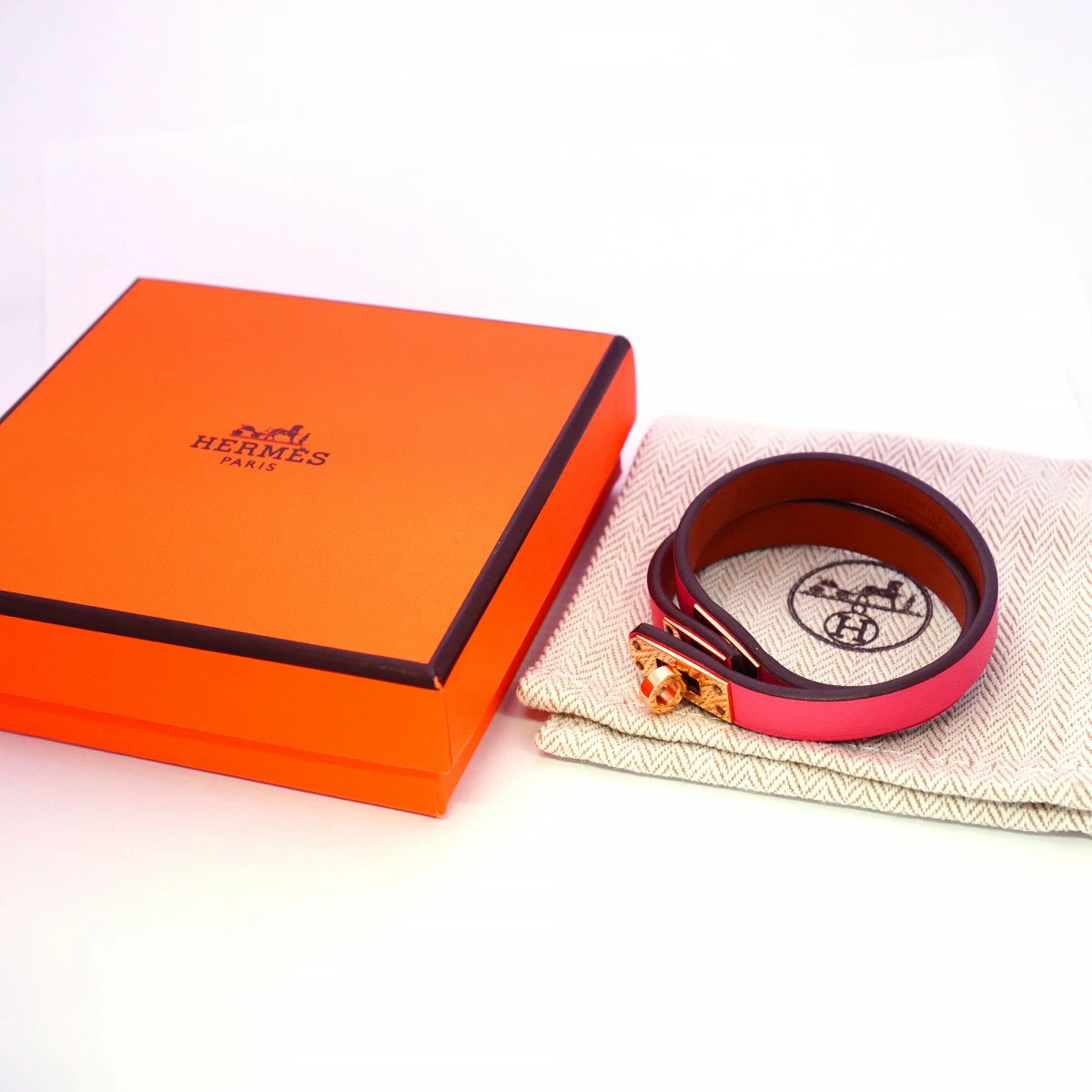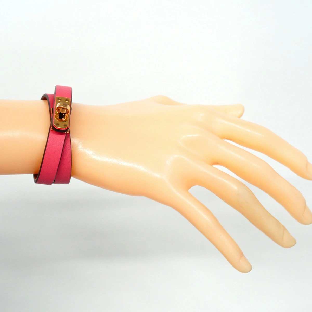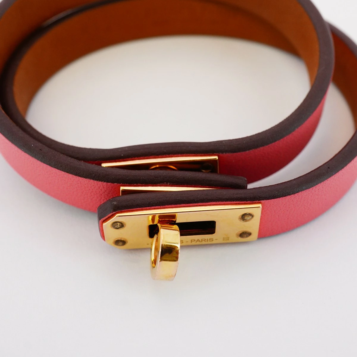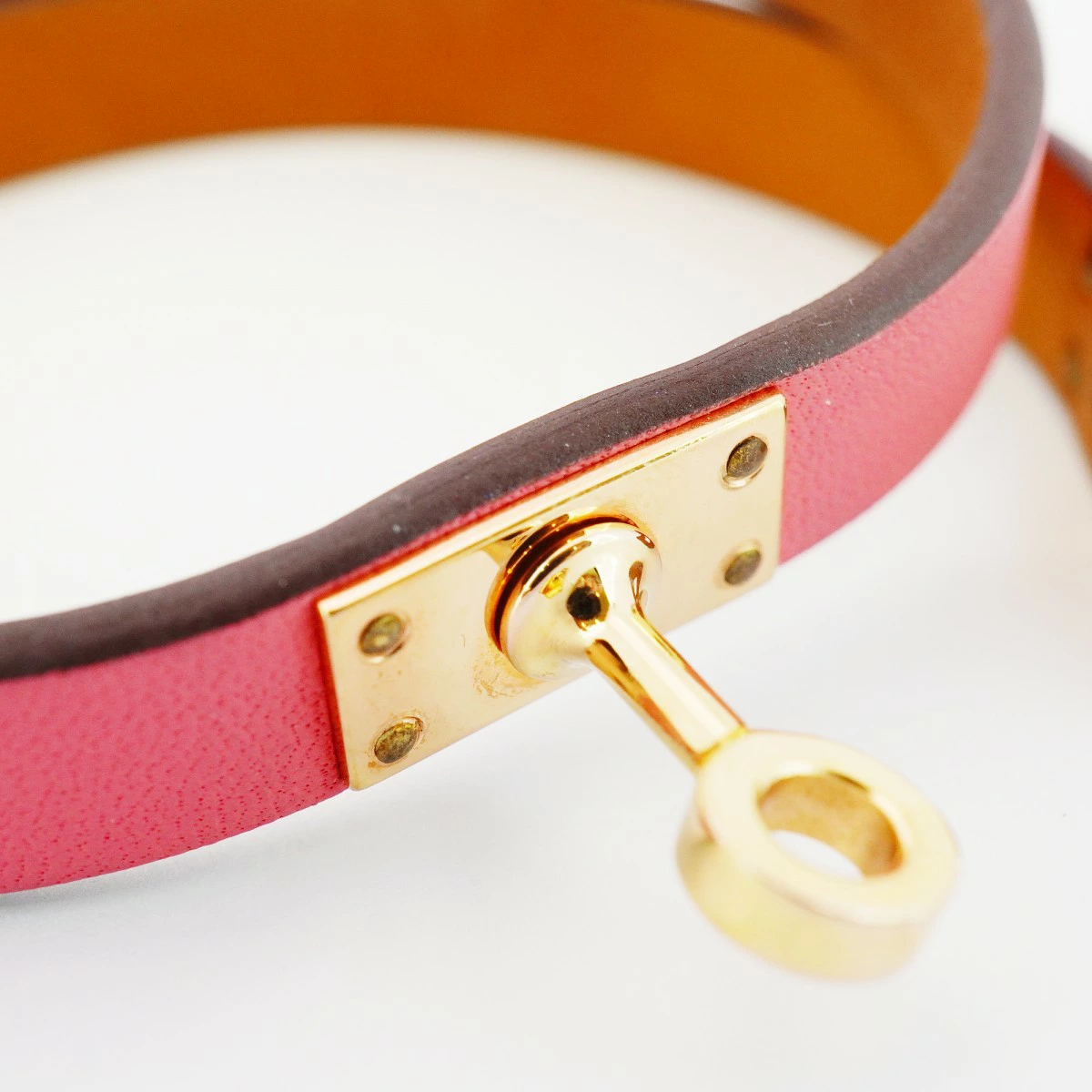 ★最終価格【5jmb0919】エルメス ブレスレット ミニケリー/ドゥブルトゥール GPメッキ レザー ゴールド ピンク【中古】レディース