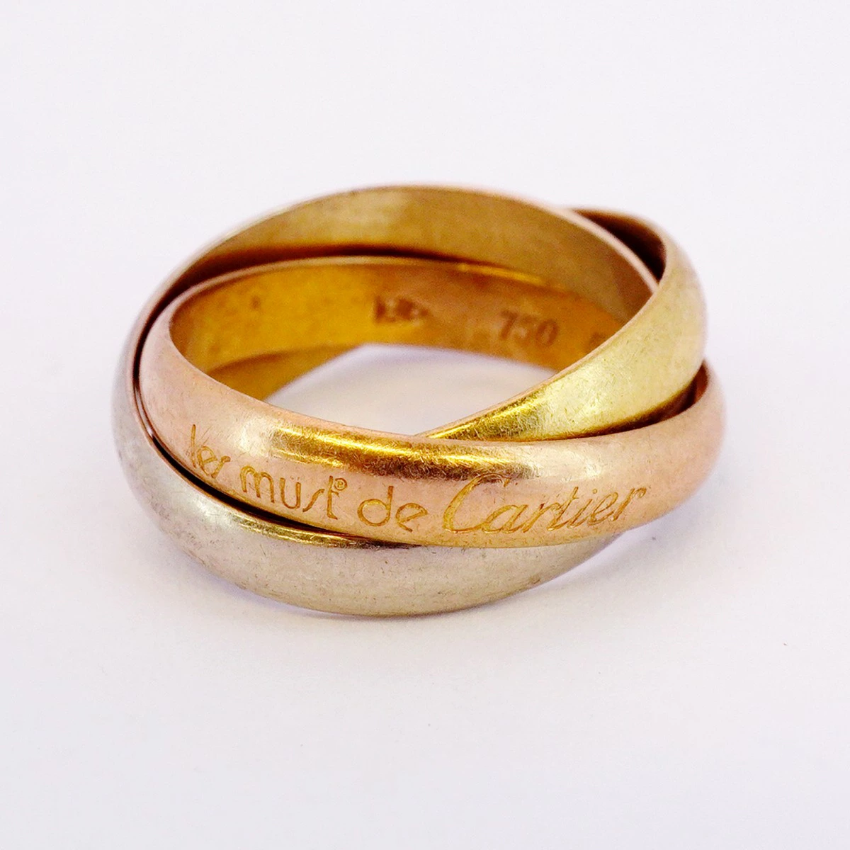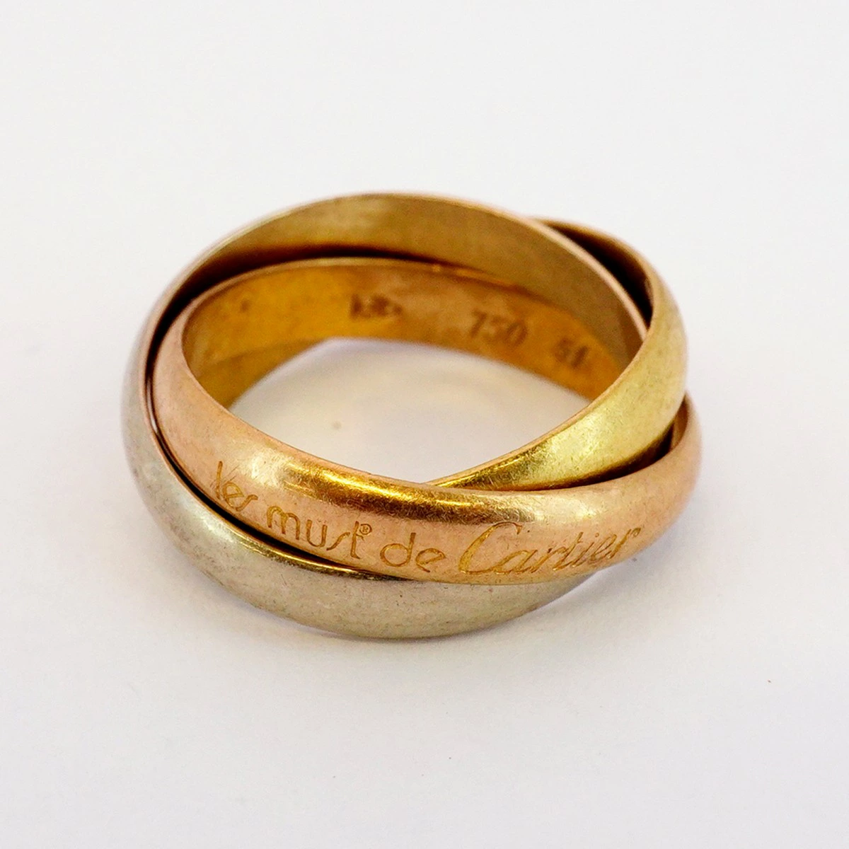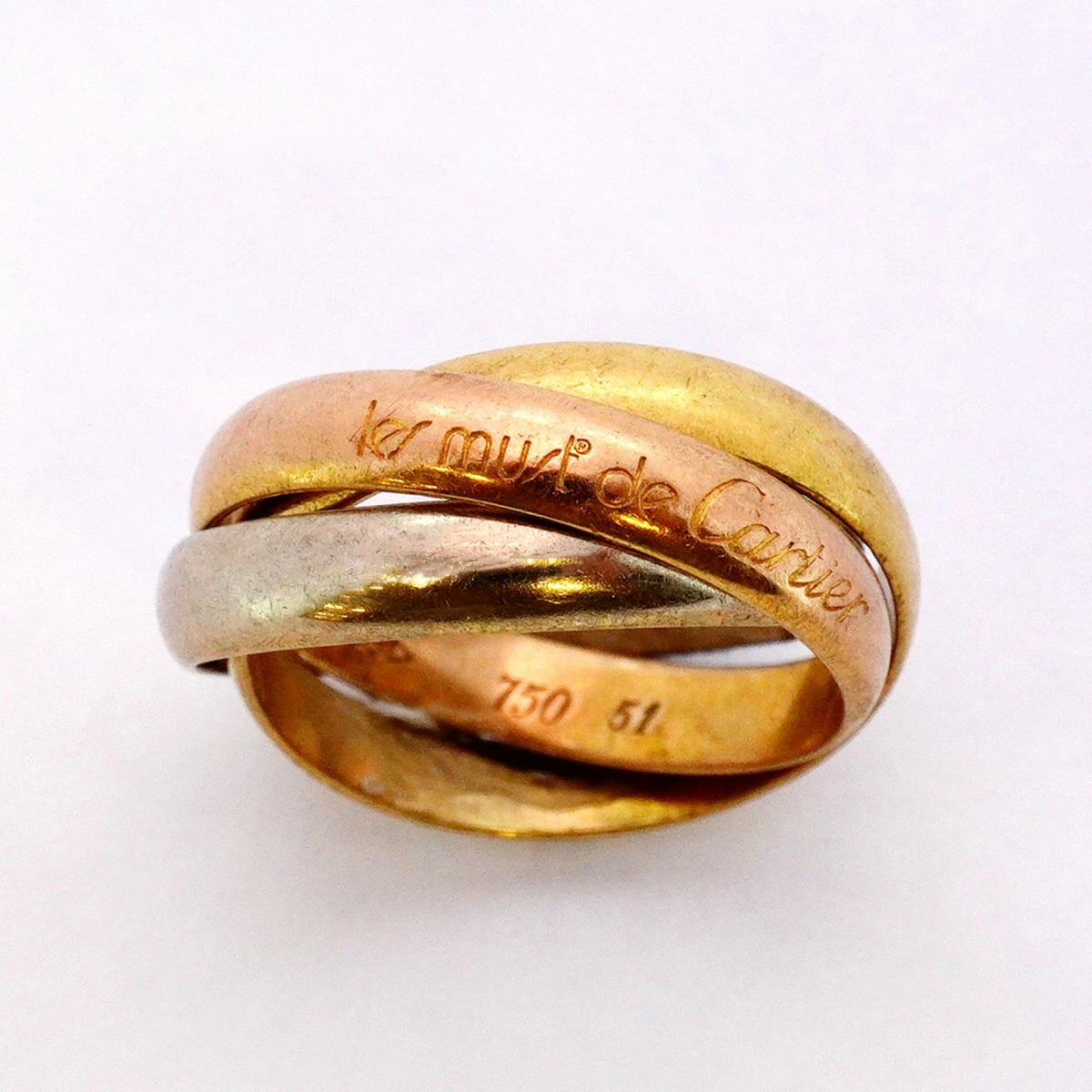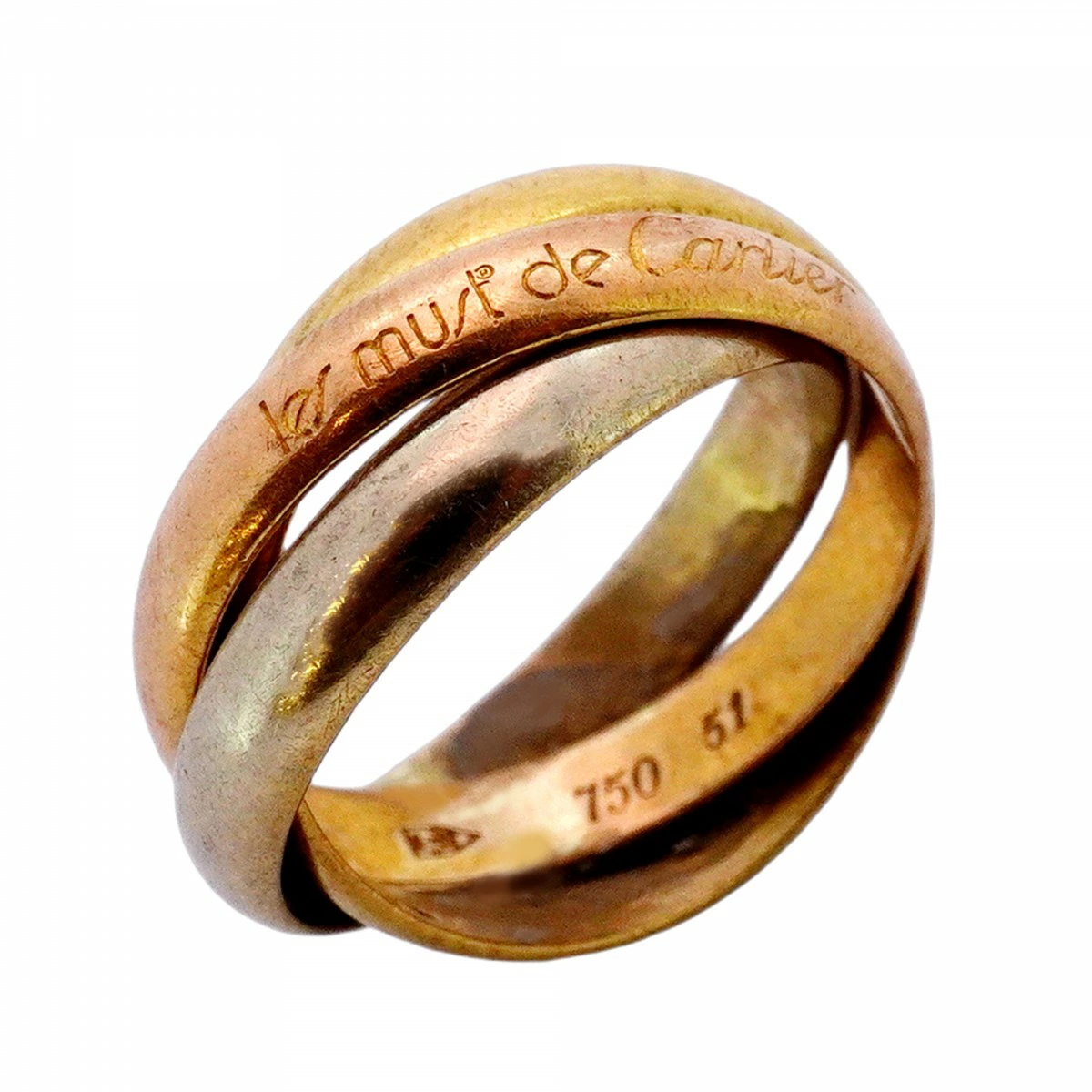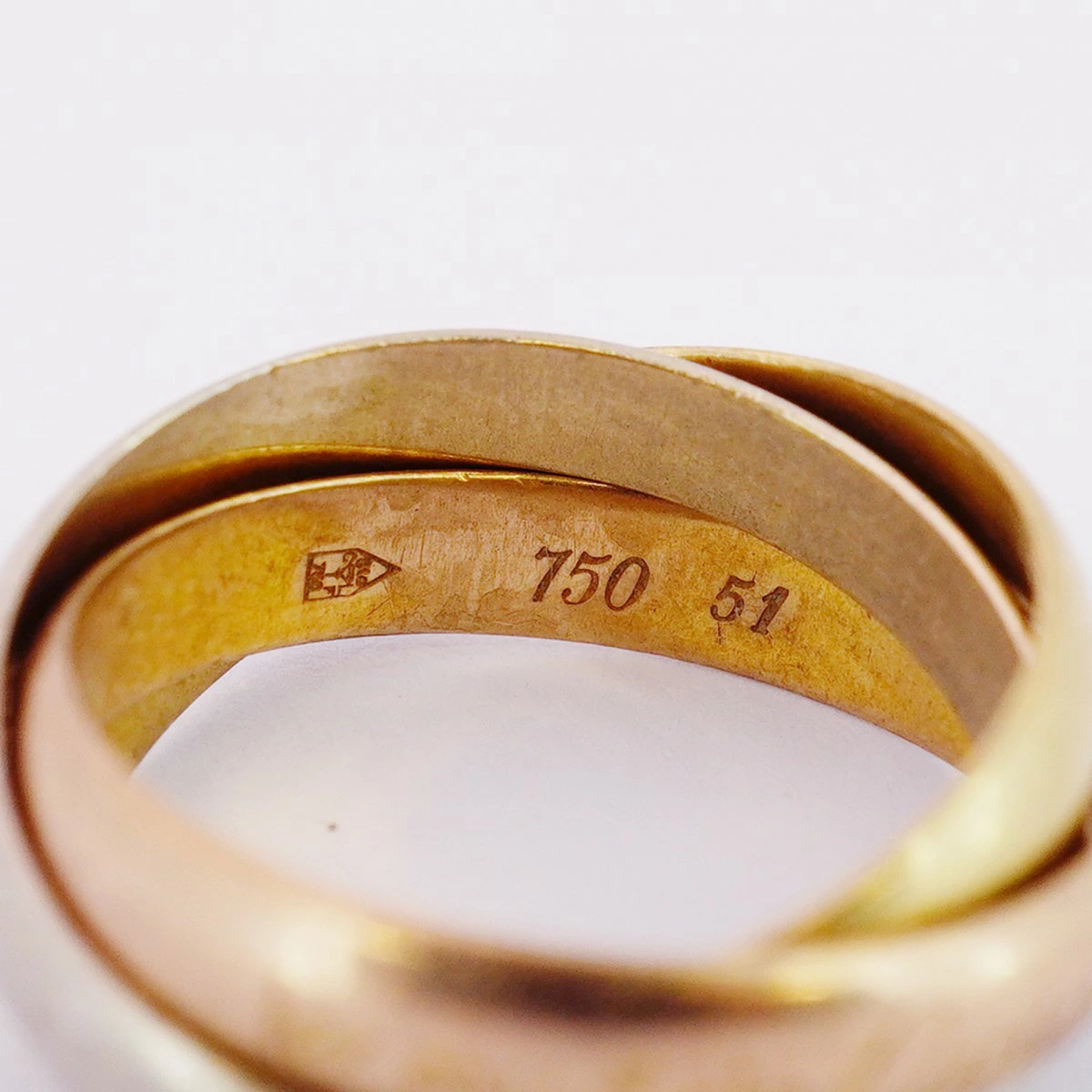 【5jmb0940】カルティエ リング トリニティ K18YG イエローゴールド K18WG ホワイトゴールド K18PG ピンクゴールド #51【中古】レディース