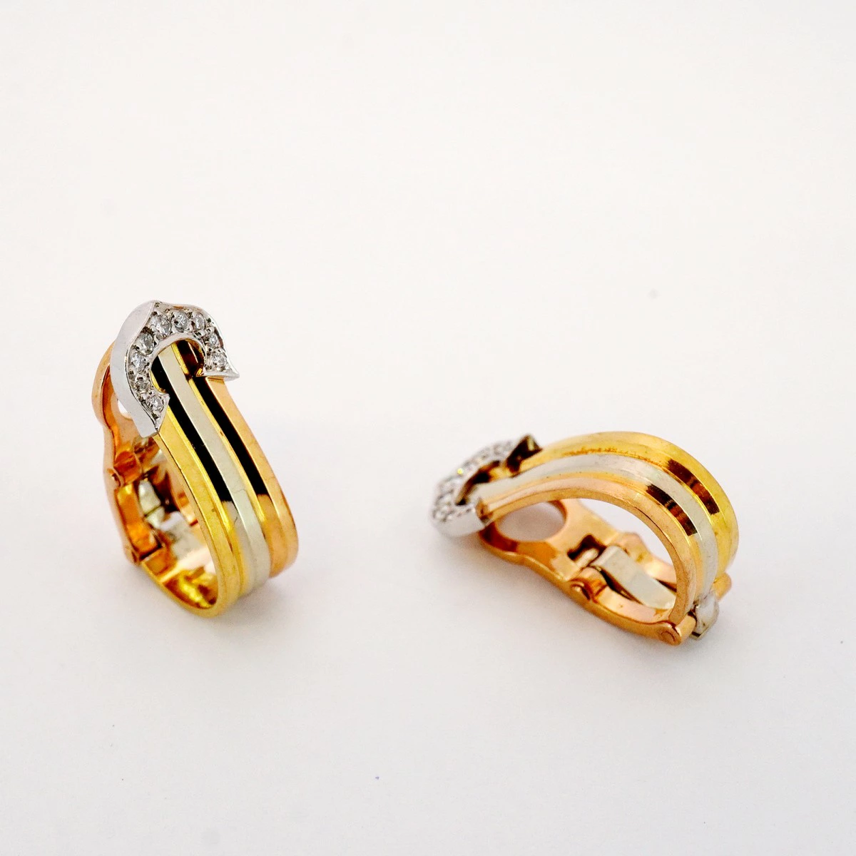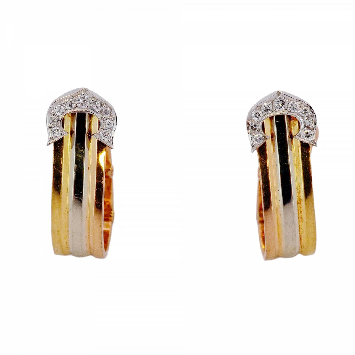 【5jmb0978】カルティエ イヤリング 2C スリーカラー K18YG イエローゴールド K18WG ホワイトゴールド K18PG ピンクゴールド/ダイヤモンド【中古】レディース