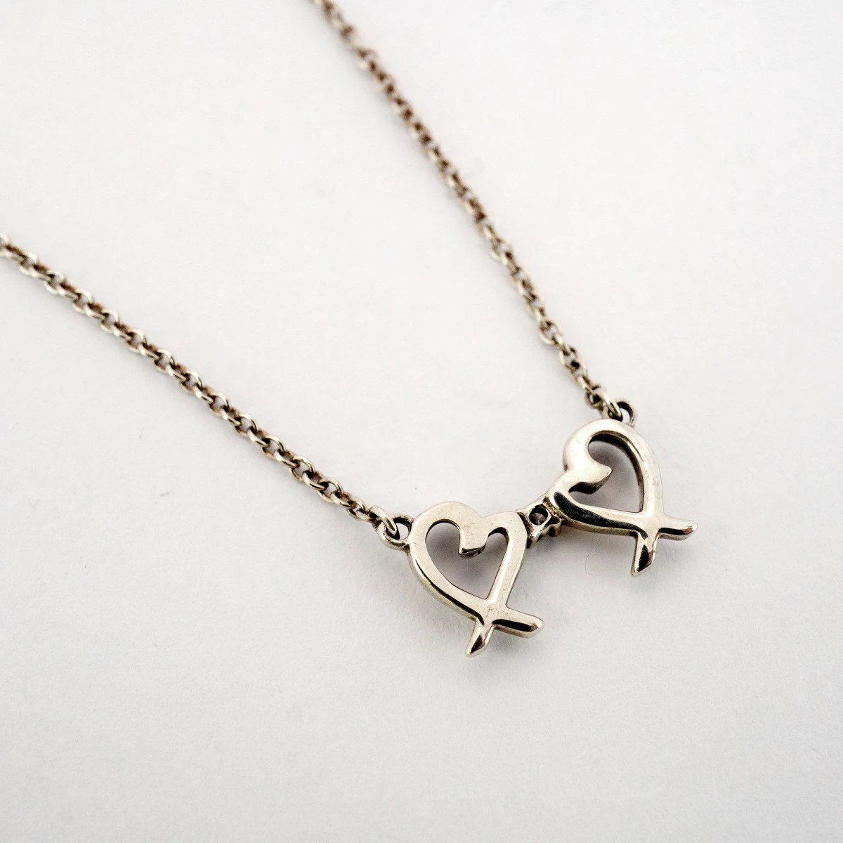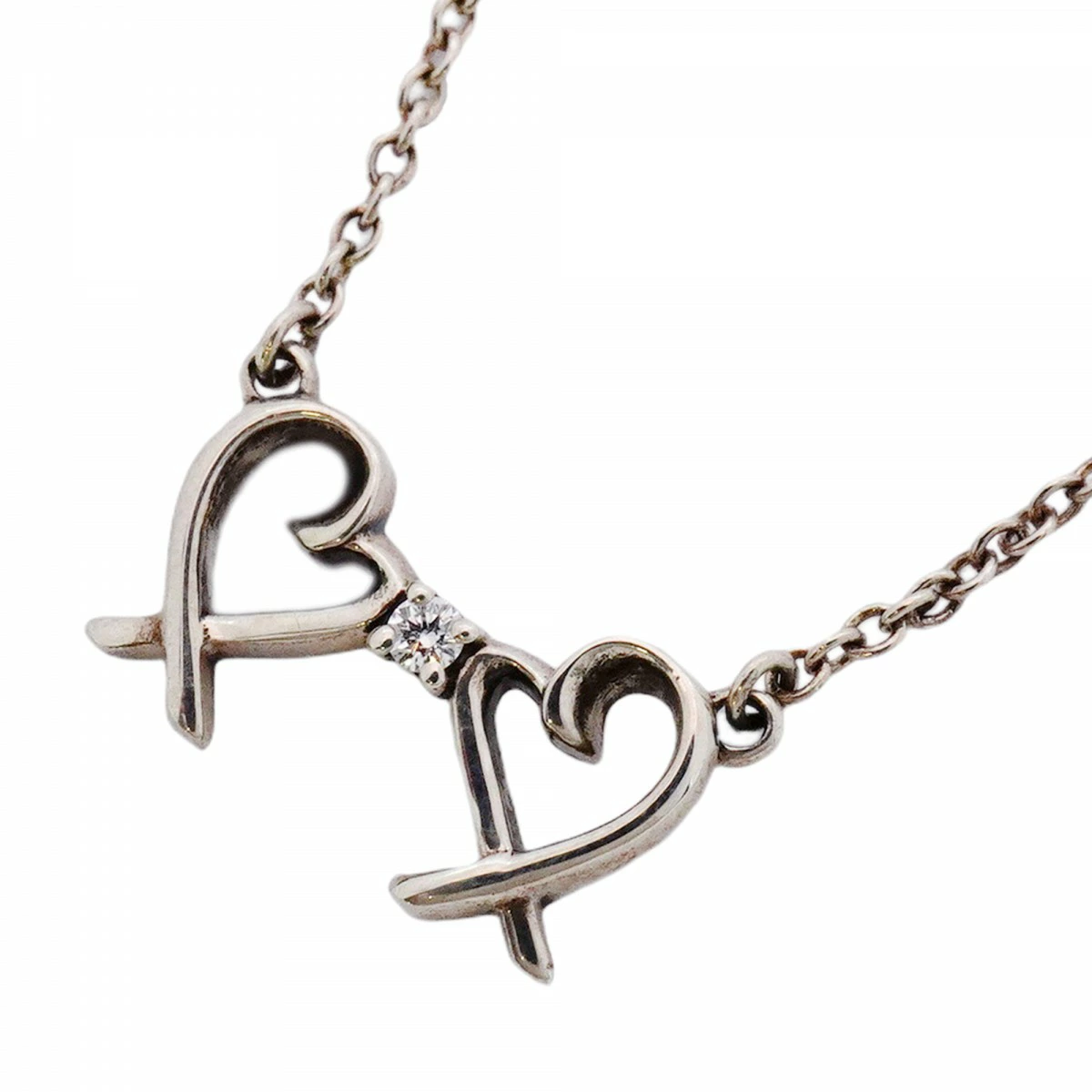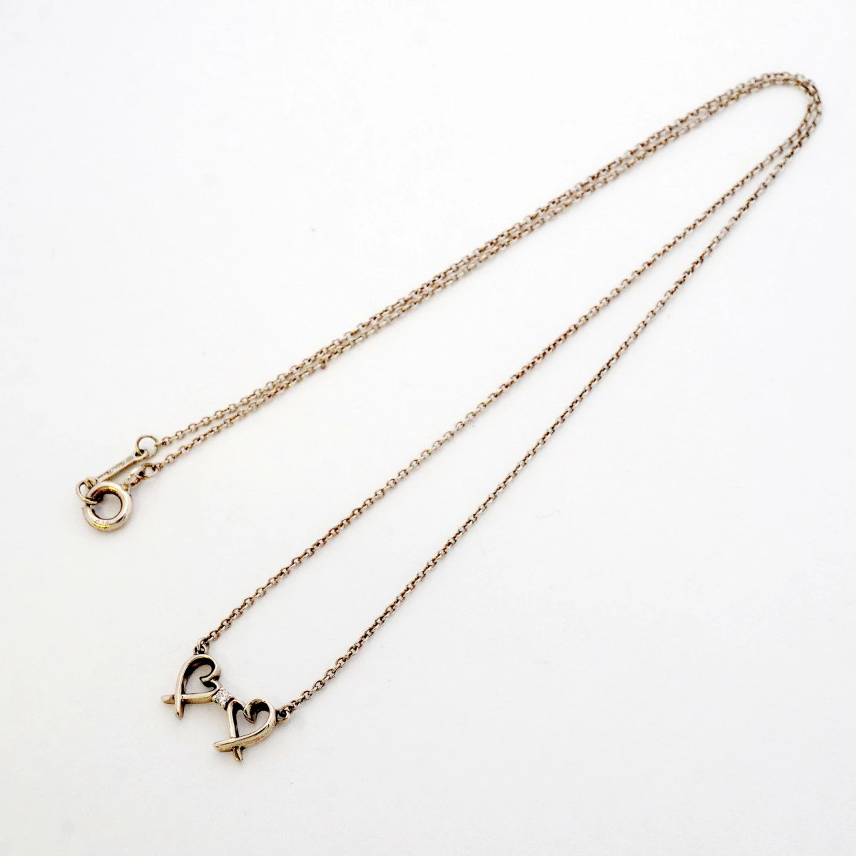★SALE【5job0158】ティファニー ネックレス ダブルラビングハート 1PD シルバー925 ダイヤモンド【中古】レディース