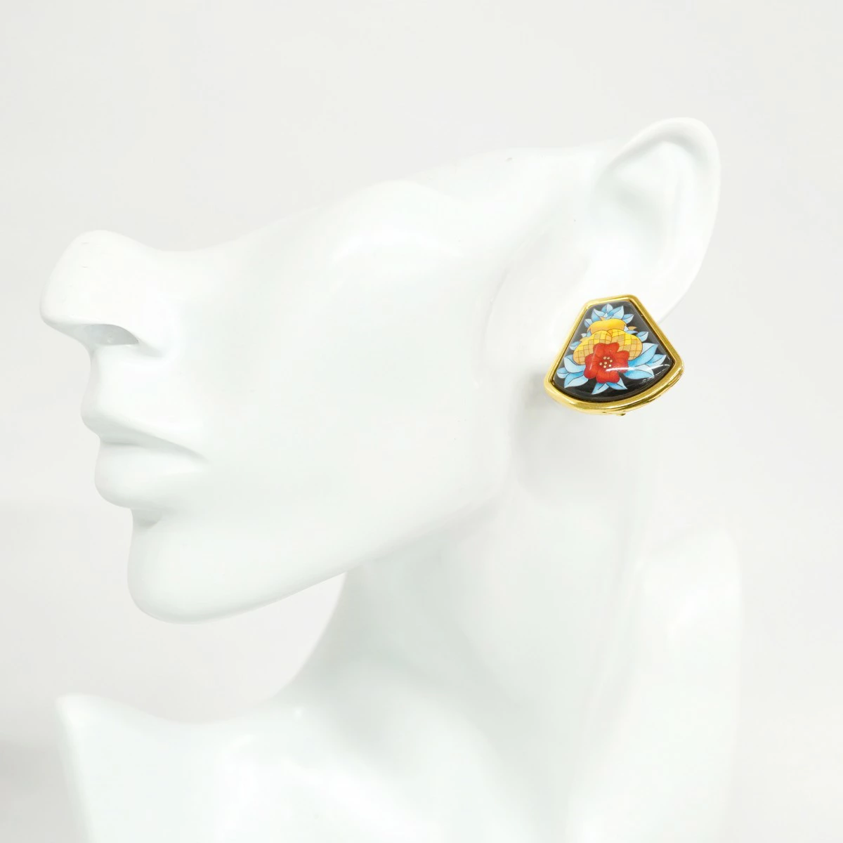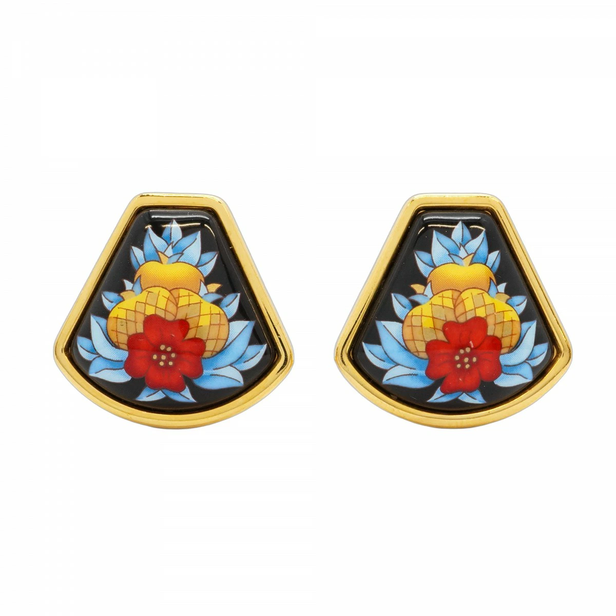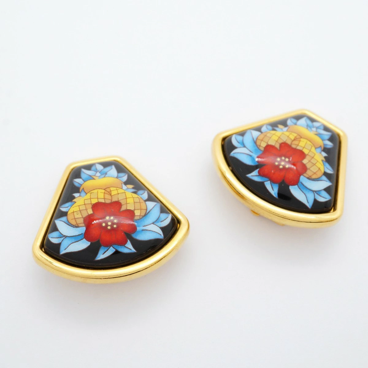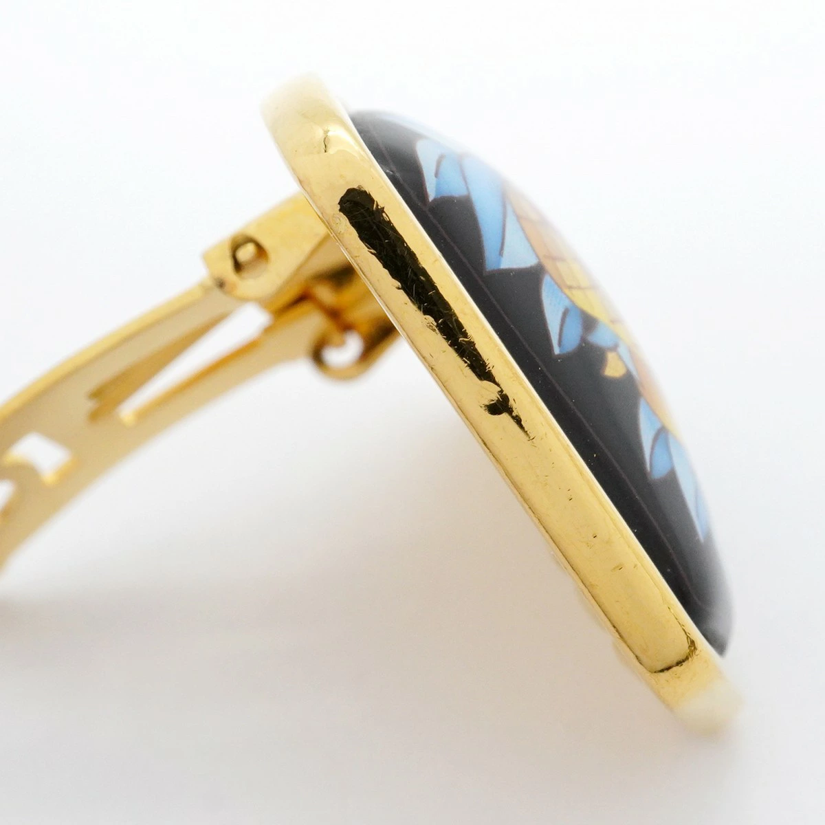 【5job0226】エルメス イヤリング エマイユ GPメッキ 七宝焼き ゴールド ブラック マルチカラー【中古】レディース