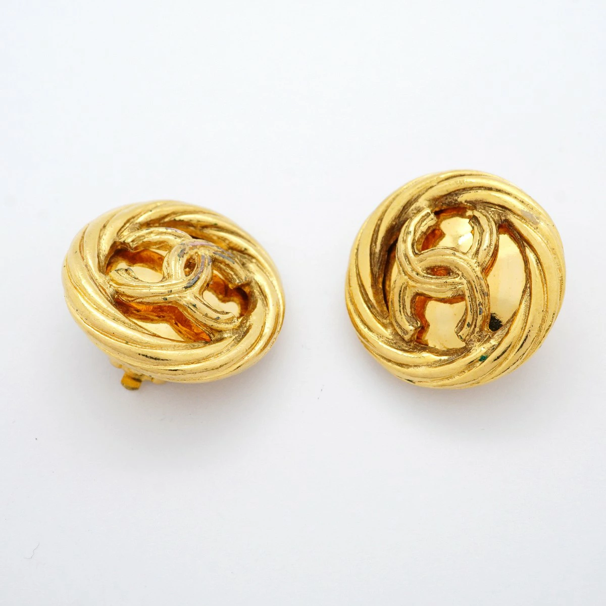 【5job0234】シャネル イヤリング ヴィンテージ ココマーク 丸型 サークル GPメッキ ゴールド【中古】レディース