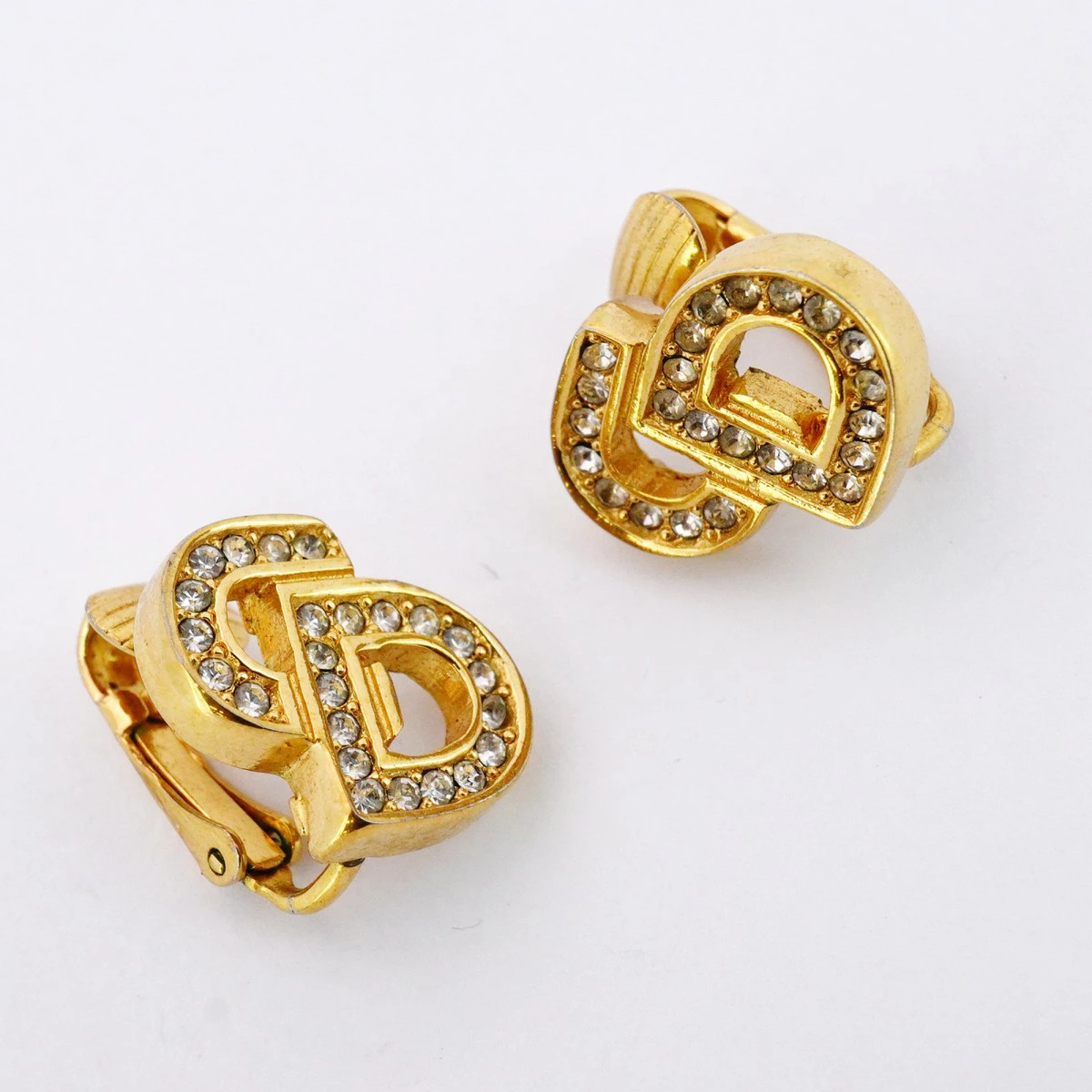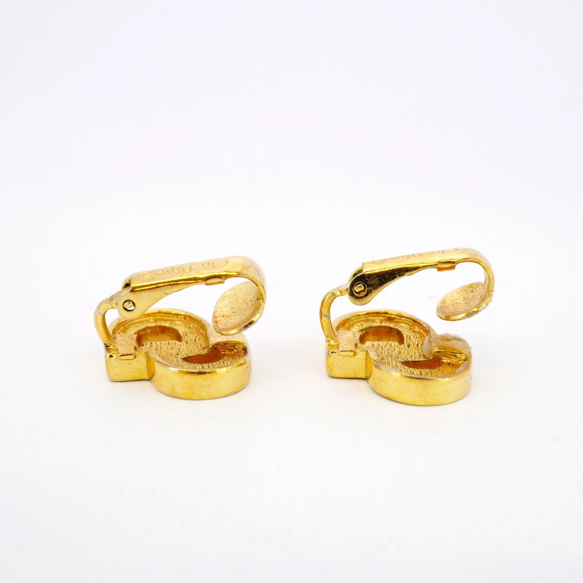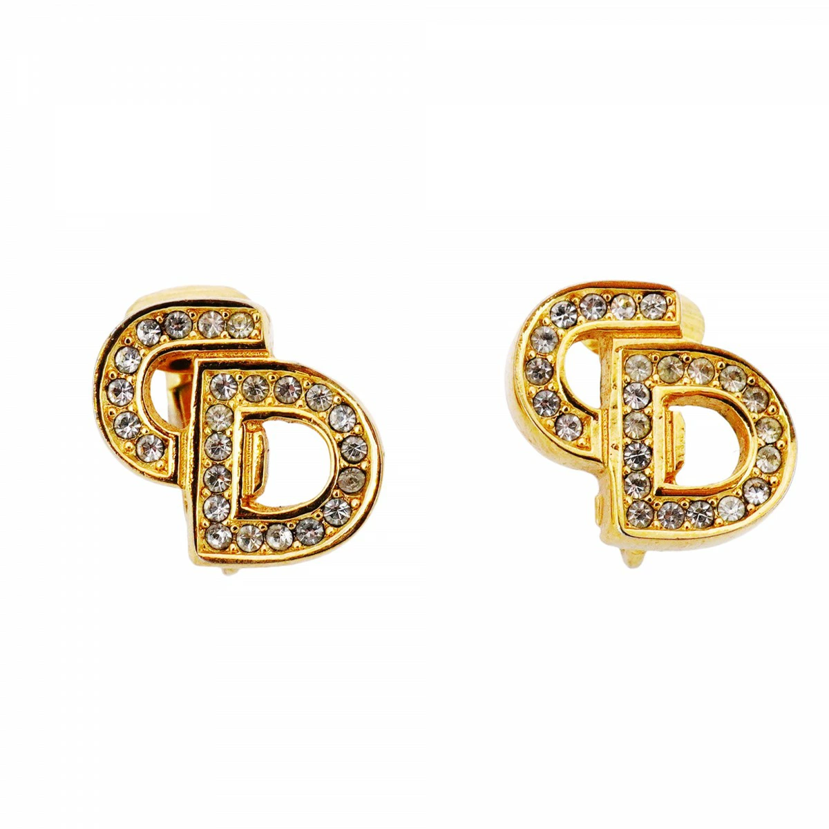 ★SALE【5job0242】クリスチャンディオール イヤリング CDロゴ GPメッキ ラインストーン ゴールド【中古】レディース