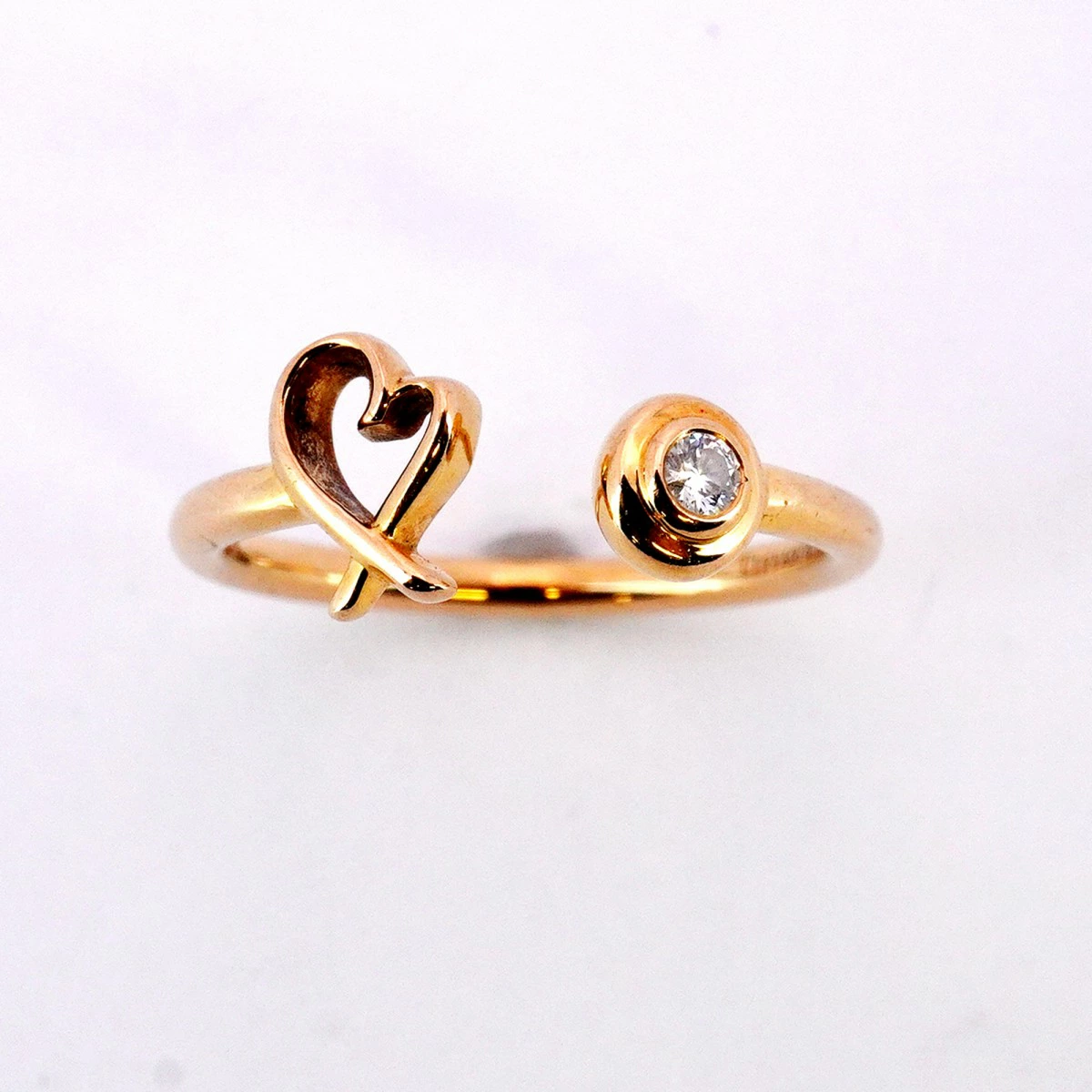 【5job0251】ティファニー リング ラビングハートワイヤー 1PD K18PG ピンクゴールド ダイヤモンド 9号【中古】レディース