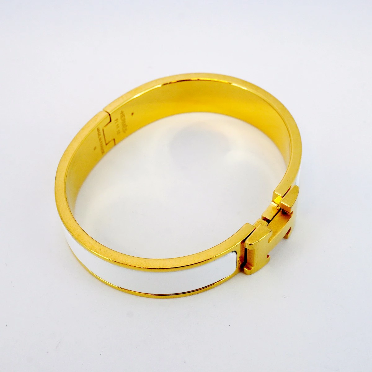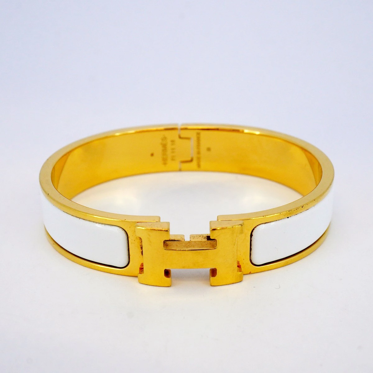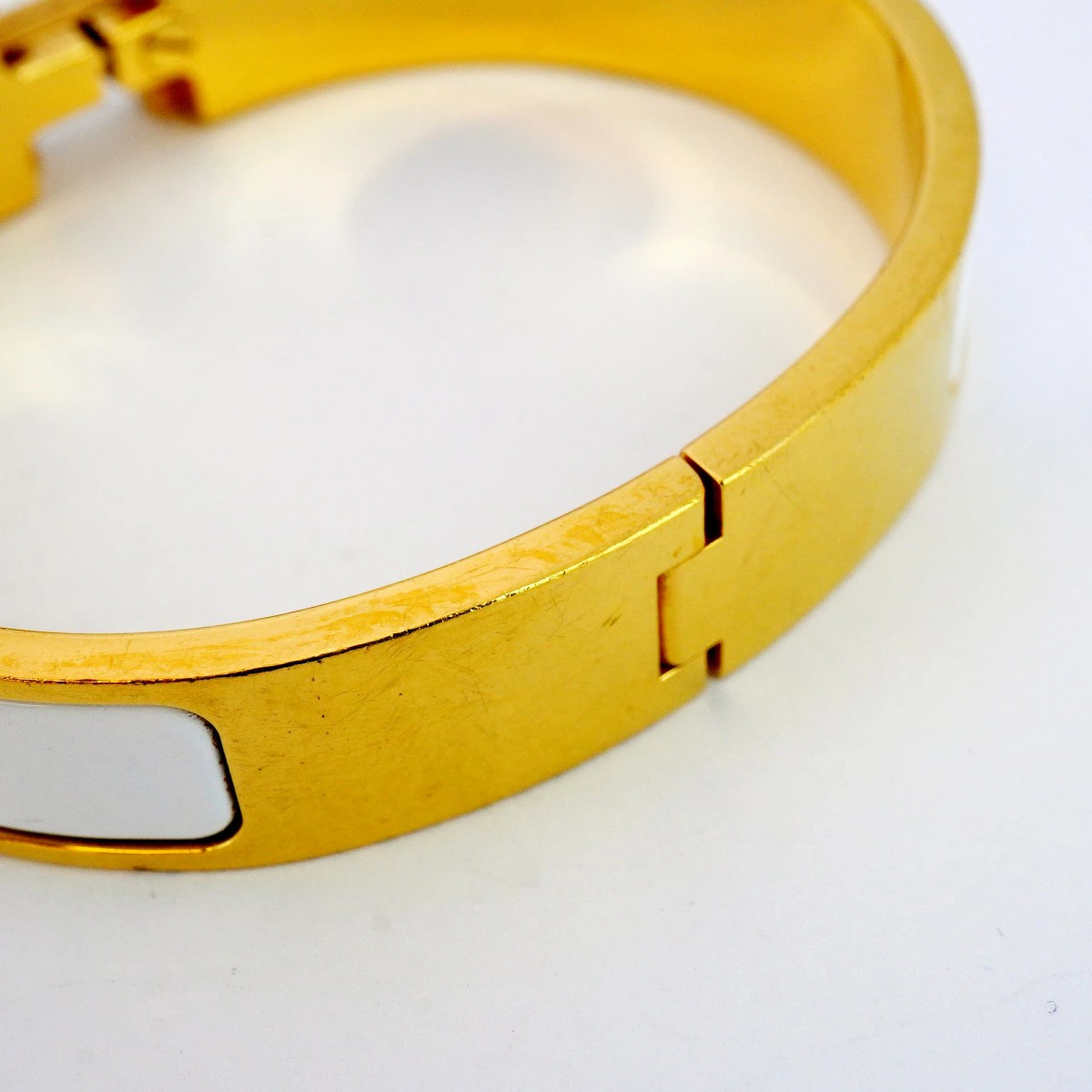 [5job0340] Hermes Click-Clack PM Bangle, GP Plated Gold, White [Pre-owned] Women's