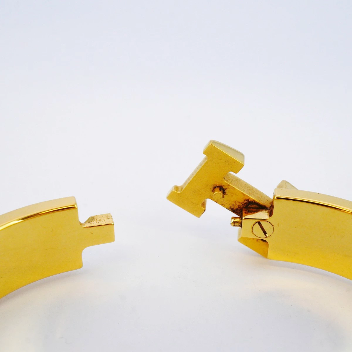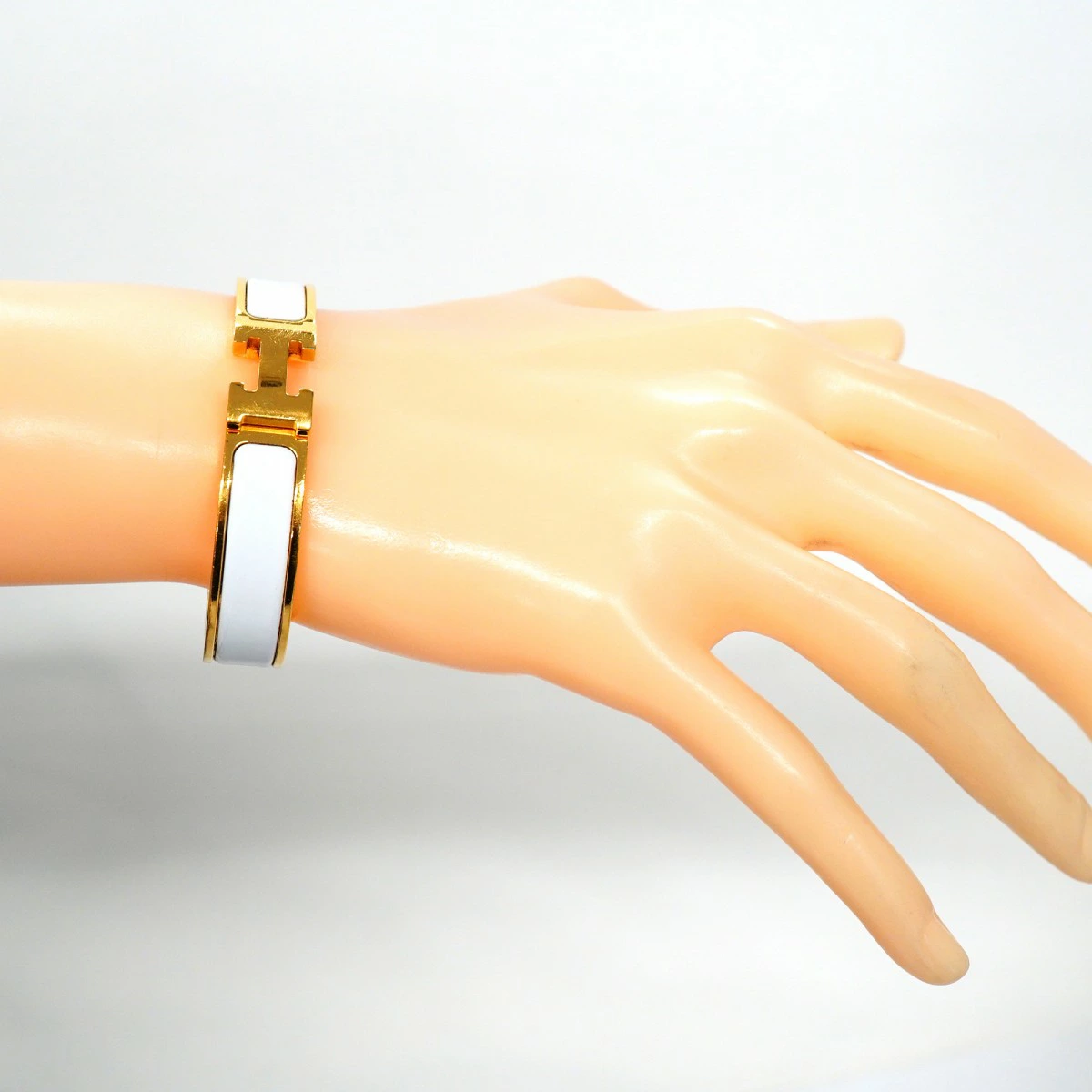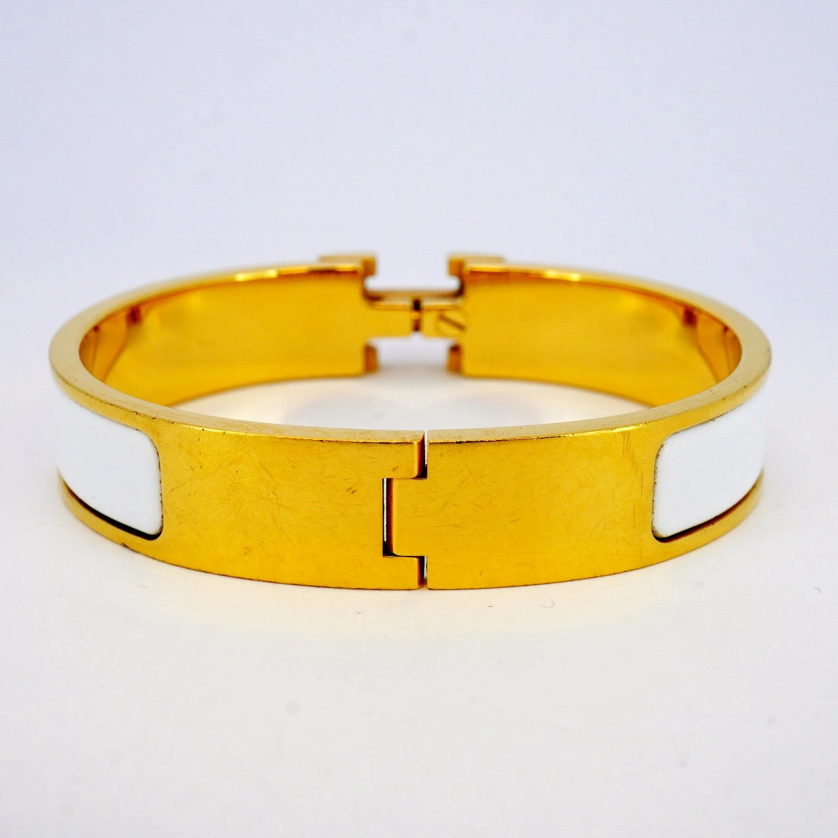 [5job0340] Hermes Click-Clack PM Bangle, GP Plated Gold, White [Pre-owned] Women's