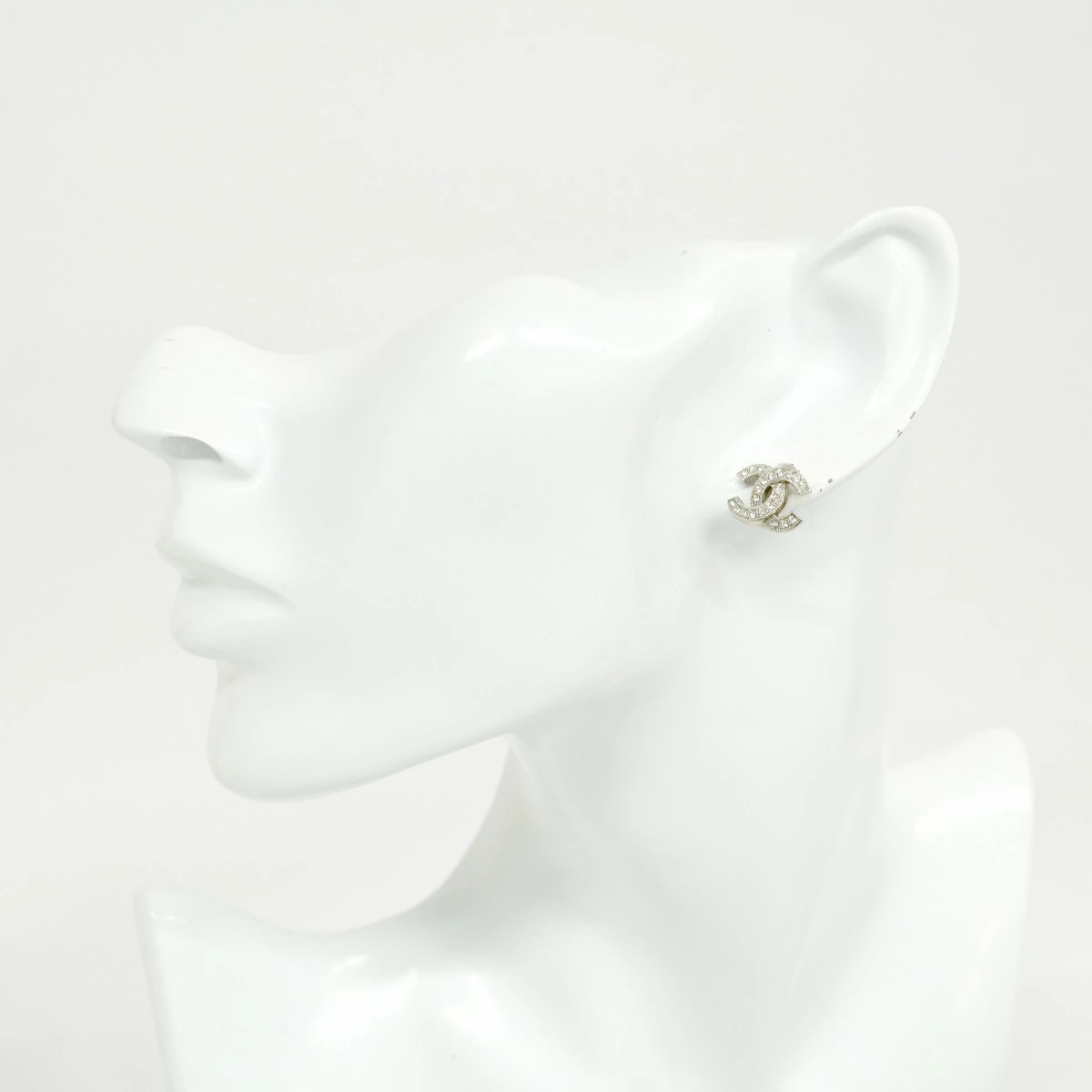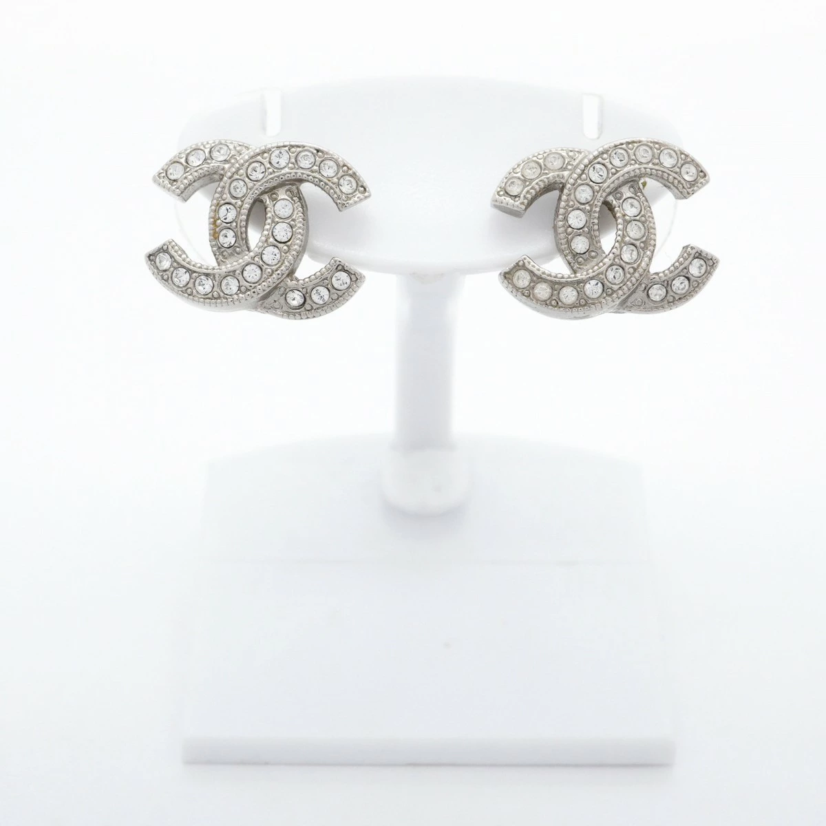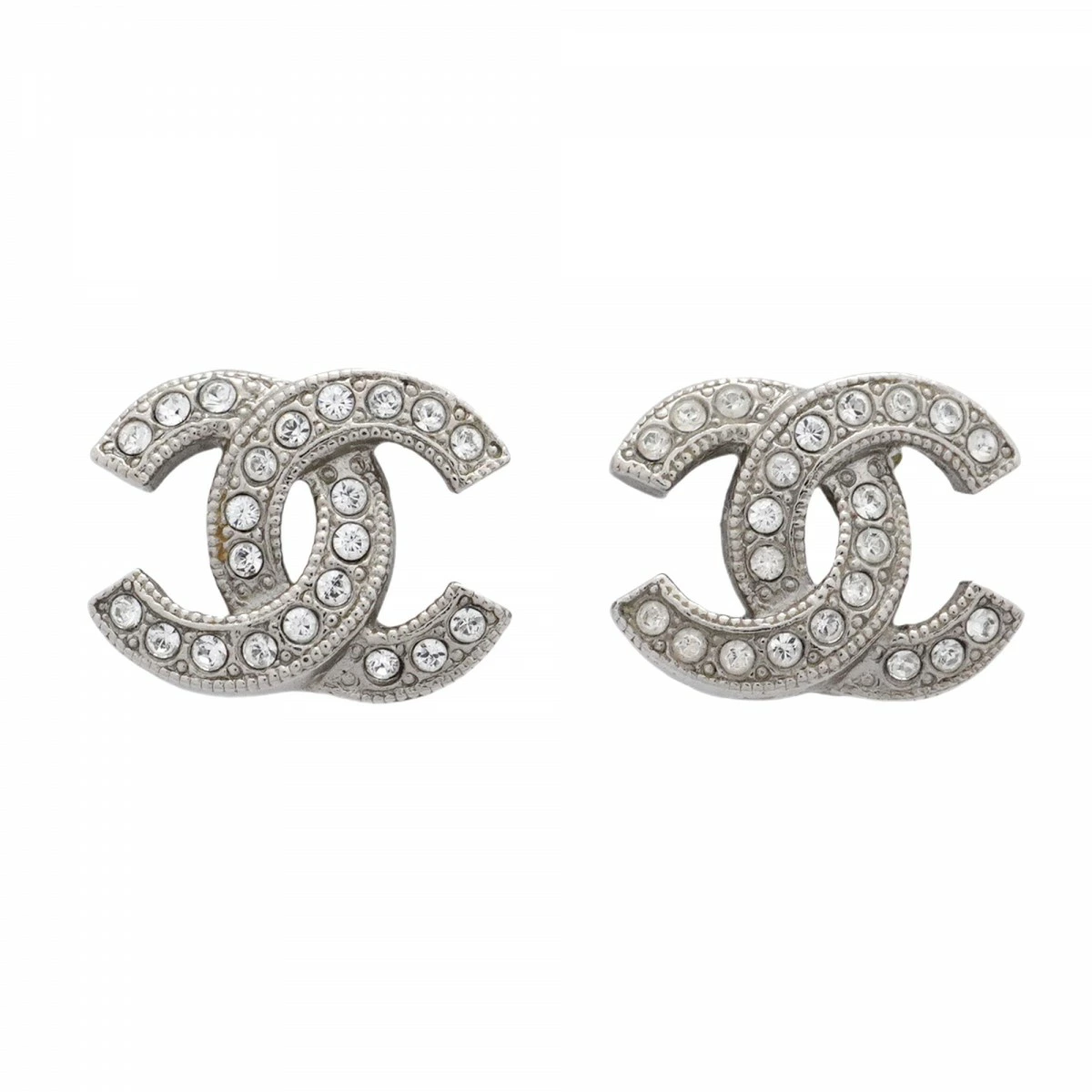 [5job0415] Chanel Coco Mark Metal Rhinestone Silver Earrings [Pre-owned] Women's