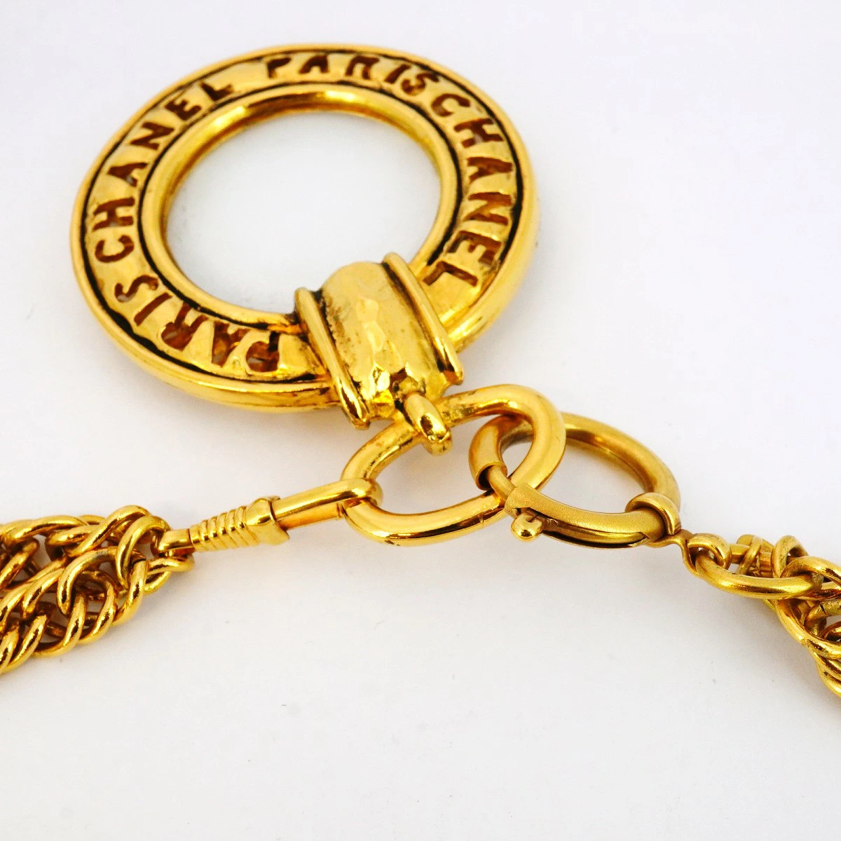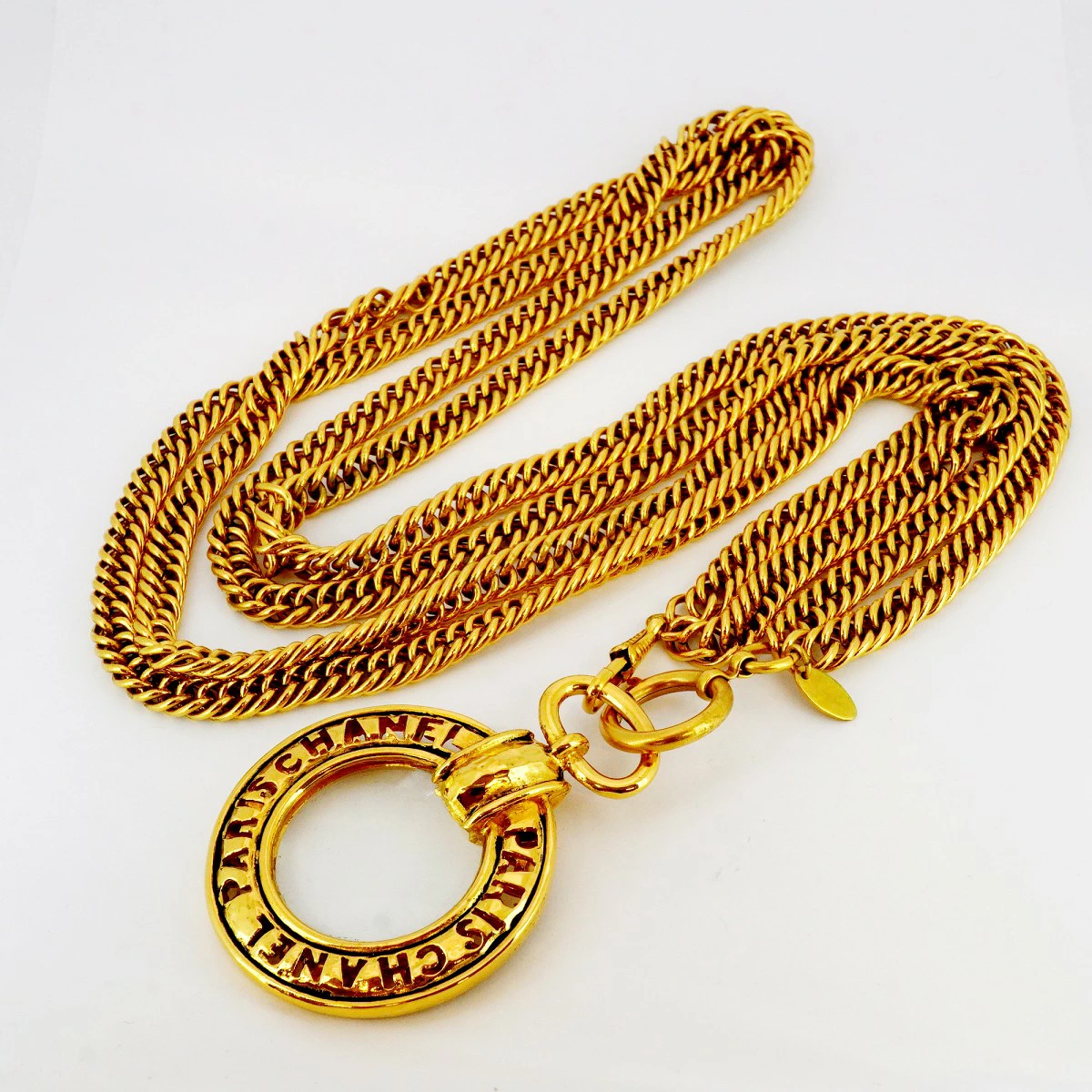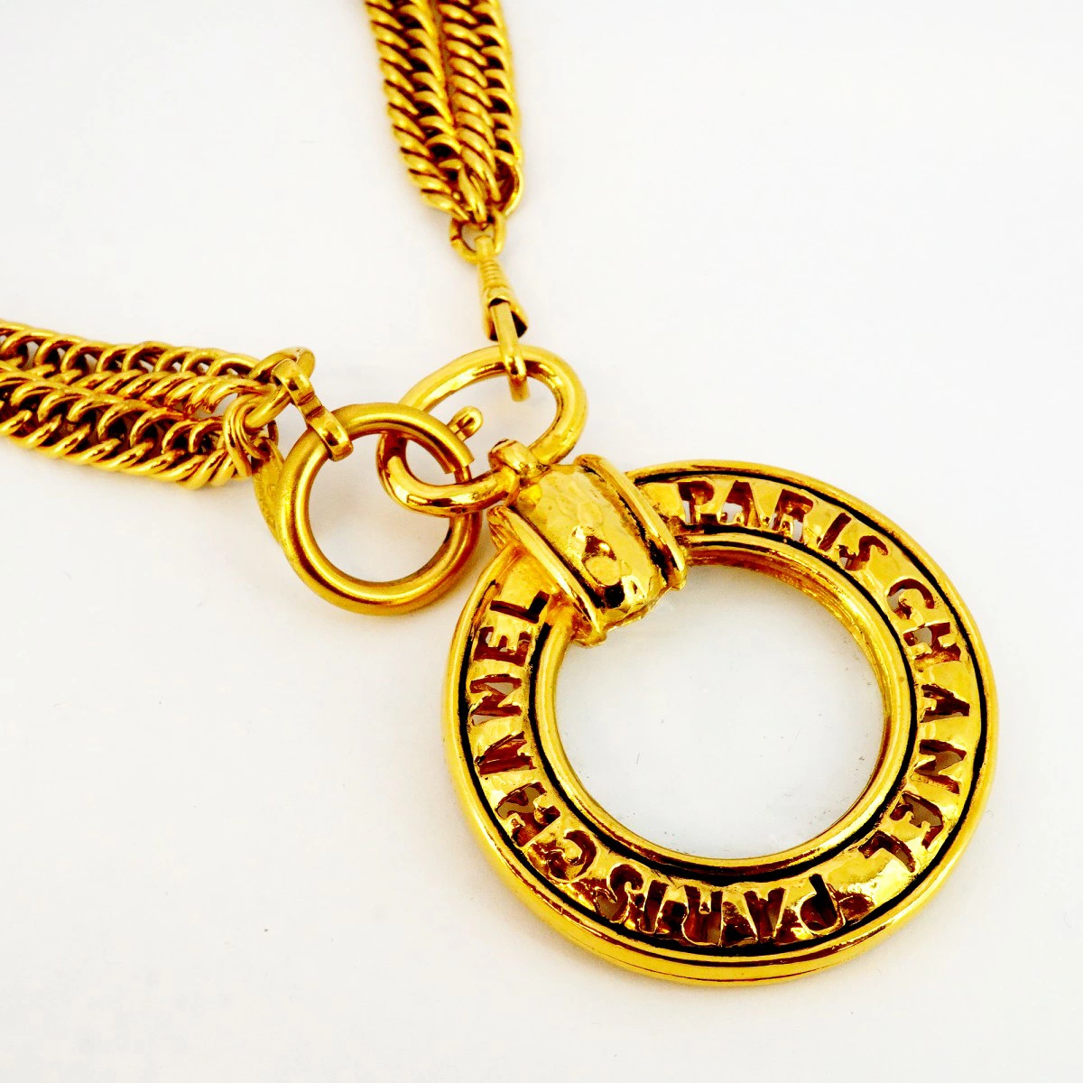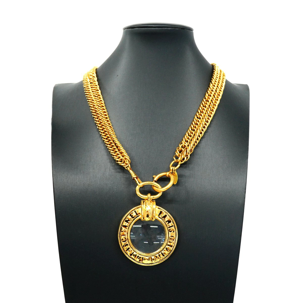 【5job0469】シャネル ネックレス シャネルロゴ ルーペ 丸型 サークル GPメッキ ゴールド【中古】レディース