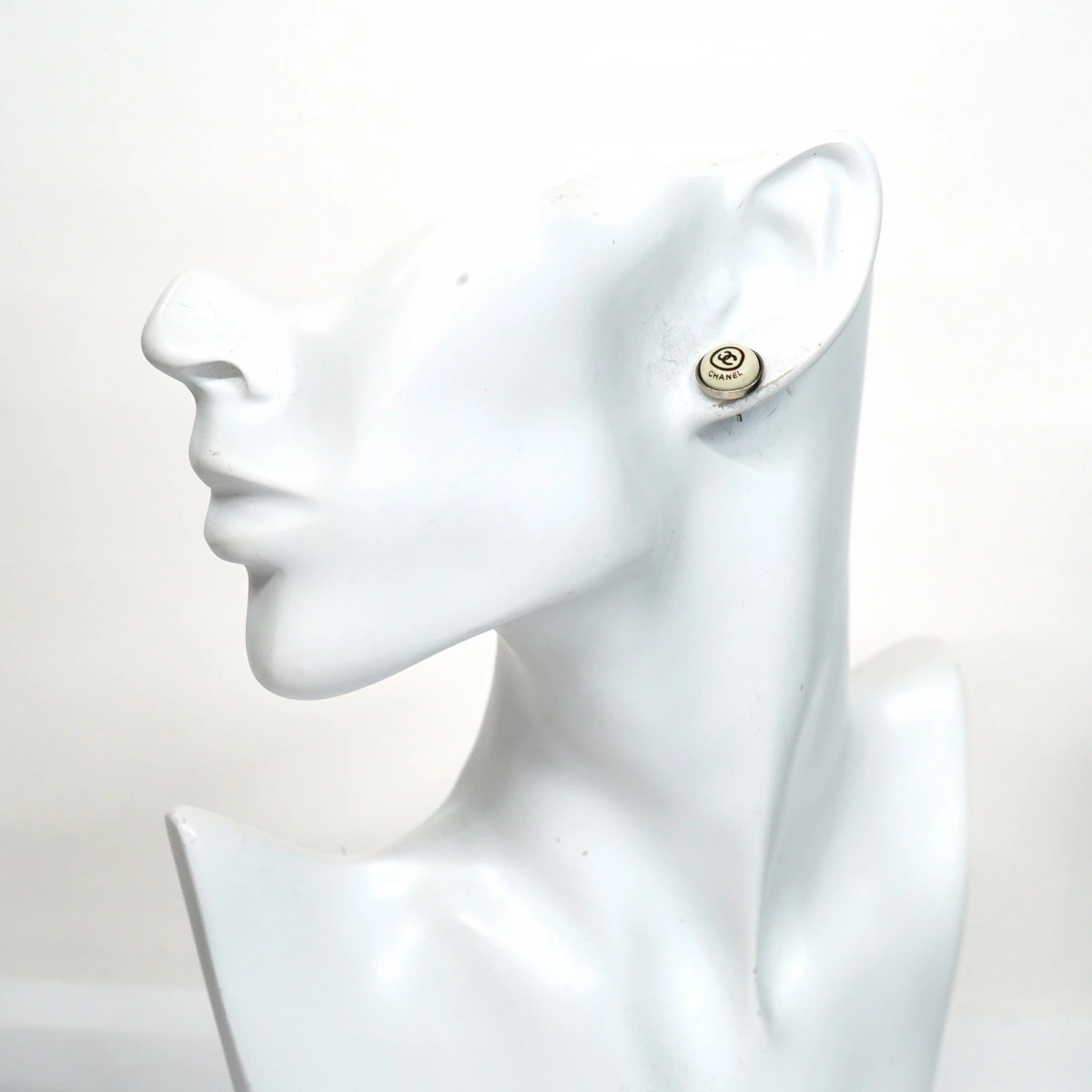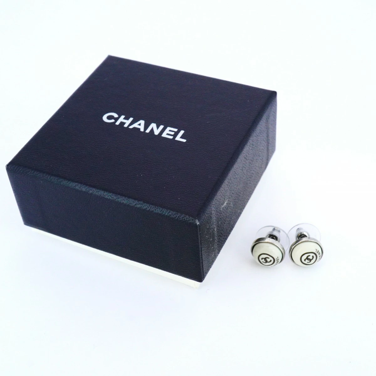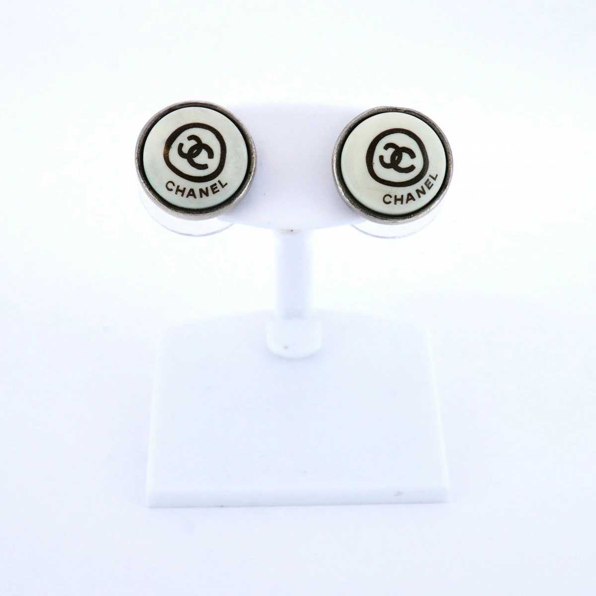 【5job0508】シャネル ピアス ココマーク シャネルロゴ 丸型 サークル メタル シルバー ホワイト【中古】レディース