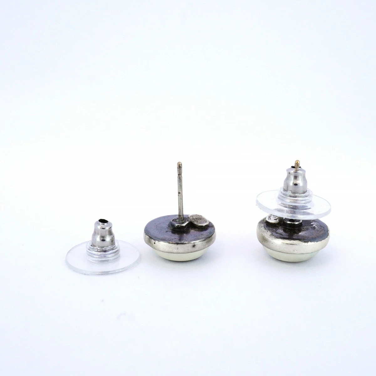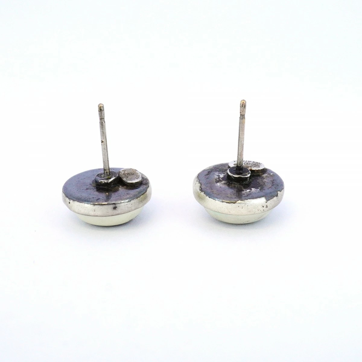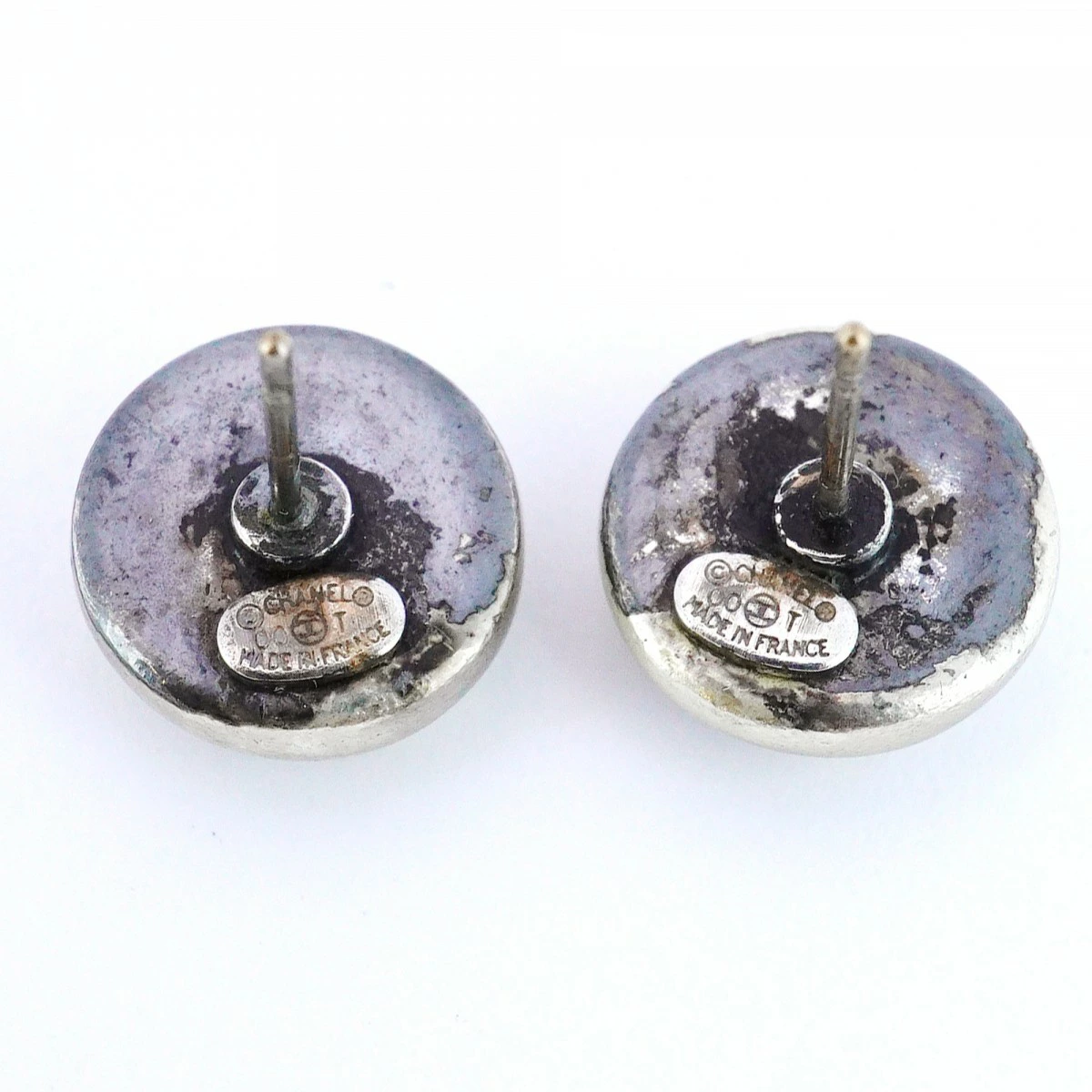 【5job0508】シャネル ピアス ココマーク シャネルロゴ 丸型 サークル メタル シルバー ホワイト【中古】レディース
