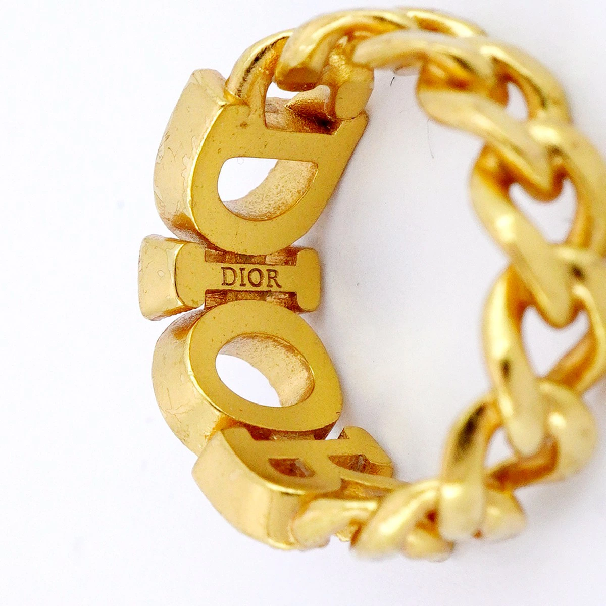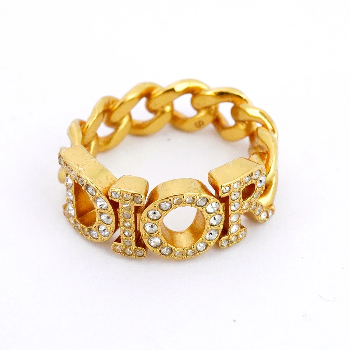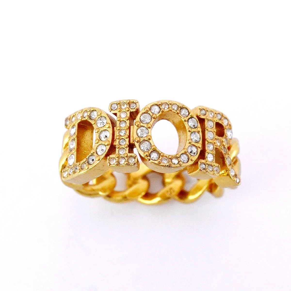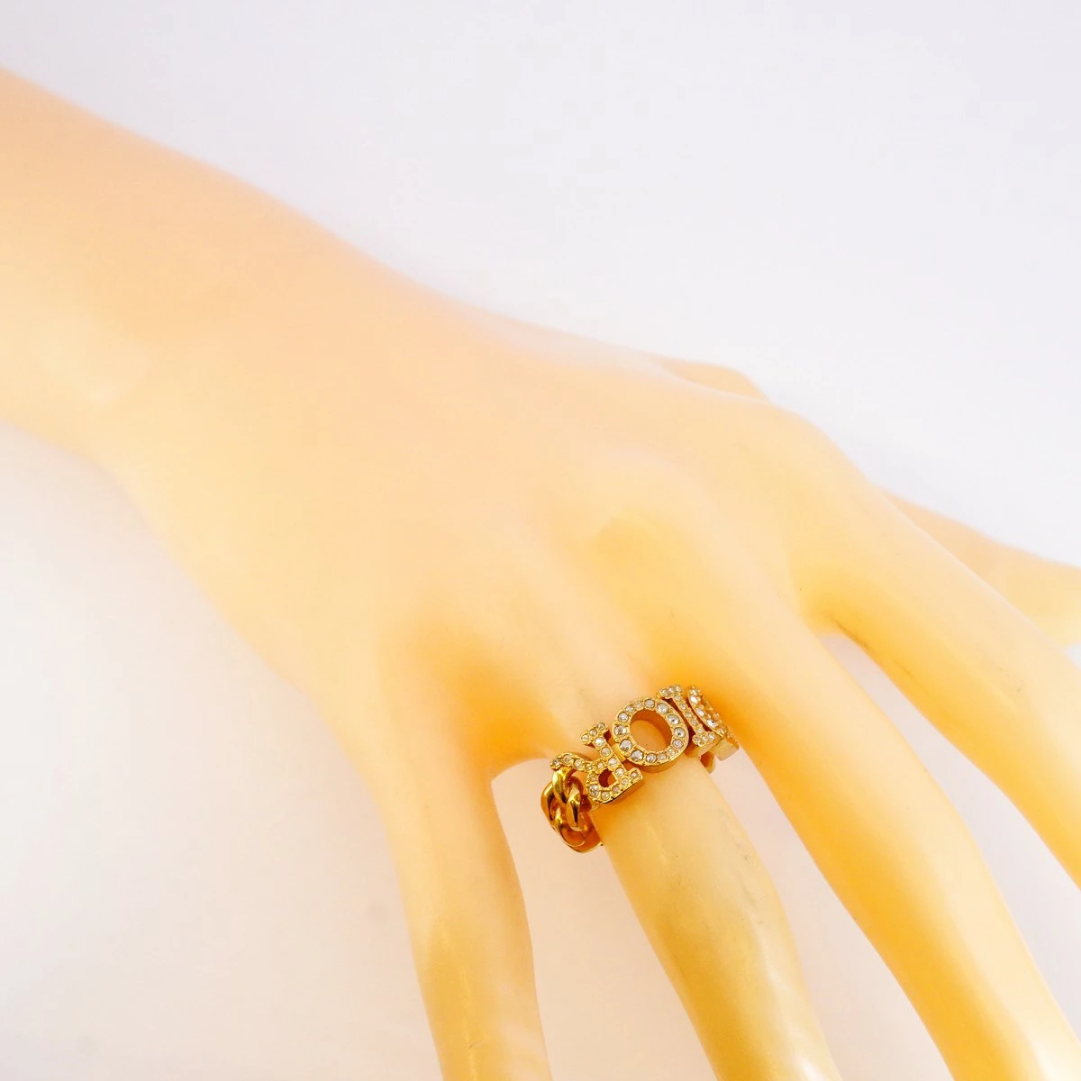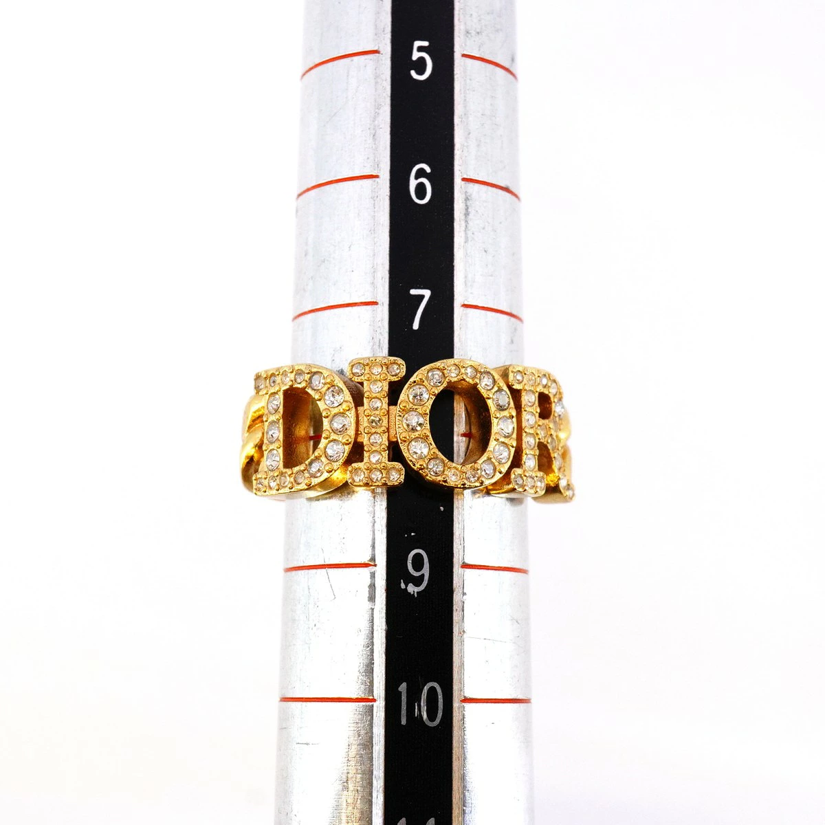 【5job0522】クリスチャンディオール リング ディオールロゴ GPメッキ ラインストーン ゴールド 8.5号【中古】レディース
