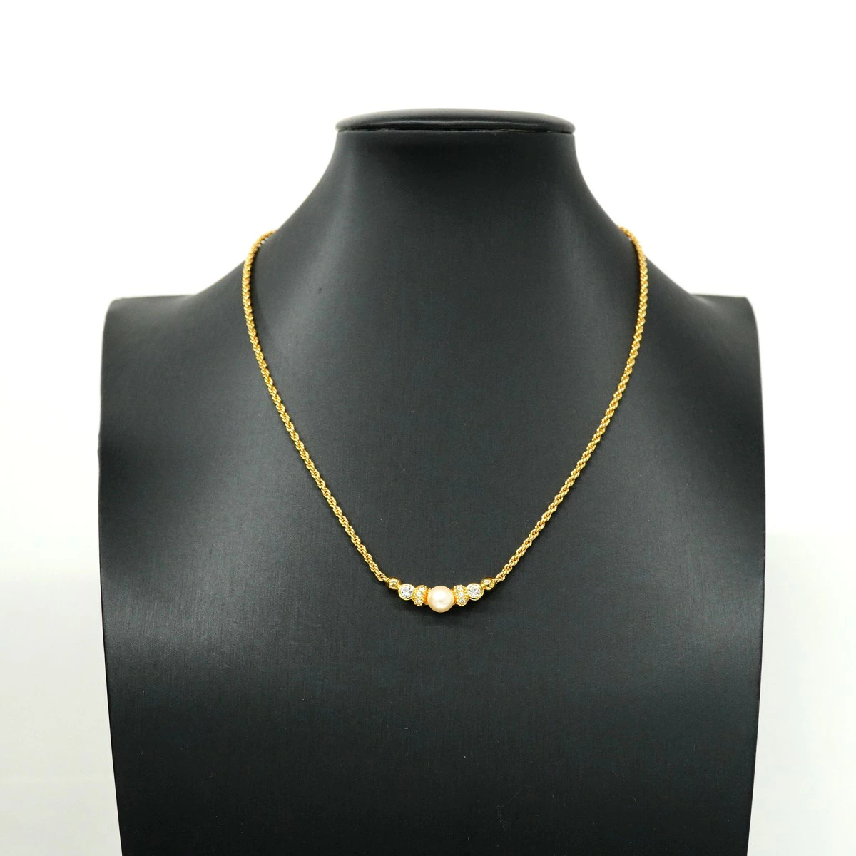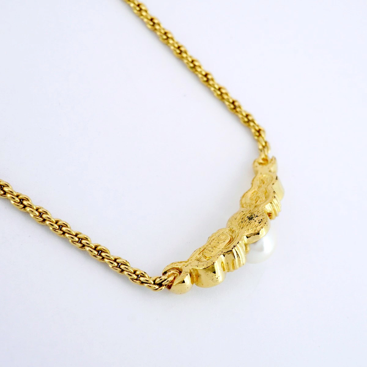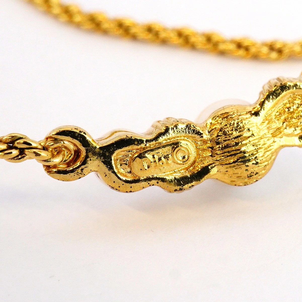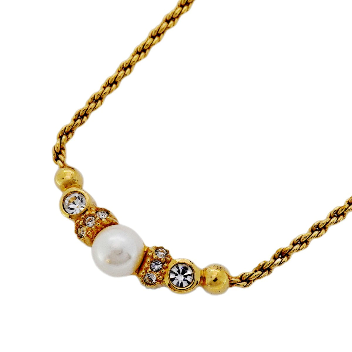 ★SALE【5job0536】クリスチャンディオール ネックレス GPメッキ ラインストーン フェイクパール ゴールド【中古】レディース
