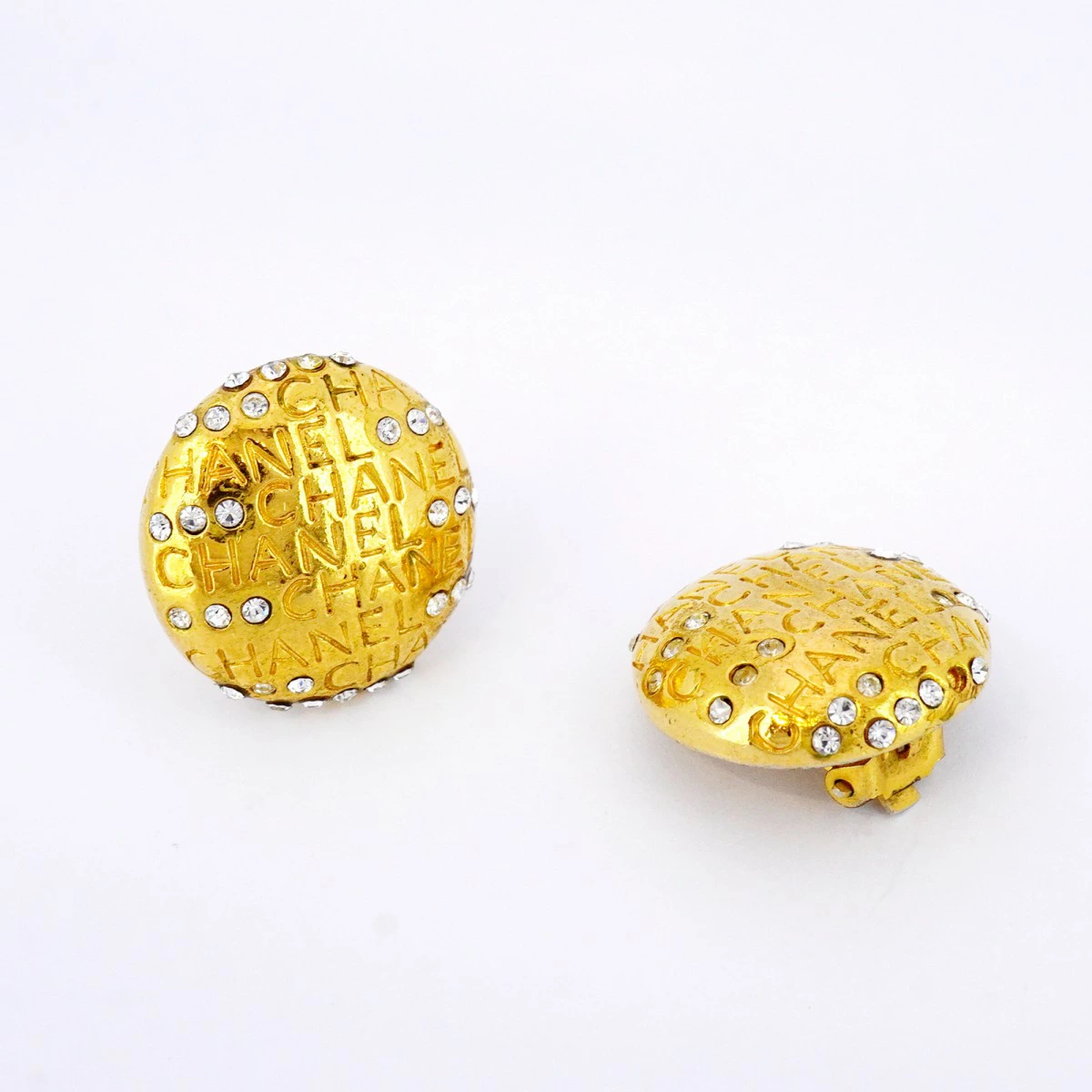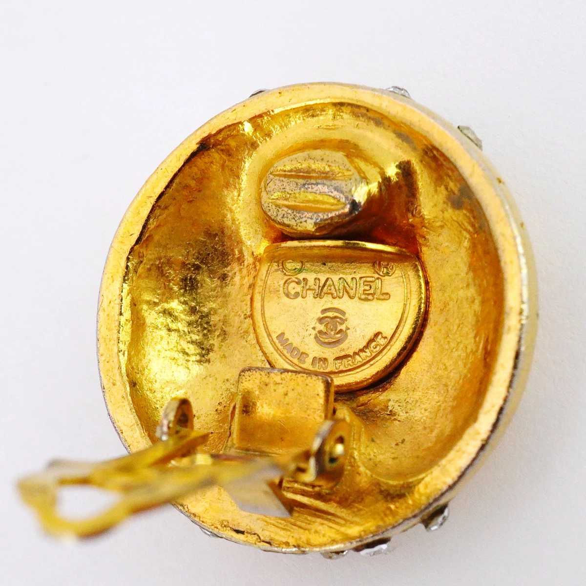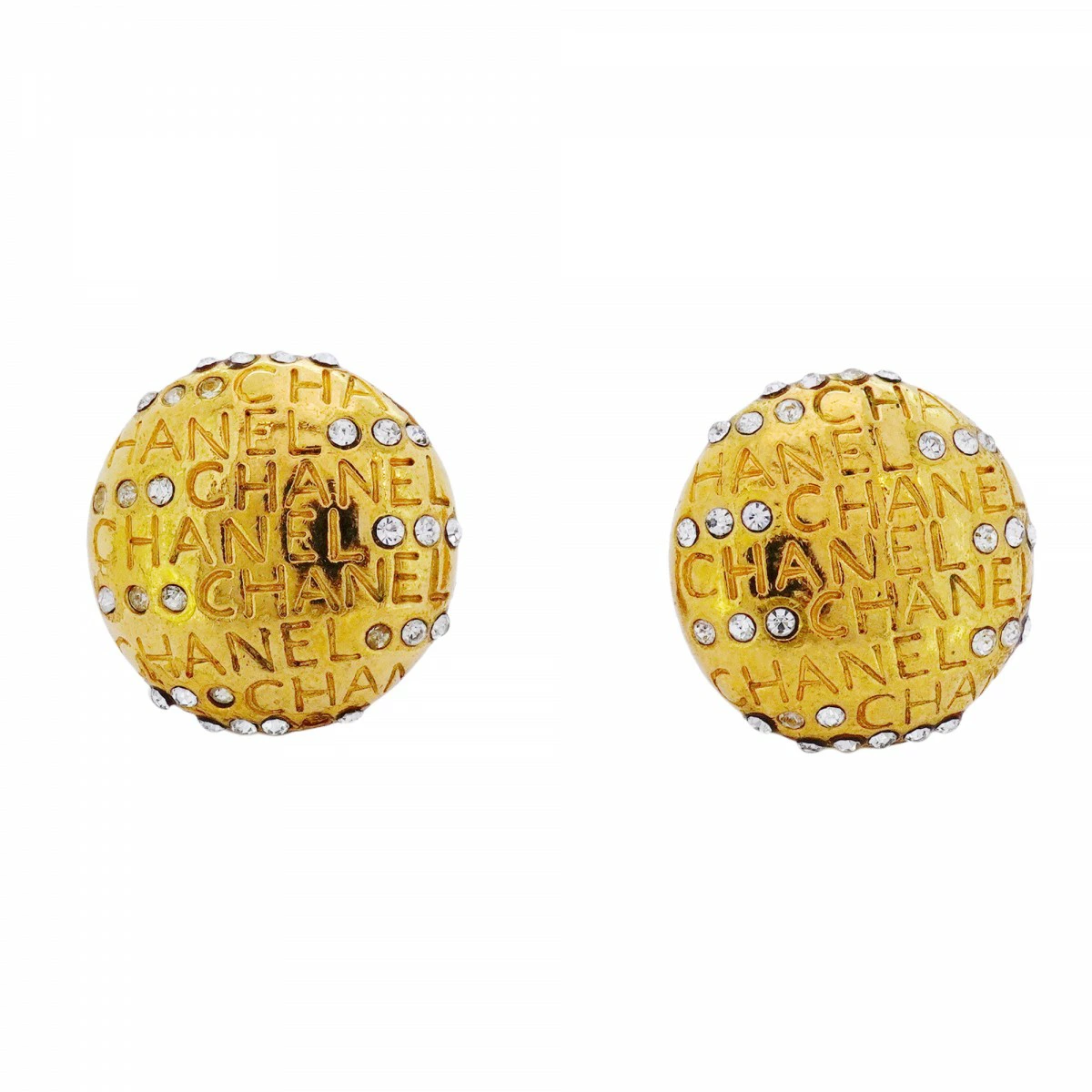 【5job0553】シャネル イヤリング ヴィンテージ シャネルロゴ 丸型 サークル GPメッキ ラインストーン ゴールド【中古】レディース