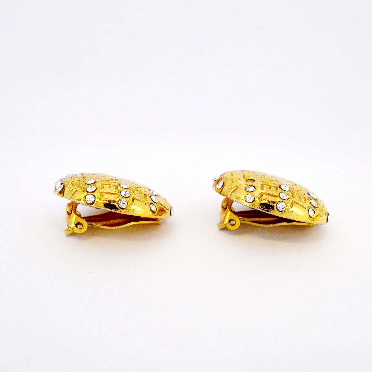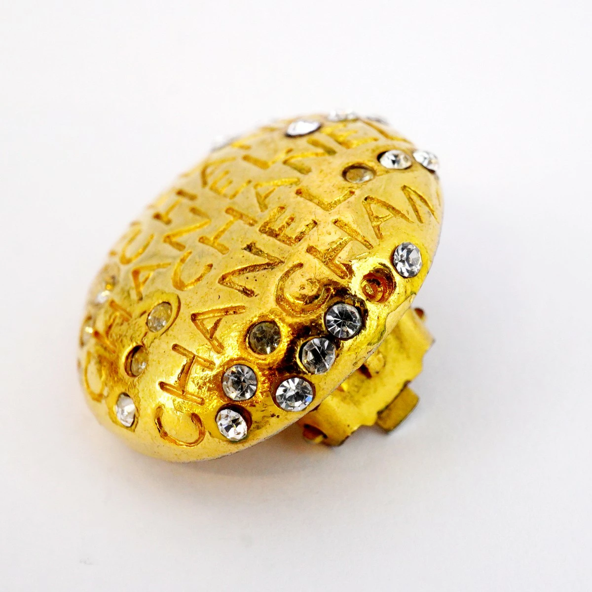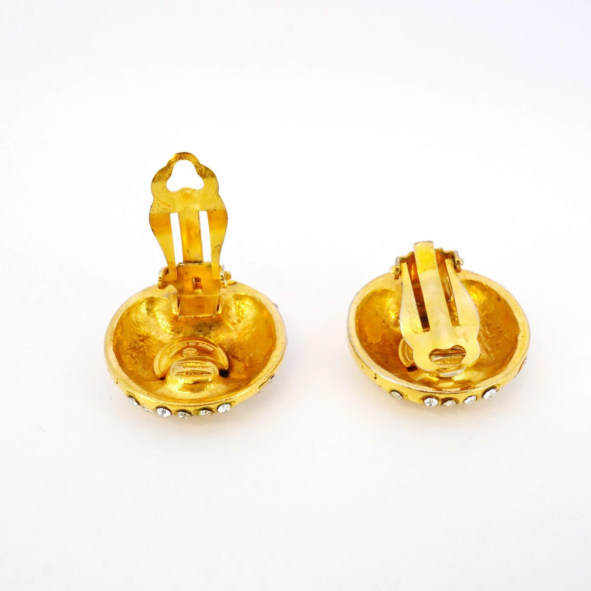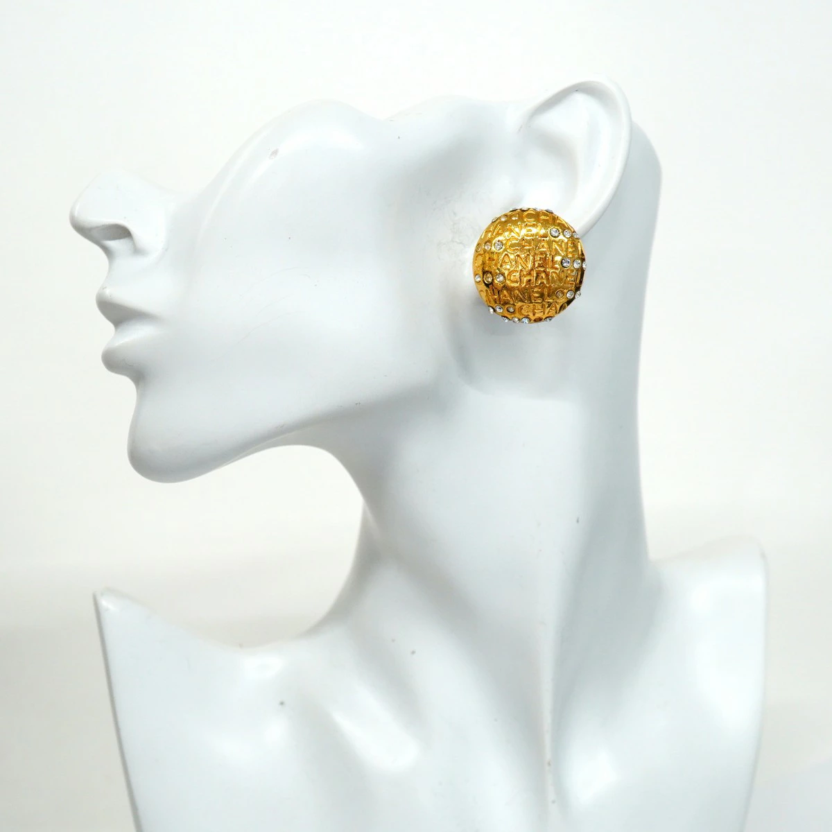 【5job0553】シャネル イヤリング ヴィンテージ シャネルロゴ 丸型 サークル GPメッキ ラインストーン ゴールド【中古】レディース