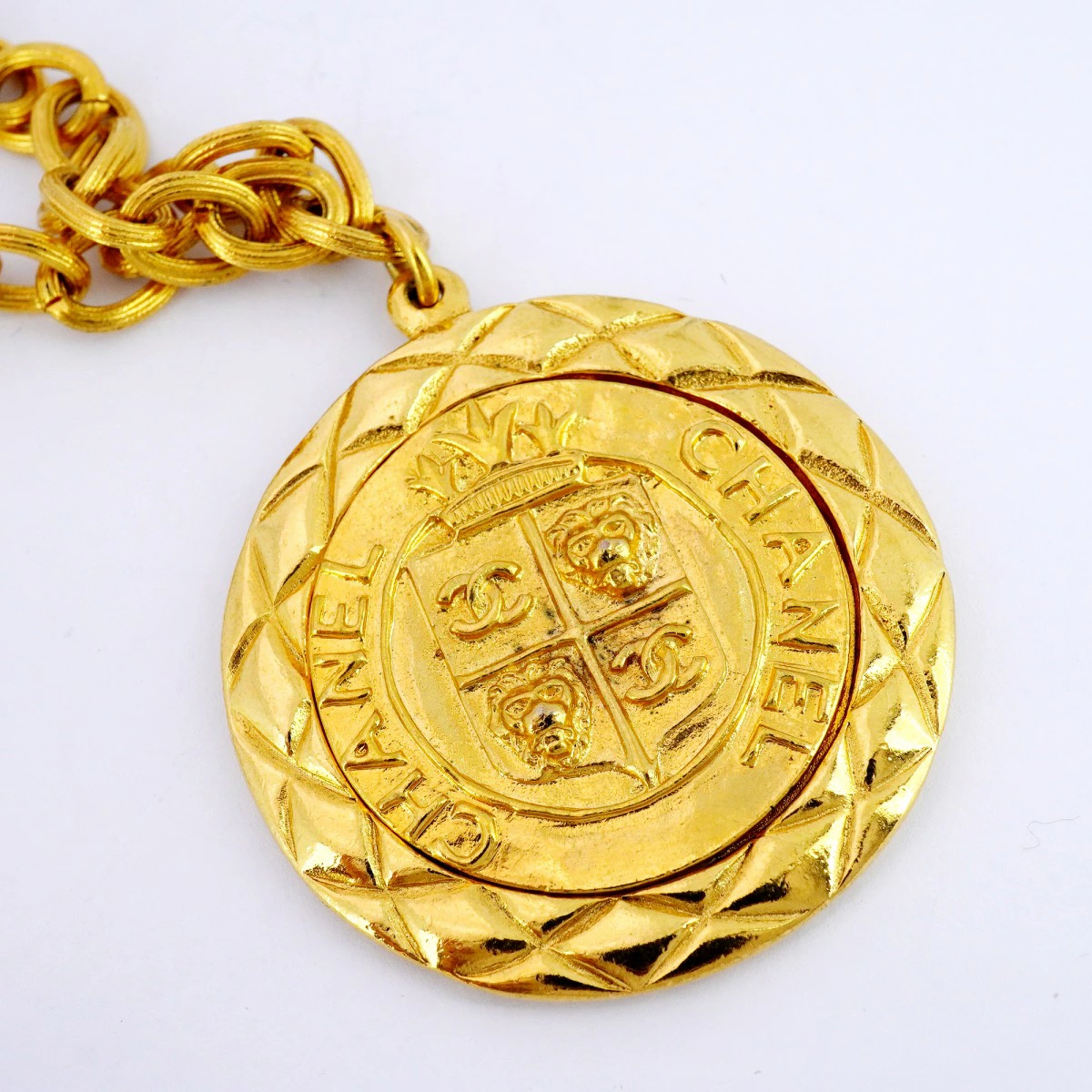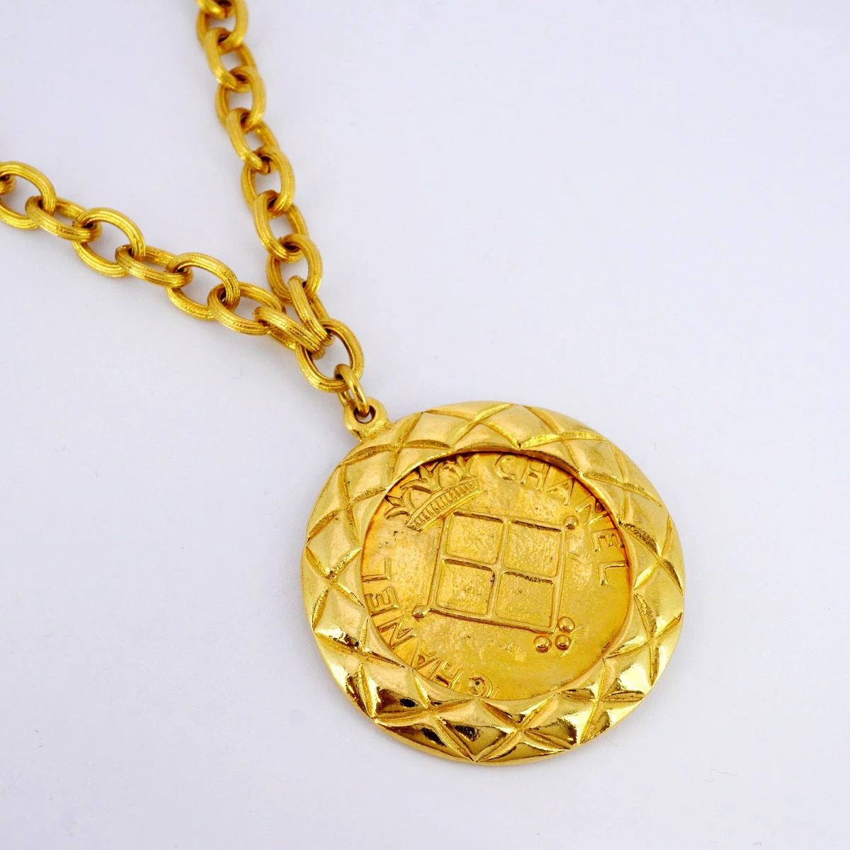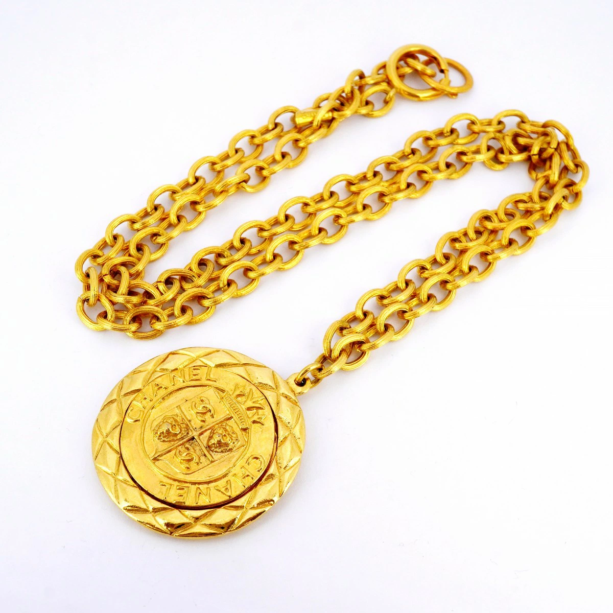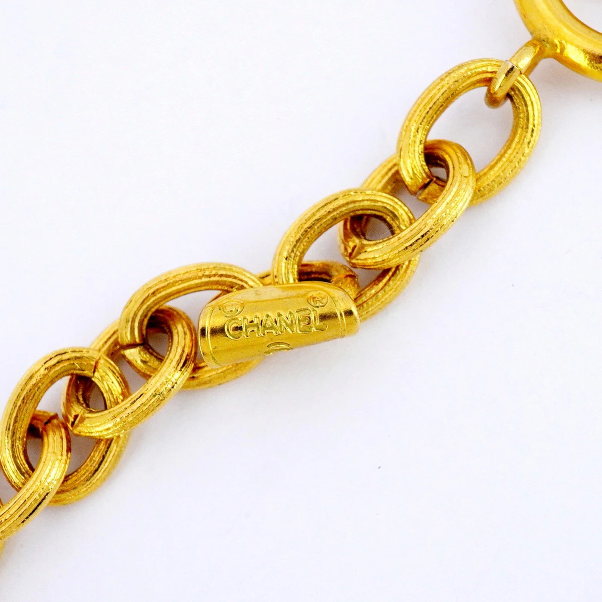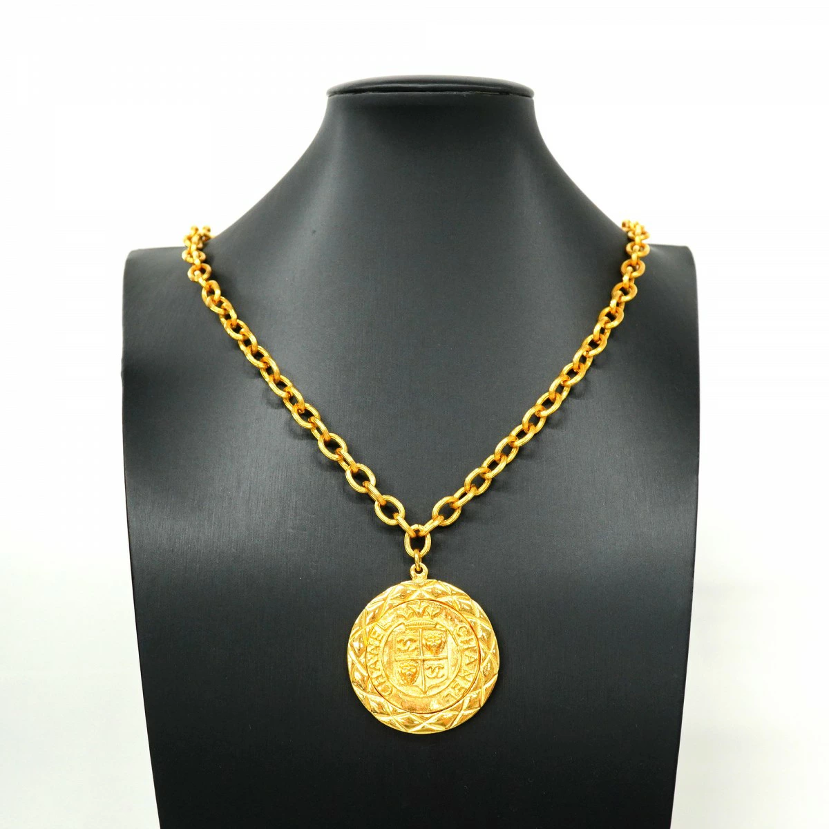 【5job0614】シャネル ネックレス ヴィンテージ ココマーク シャネルロゴ/マトラッセ 丸型 サークル GPメッキ ゴールド【中古】レディース