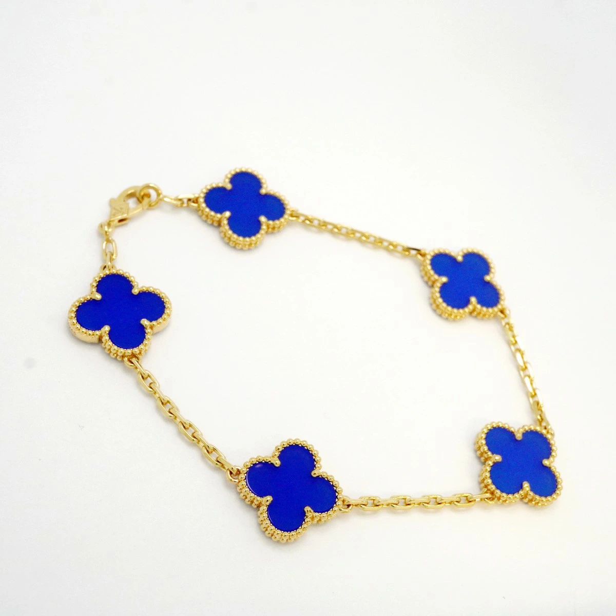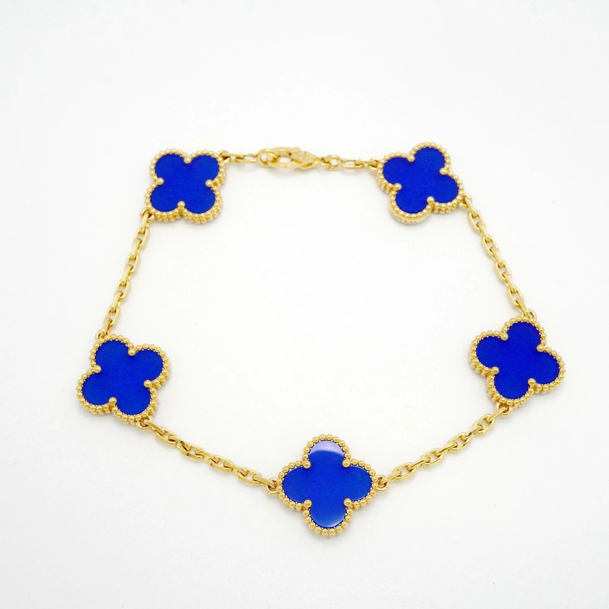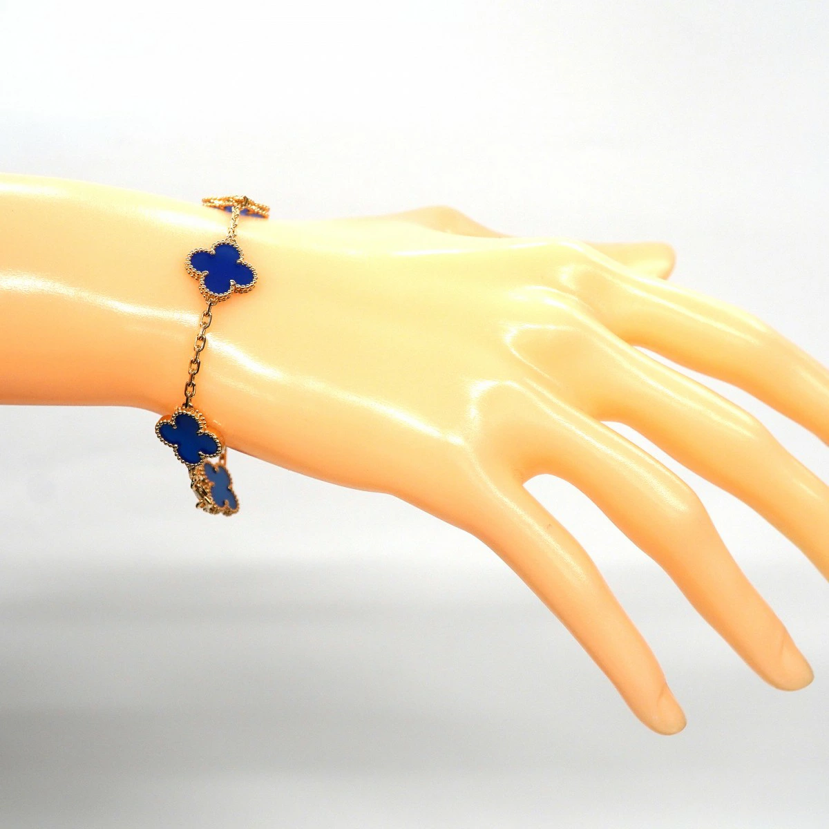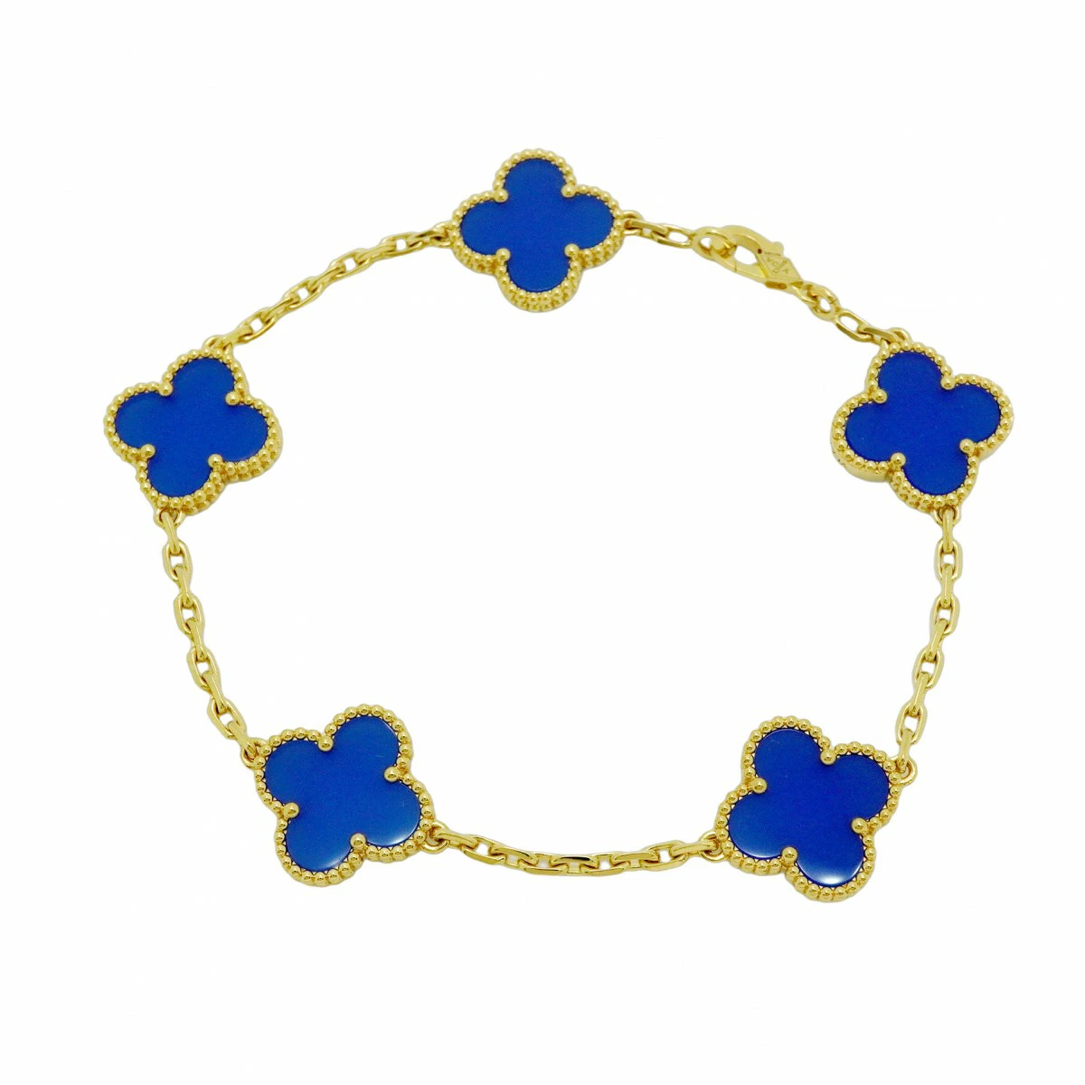 【5job0704】ヴァンクリーフ&アーペル ブレスレット ヴィンテージ アルハンブラ 5モチーフ K18YG イエローゴールド ブルーアゲート【中古】レディース
