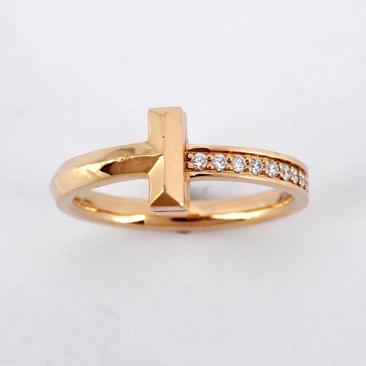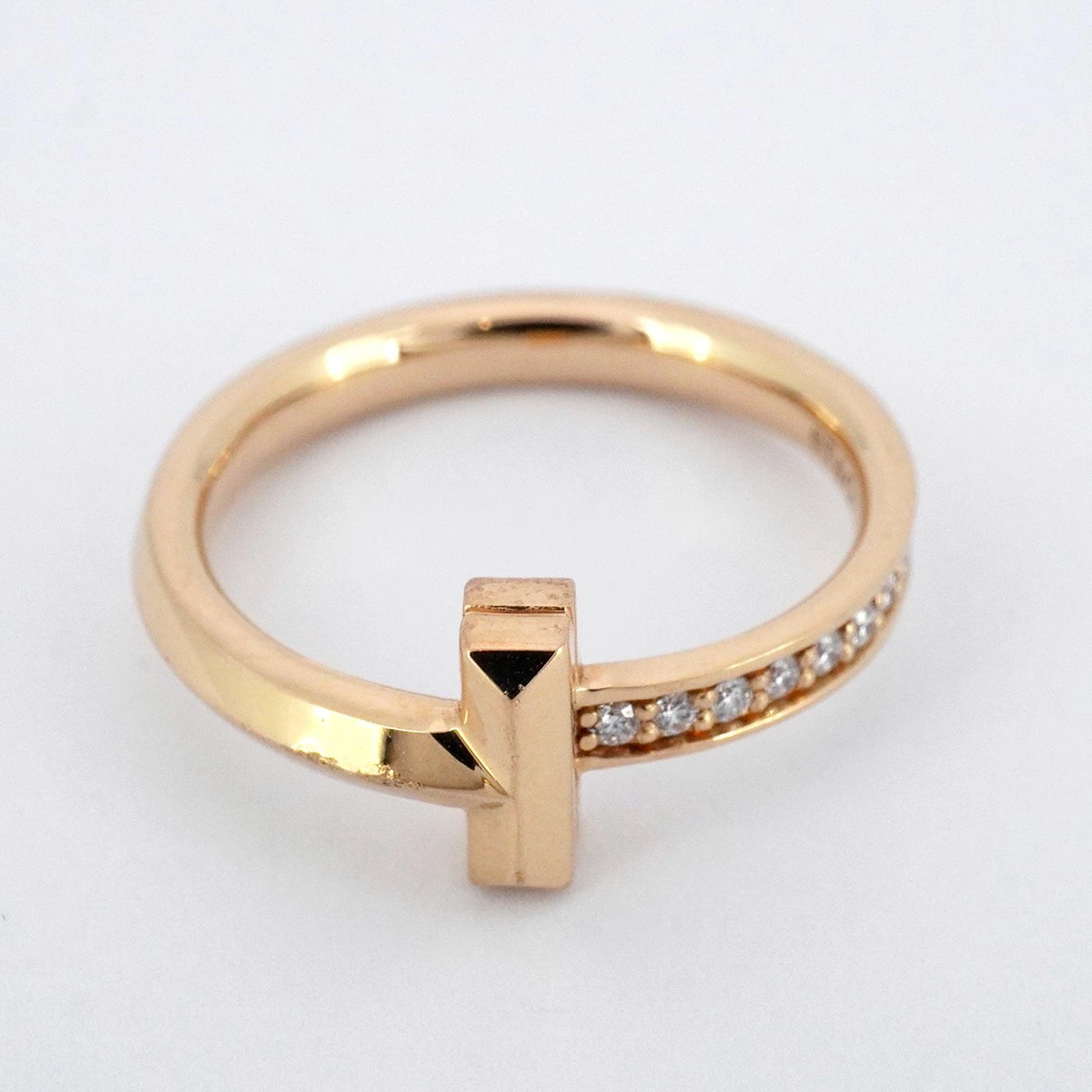 【5job0784】ティファニー リング Tワン K18PG ピンクゴールド ダイヤモンド 0.08ct 12号【中古】レディース
