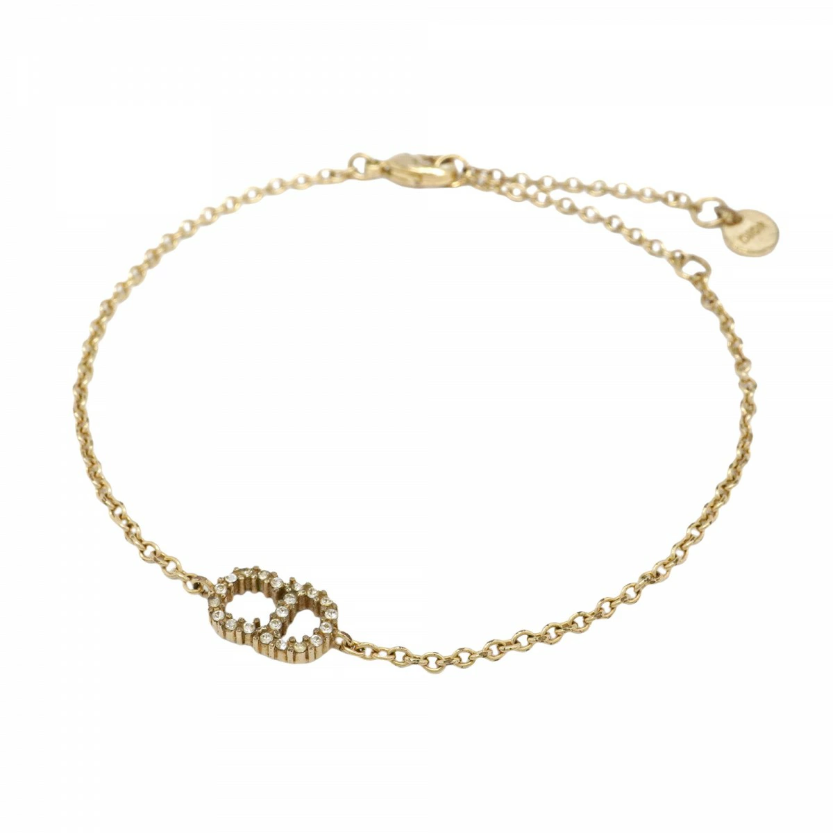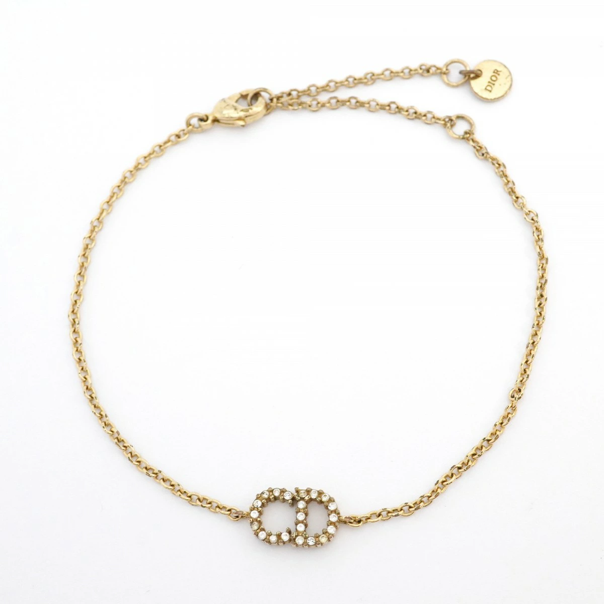 【5jpb0025】クリスチャンディオール ブレスレット CDロゴ GPメッキ ラインストーン ゴールド【中古】レディース