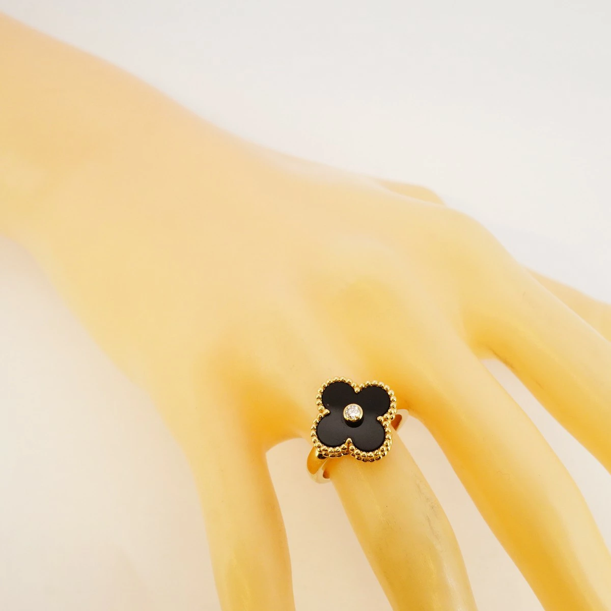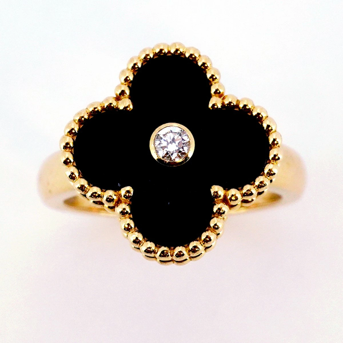 【5jpb0118】ヴァンクリーフ&アーペル リング ヴィンテージ アルハンブラ 1PD K18YG イエローゴールド ダイヤモンド オニキス ブラック #50【中古】レディース