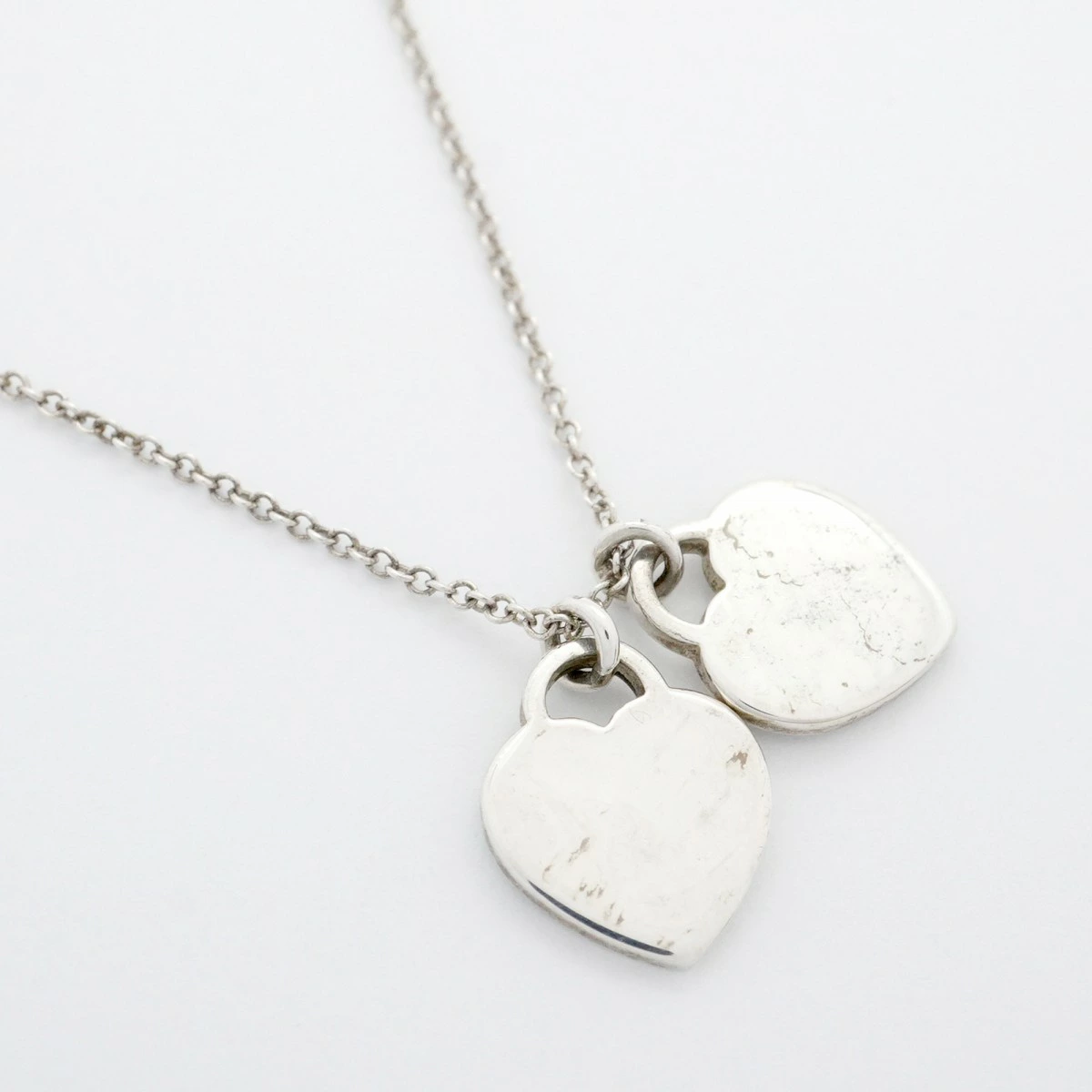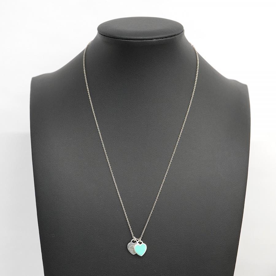 【5jpb0143】ティファニー ネックレス ダブルリターントゥハート 1PD シルバー925 ダイヤモンド ブルー【中古】レディース