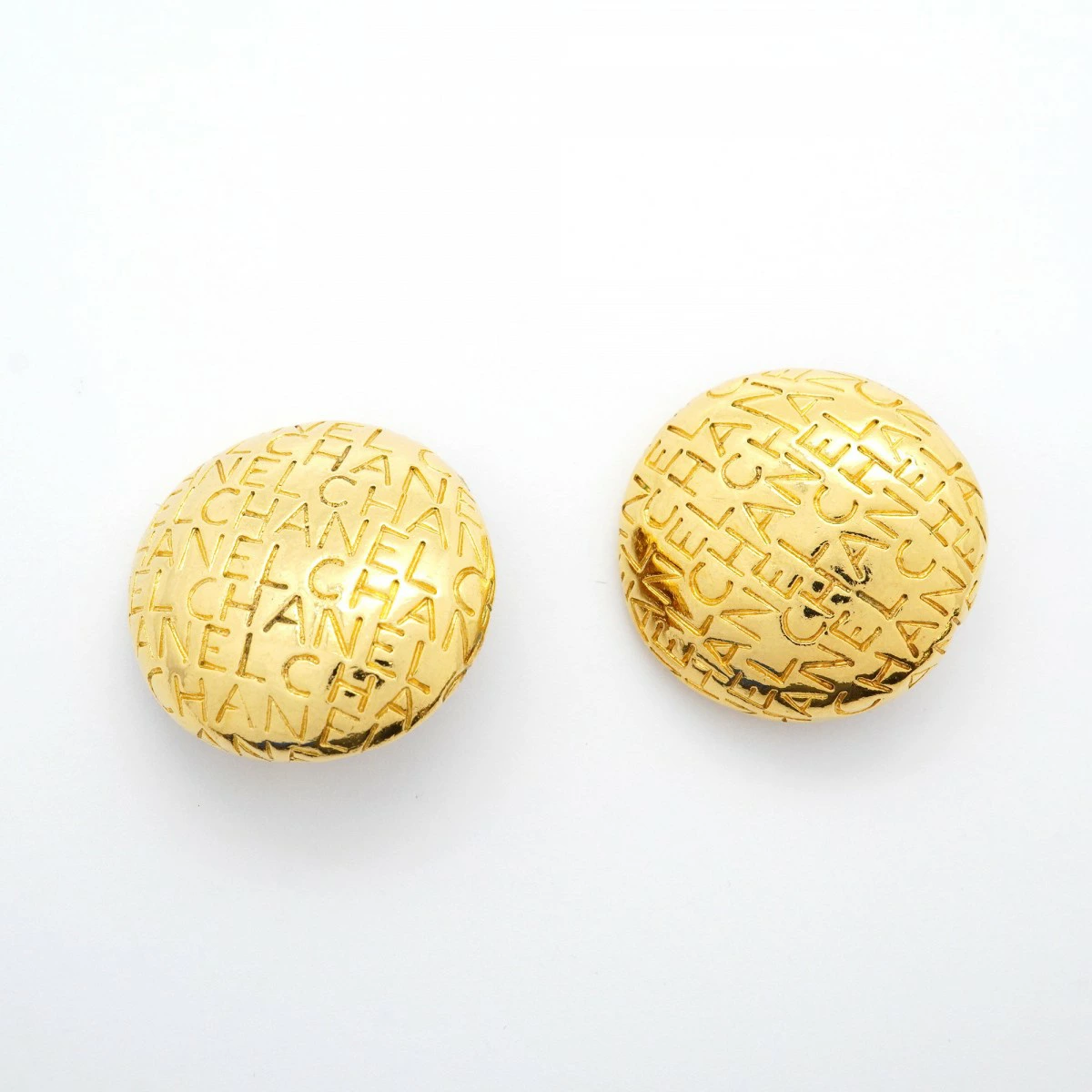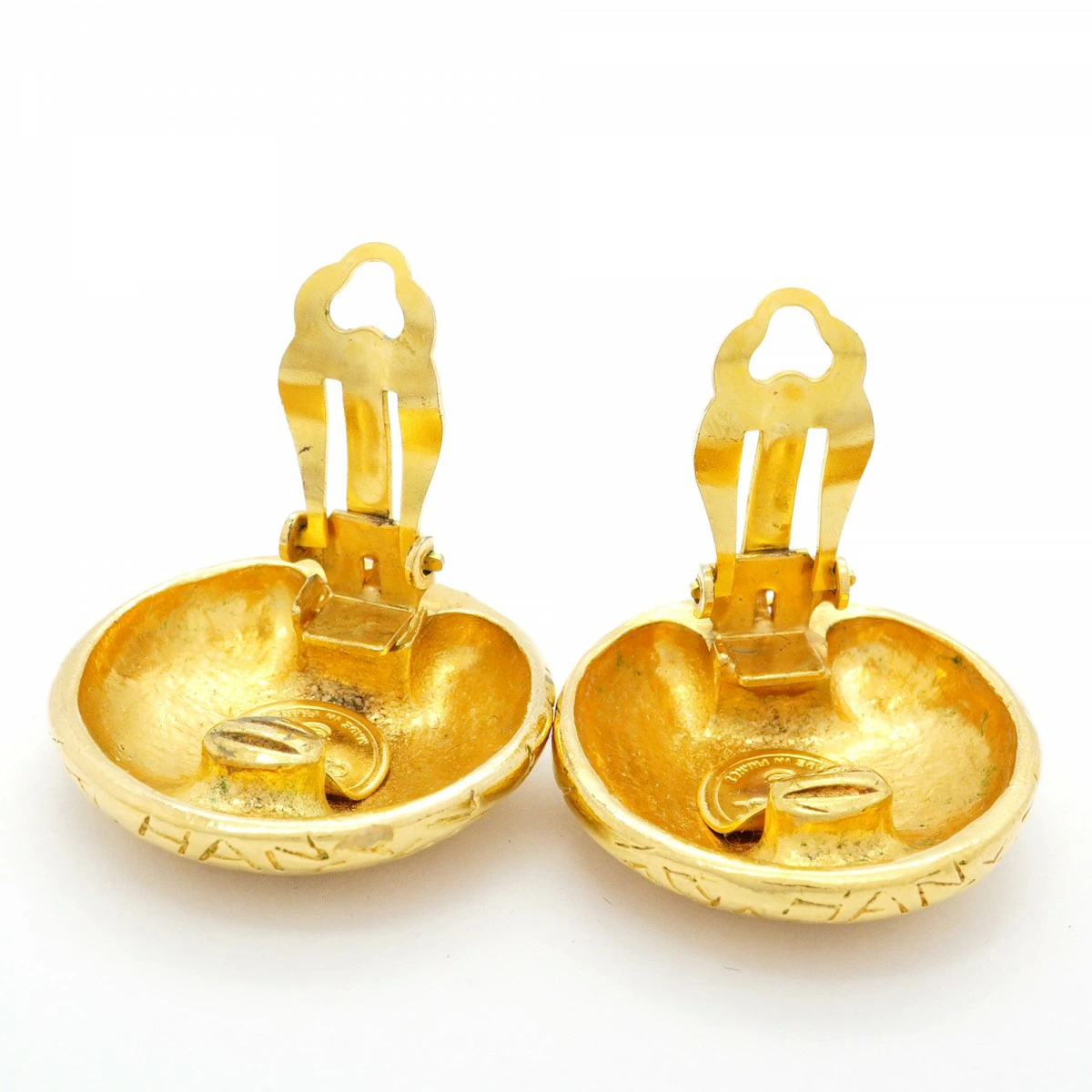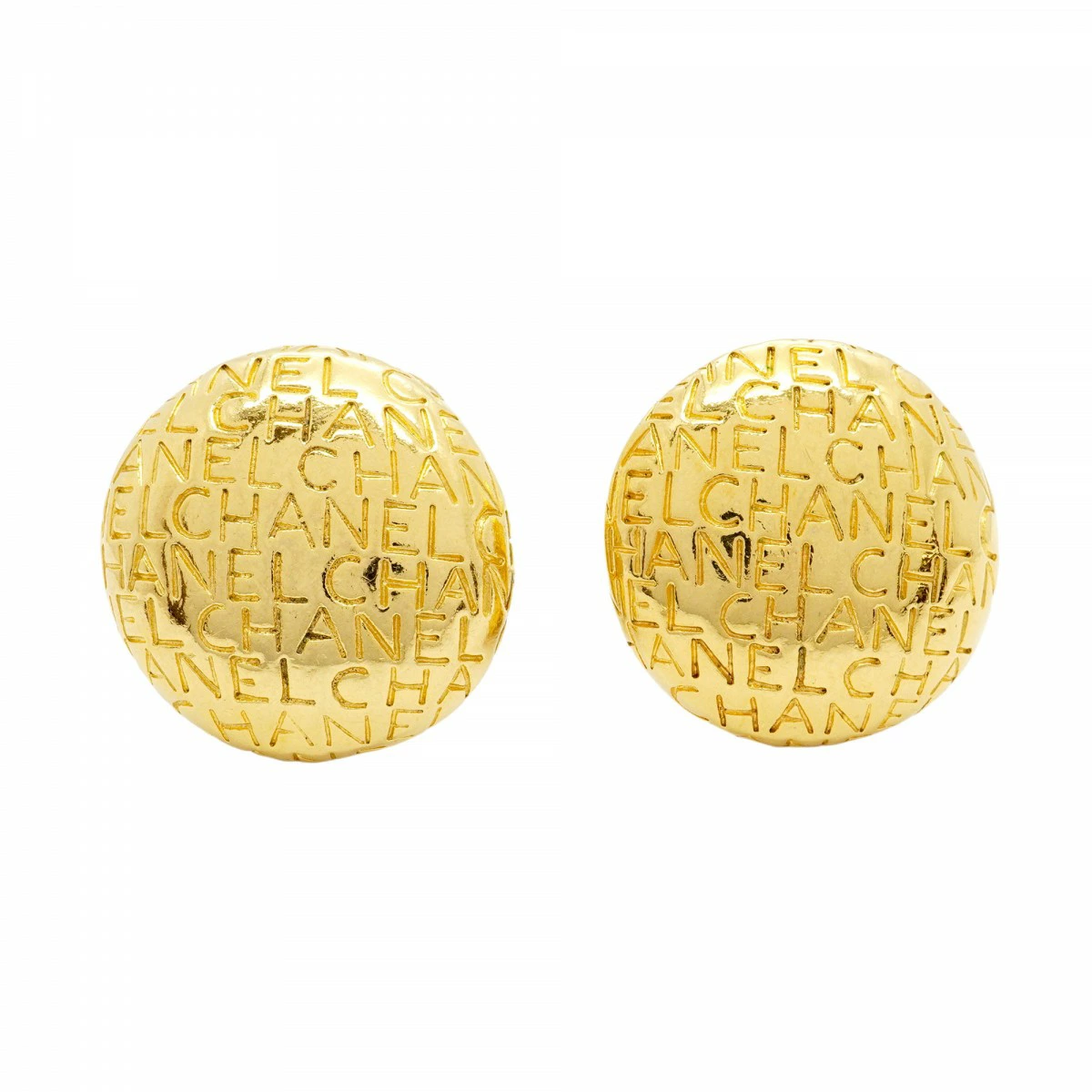 [5jpb0148] Vintage Chanel earrings with the Chanel logo, round, GP-plated gold. Pre-owned. Women's.