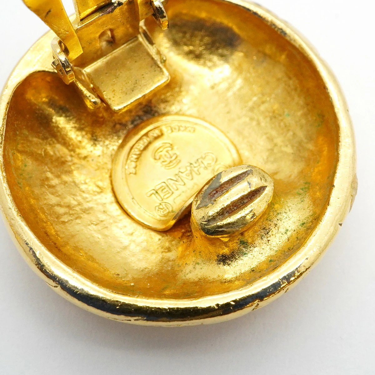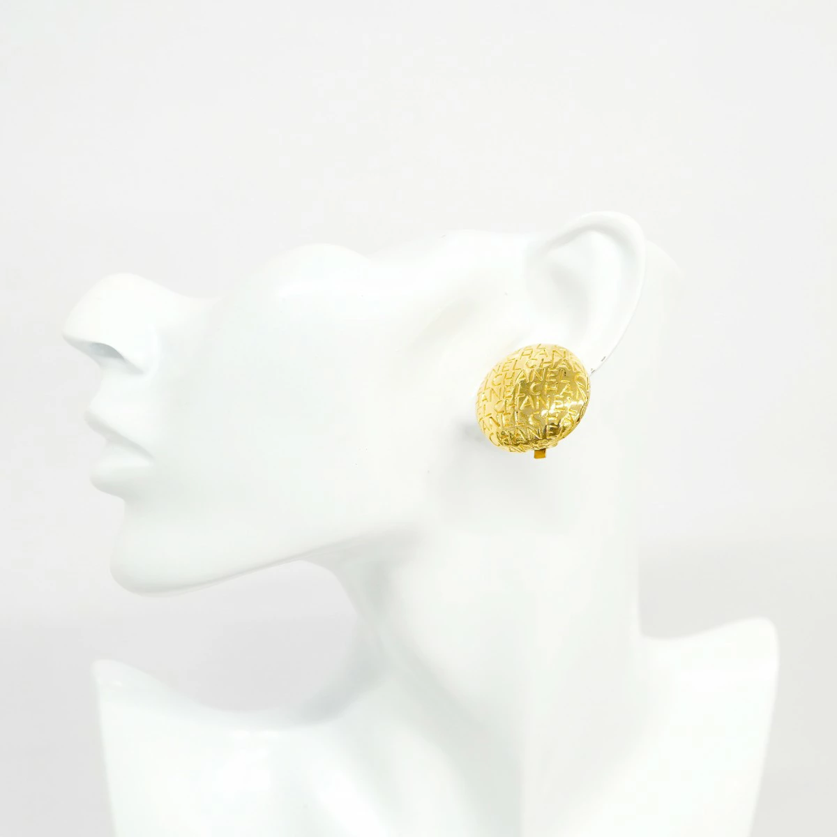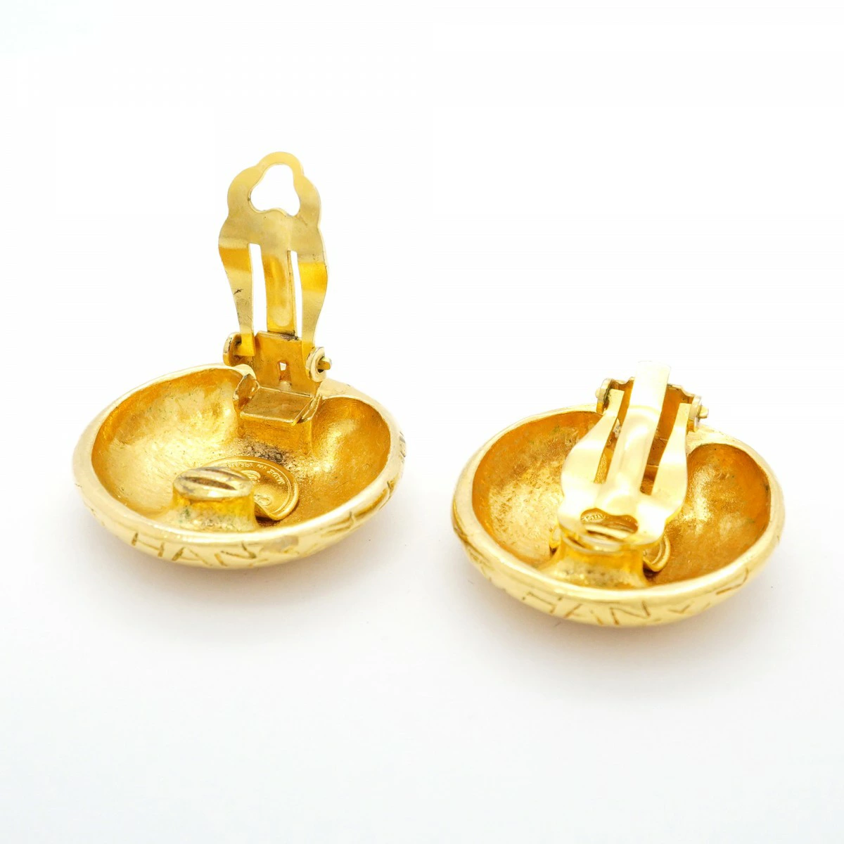 [5jpb0148] Vintage Chanel earrings with the Chanel logo, round, GP-plated gold. Pre-owned. Women's.