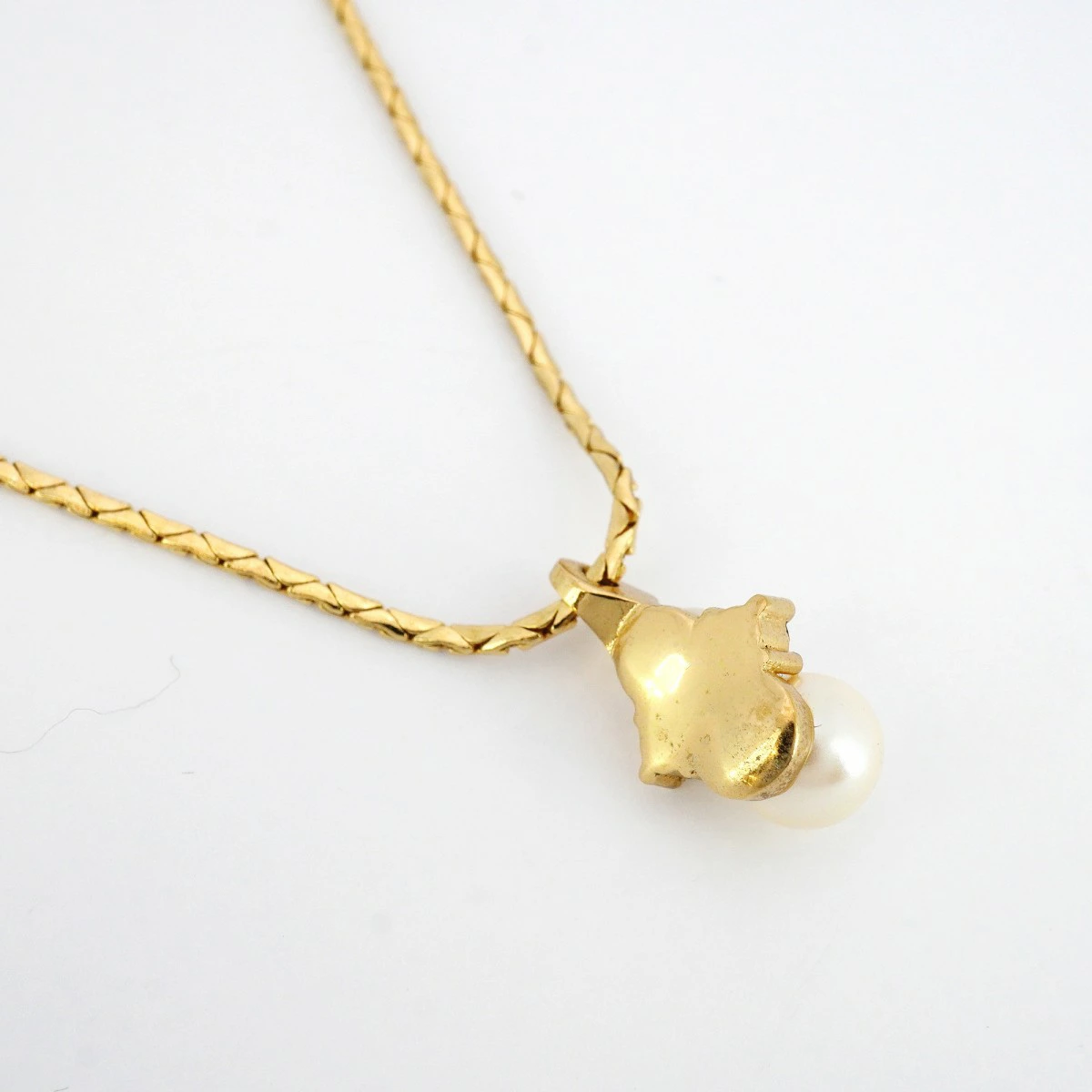 【5jpb0177】クリスチャンディオール ネックレス GPメッキ フェイクパール ラインストーン ゴールド【中古】レディース
