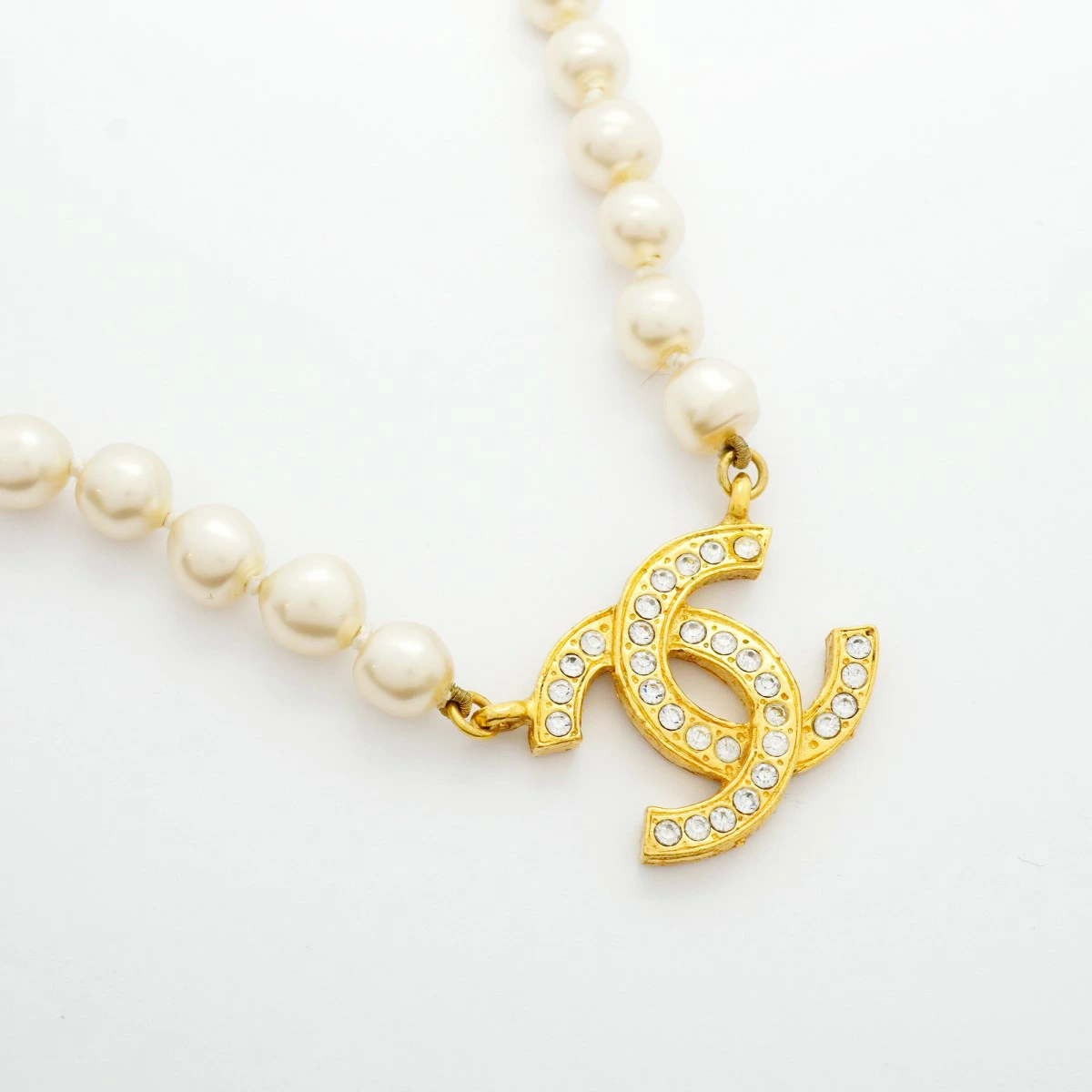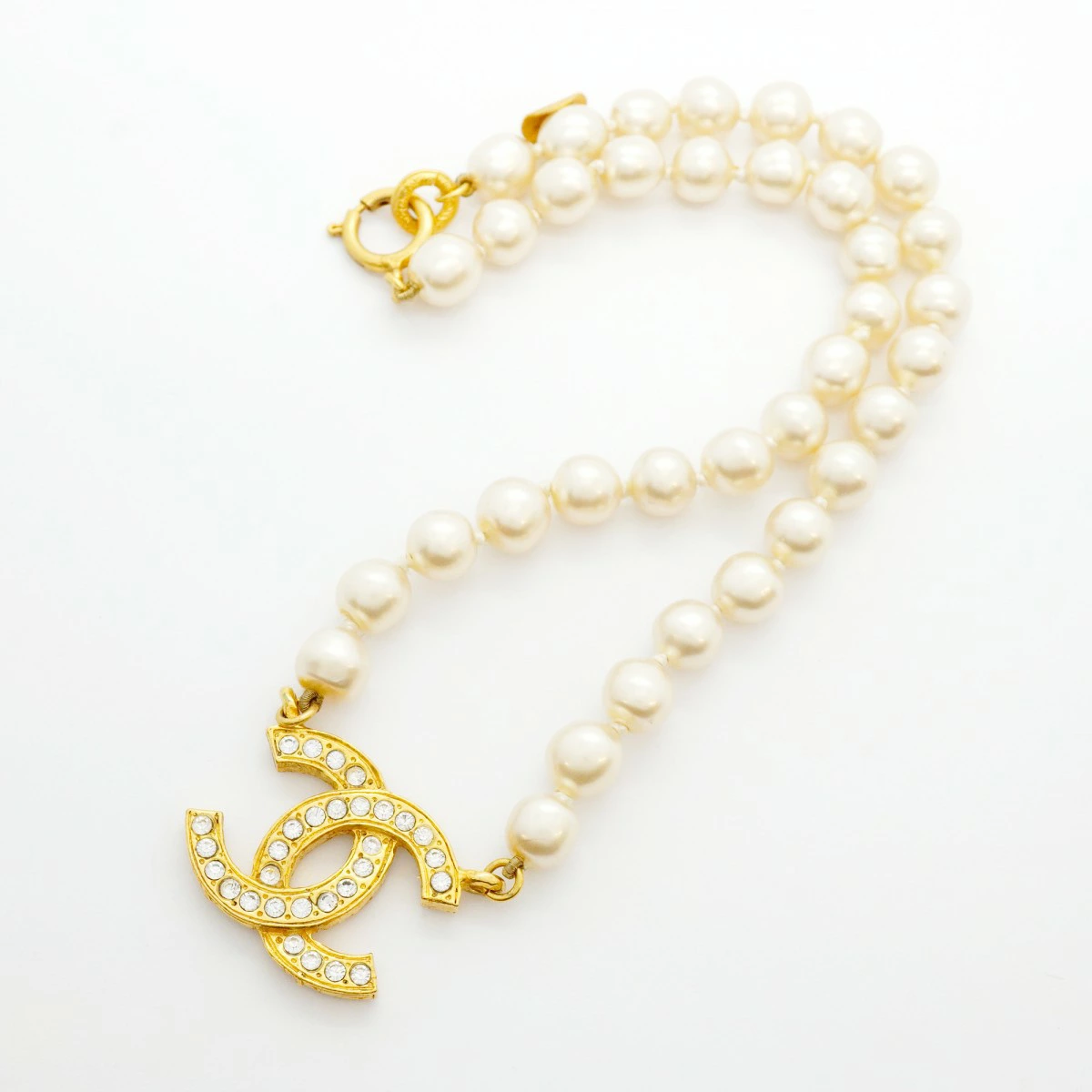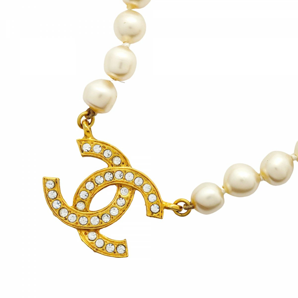 【5jpb0214】シャネル ネックレス ヴィンテージ ココマーク GPメッキ ラインストーン フェイクパール ゴールド【中古】レディース
