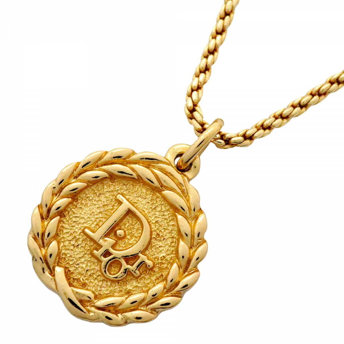 ★SALE【5jpb0219】クリスチャンディオール ネックレス ディオールロゴ 丸型 サークル GPメッキ ゴールド【中古】レディース