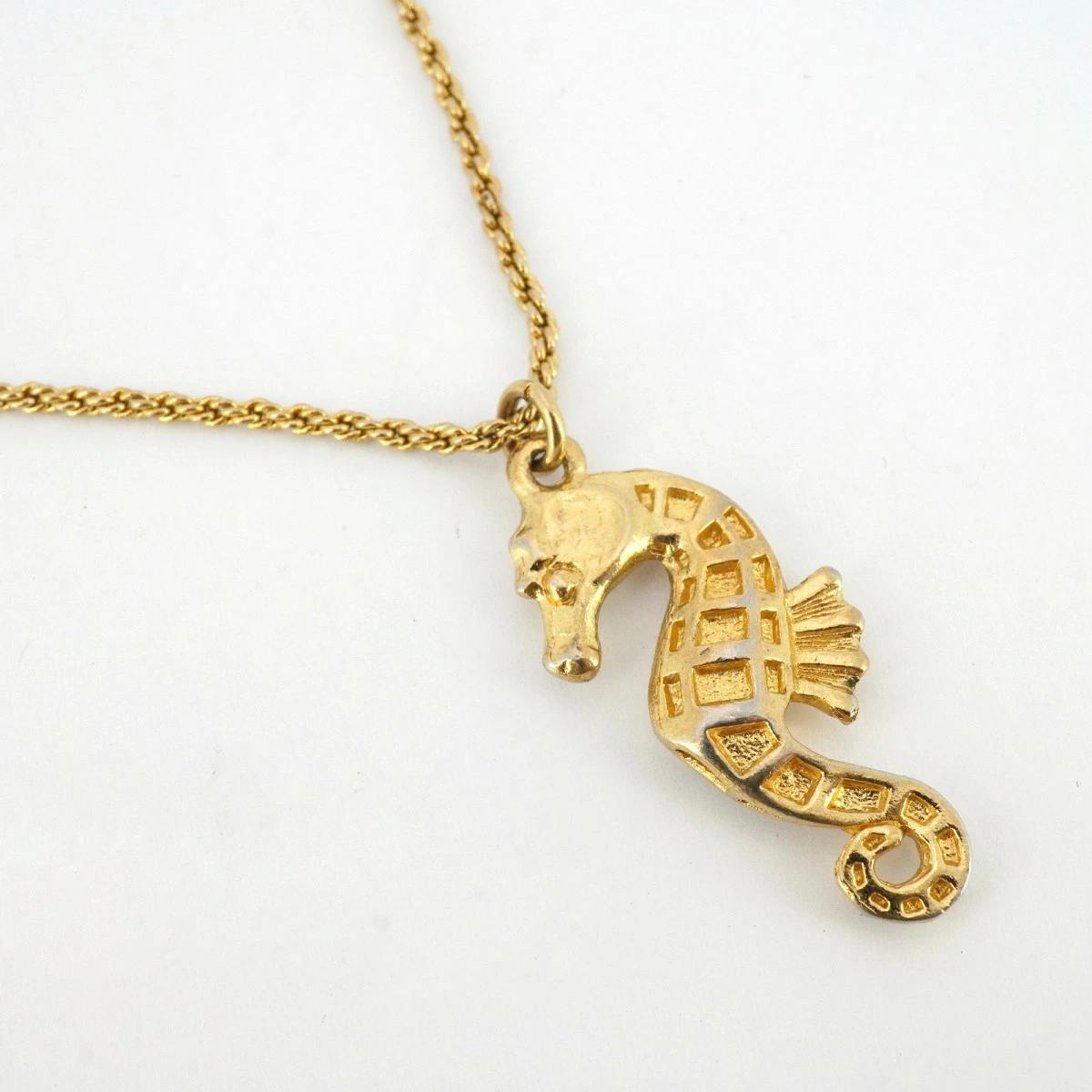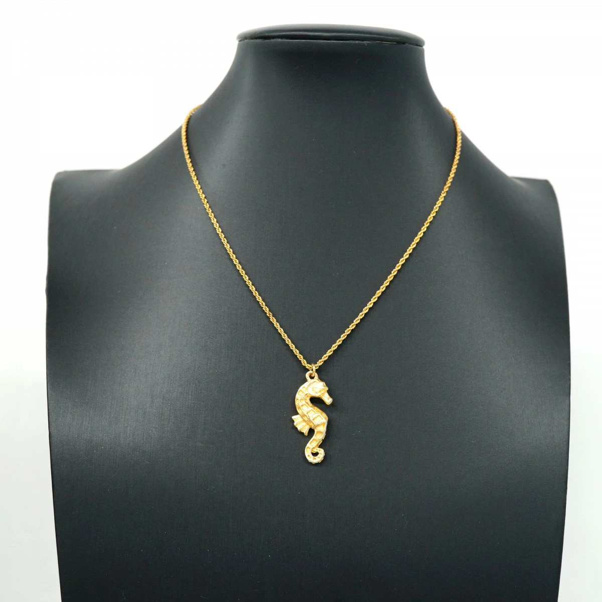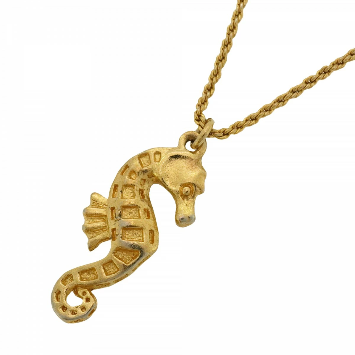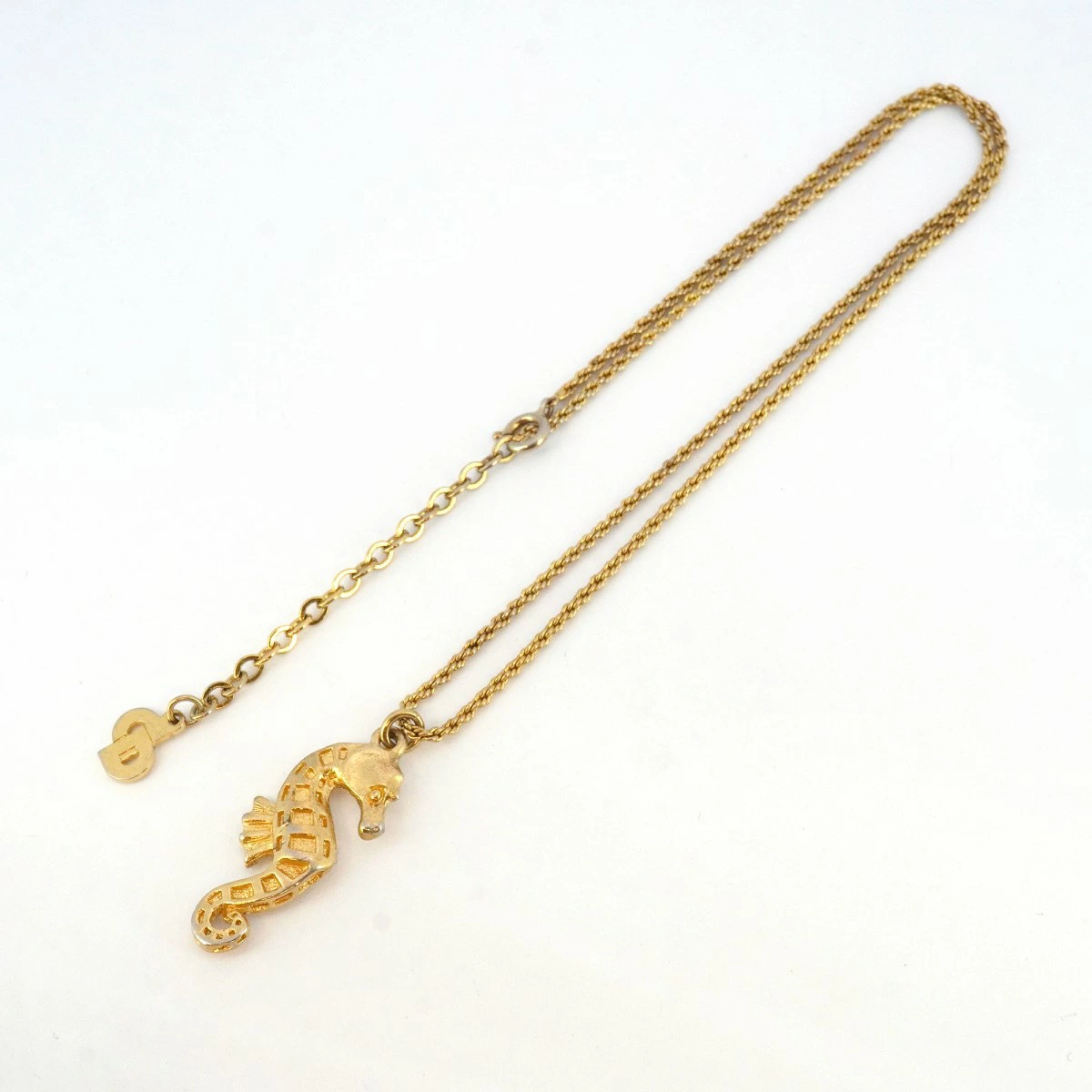 【5jpb0254】クリスチャンディオール ネックレス タツノオトシゴモチーフ GPメッキ ゴールド【中古】レディース