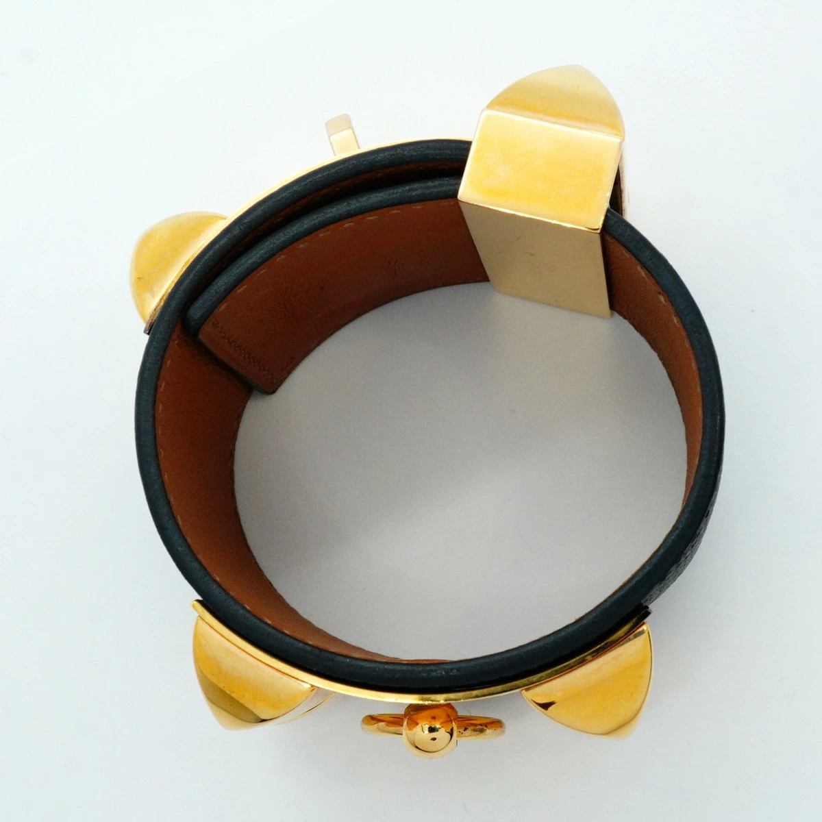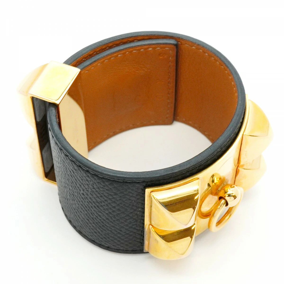【5jpb0264】エルメス バングル コリエドシアン GPメッキ レザー ゴールド ブラック【中古】レディース