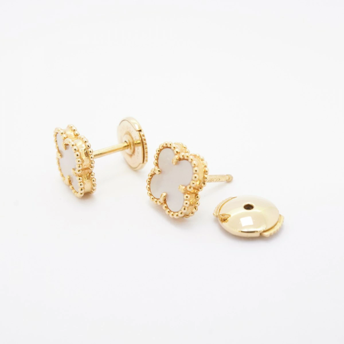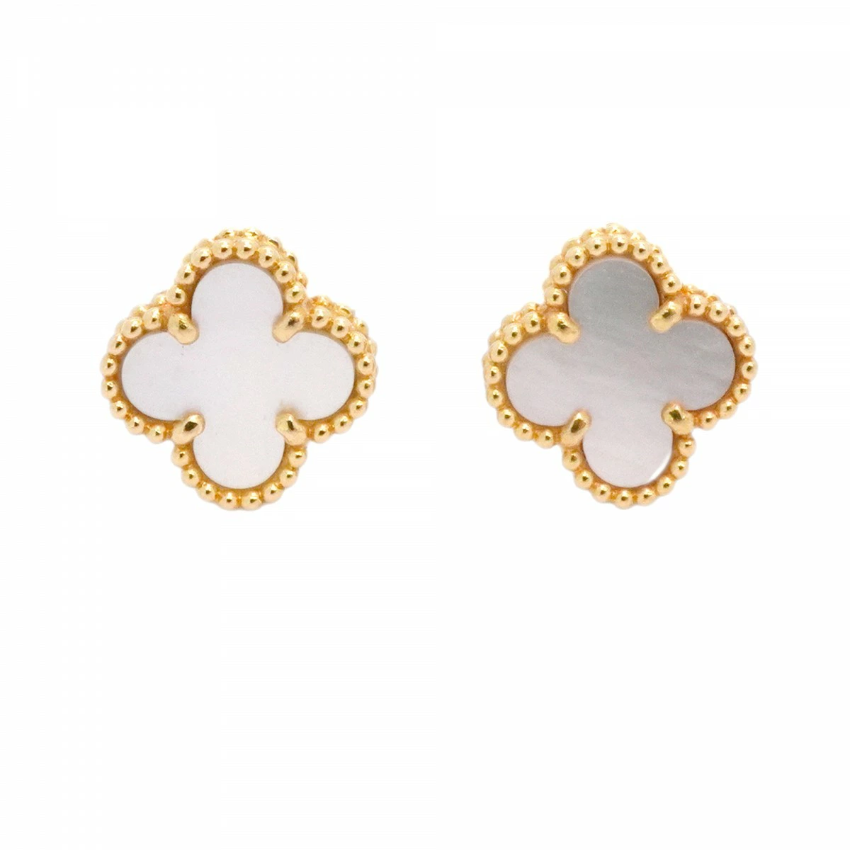 【5jpb0465】ヴァンクリーフ&アーペル ピアス スウィート アルハンブラ K18WG ホワイトゴールド マザーオブパール【中古】レディース