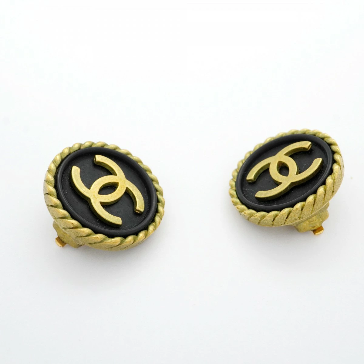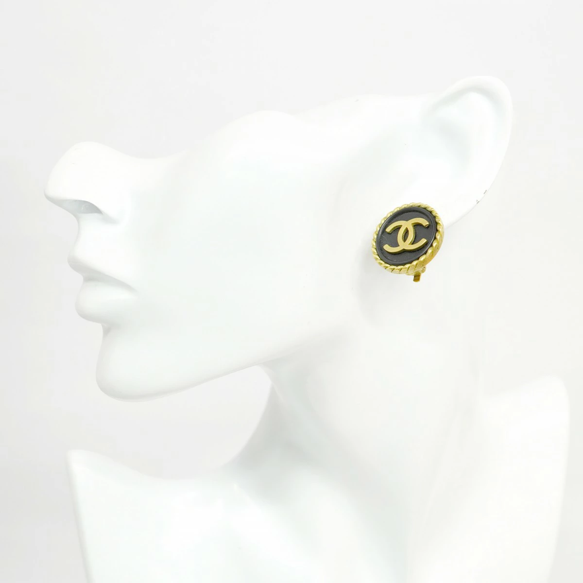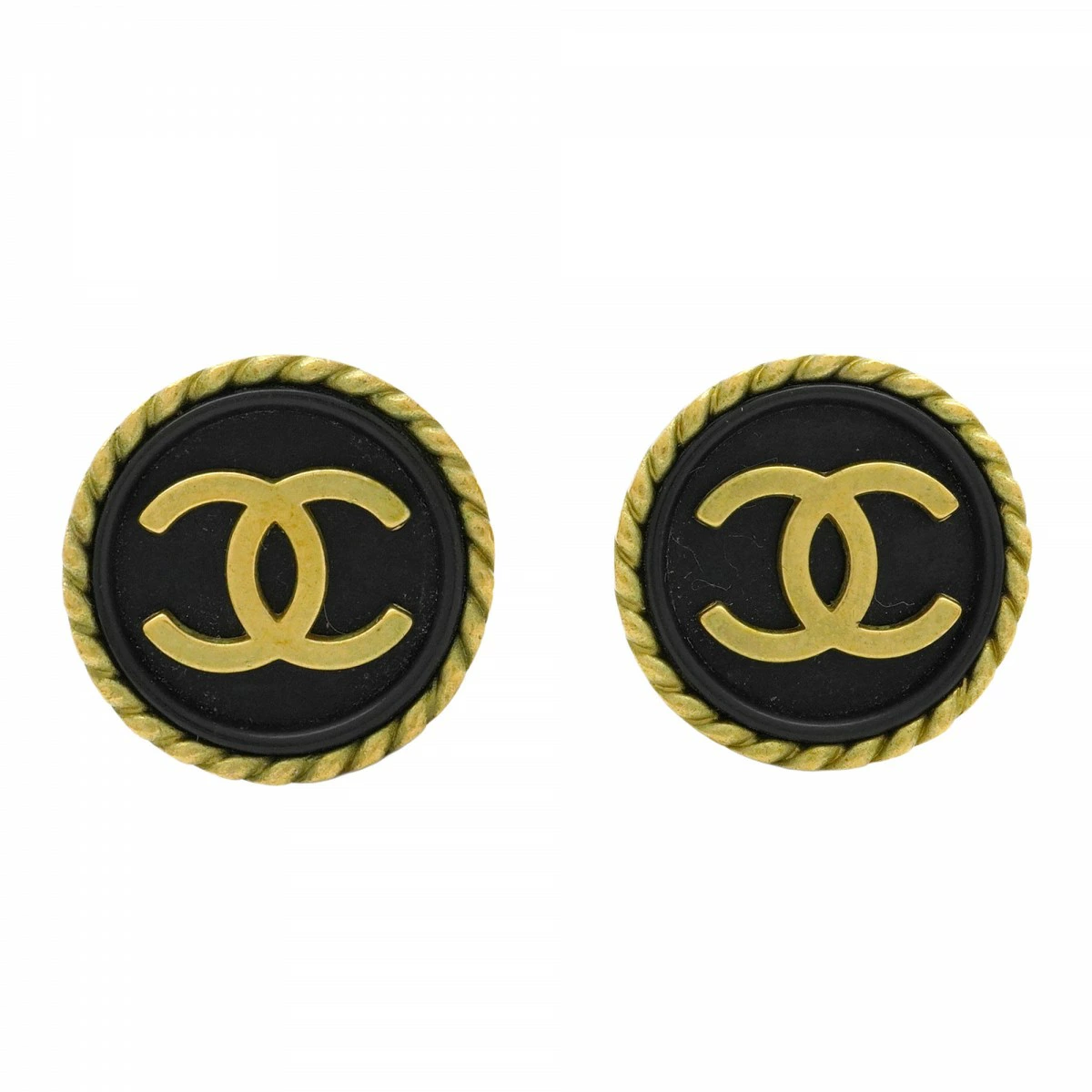 【5jpb0544】シャネル イヤリング ヴィンテージ ココマーク 丸型 サークル GPメッキ ゴールド ブラック【中古】レディース