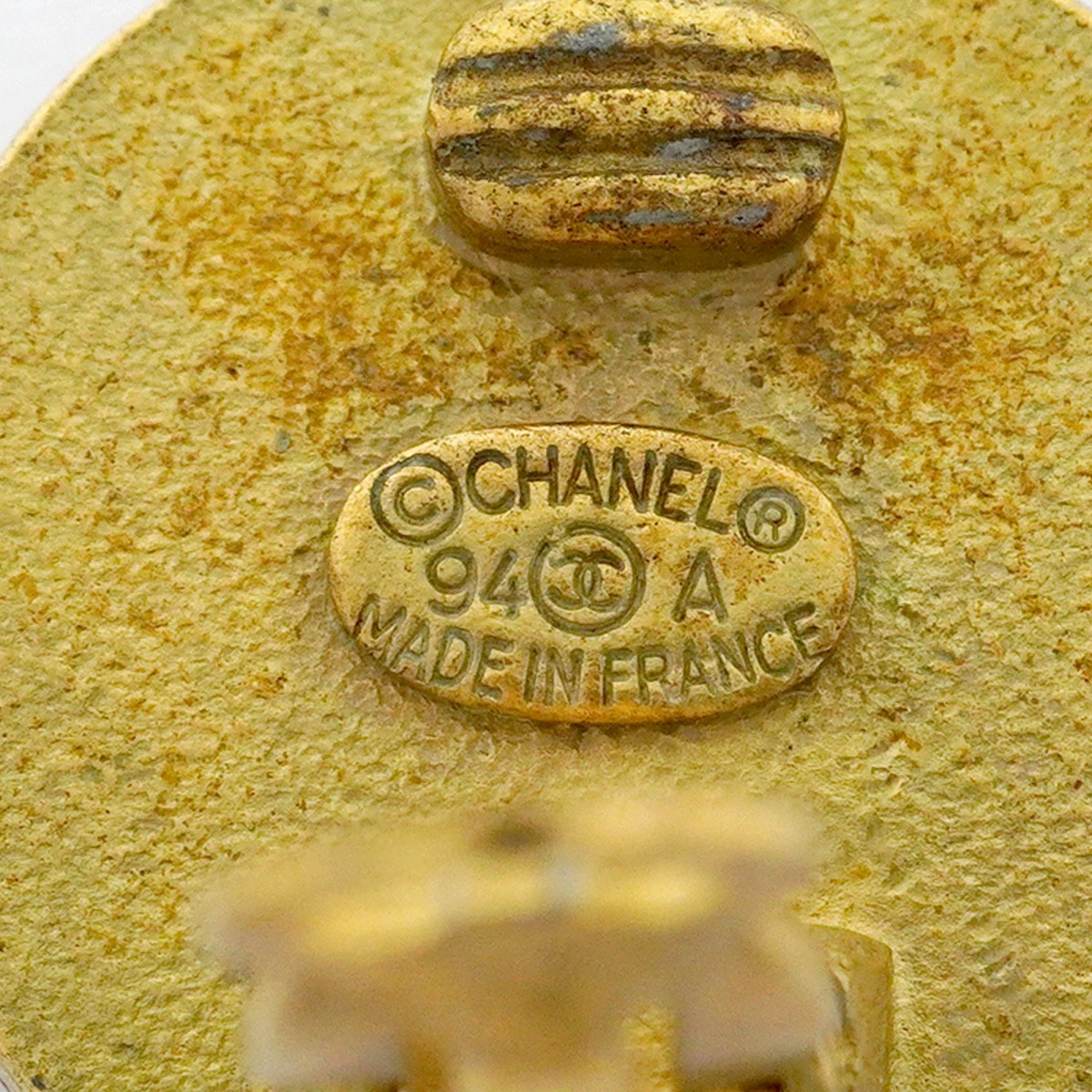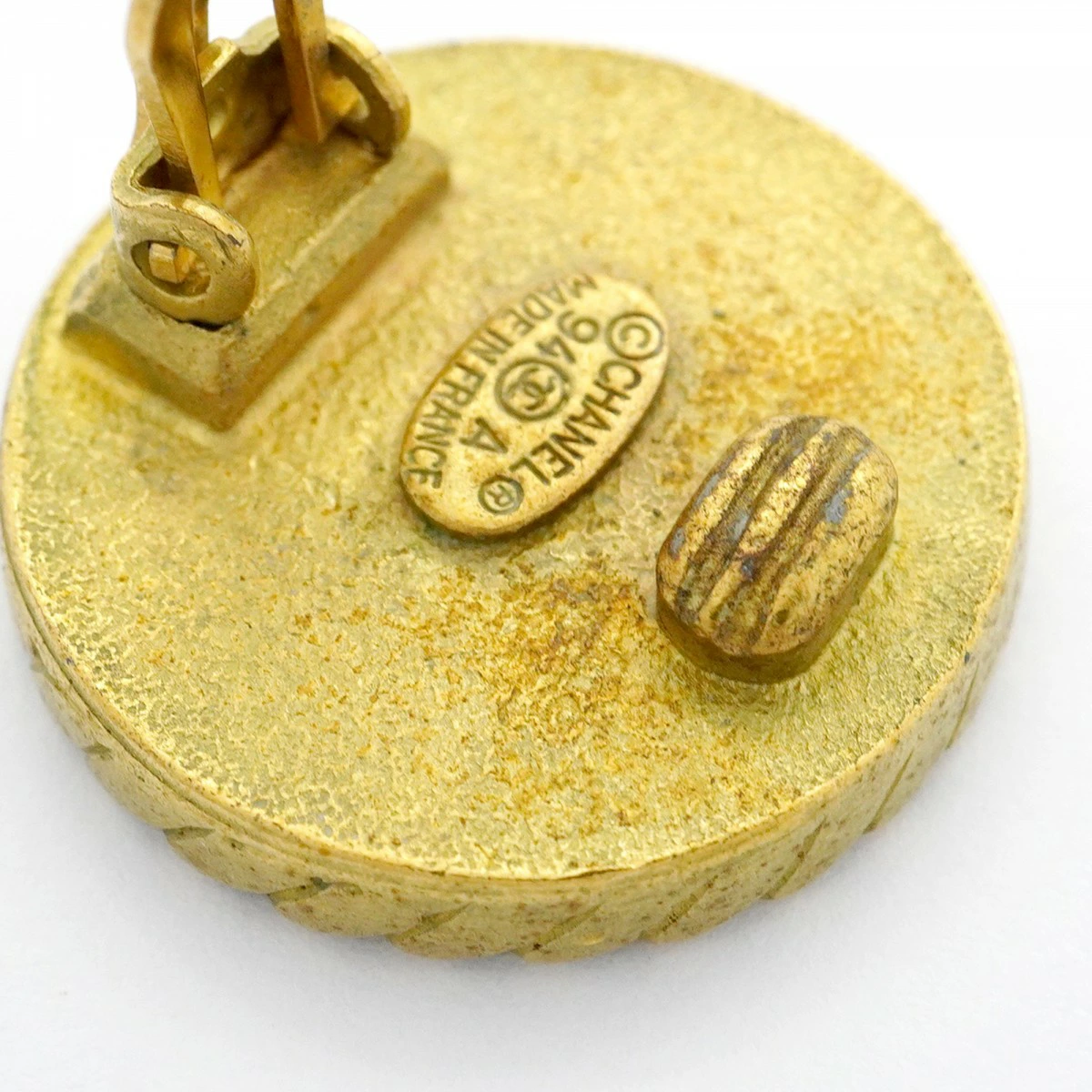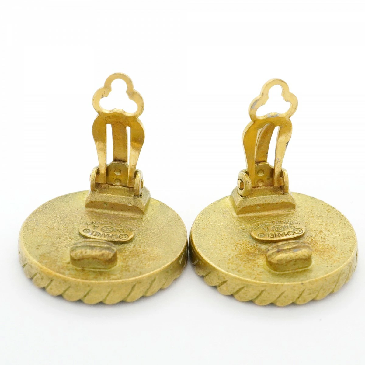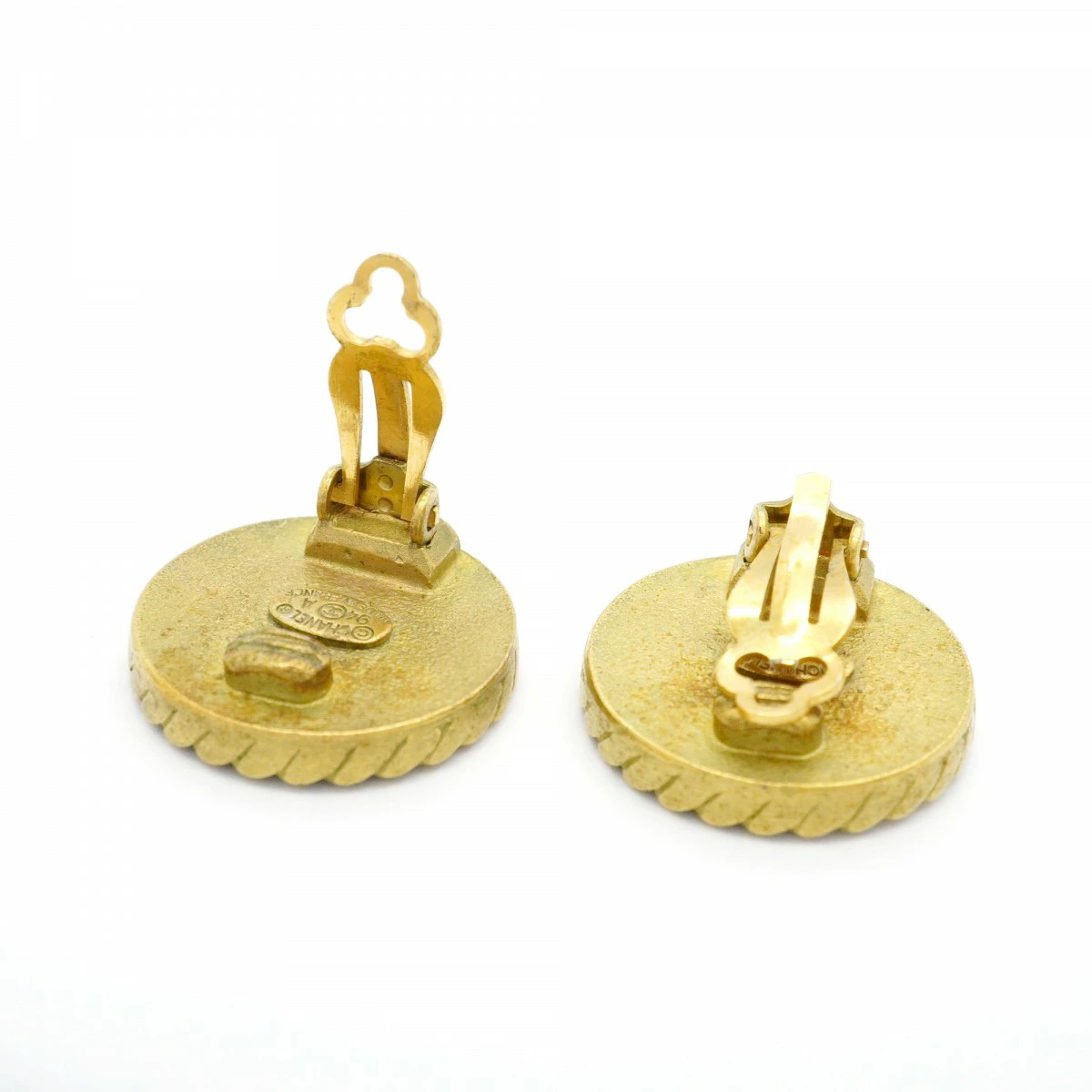 【5jpb0544】シャネル イヤリング ヴィンテージ ココマーク 丸型 サークル GPメッキ ゴールド ブラック【中古】レディース