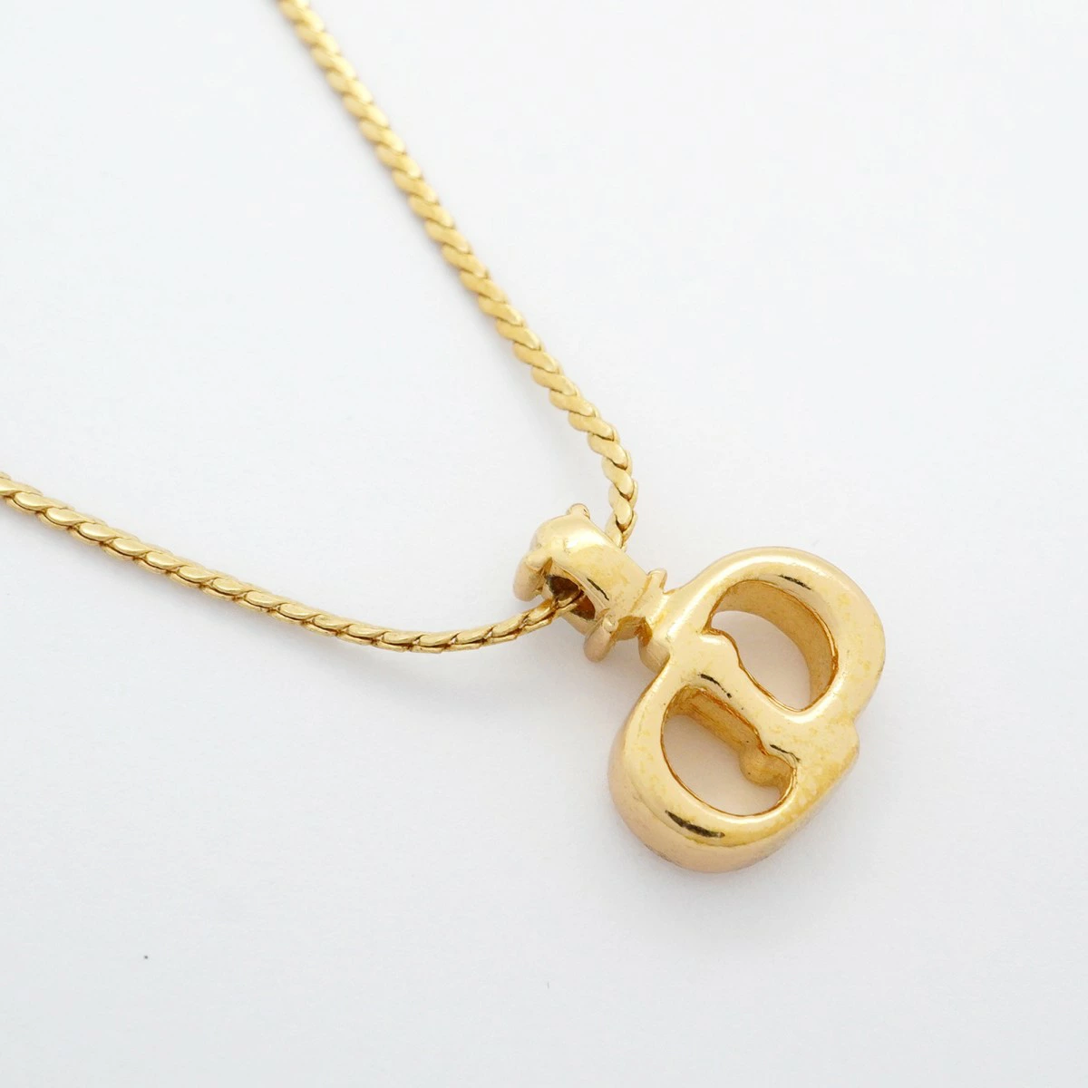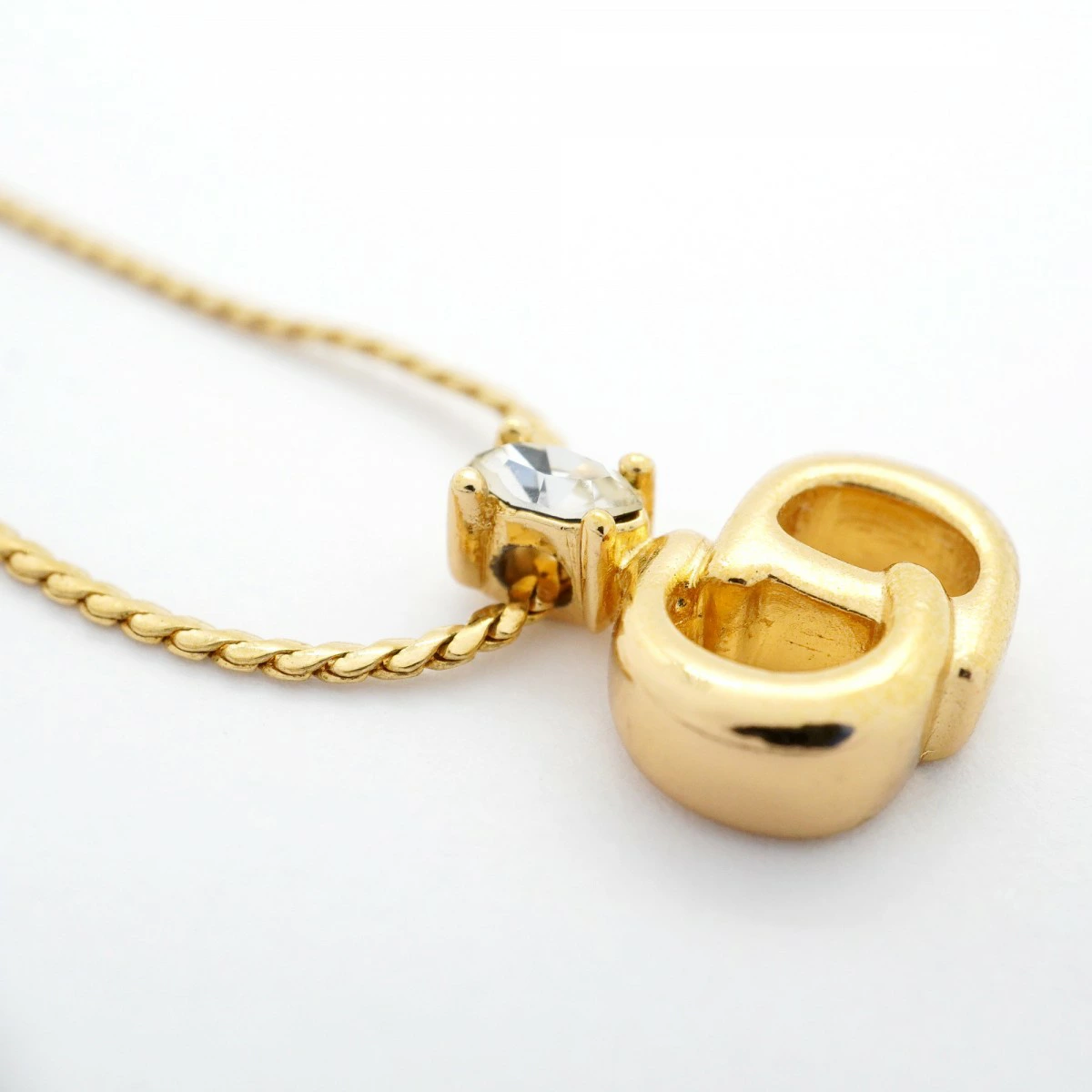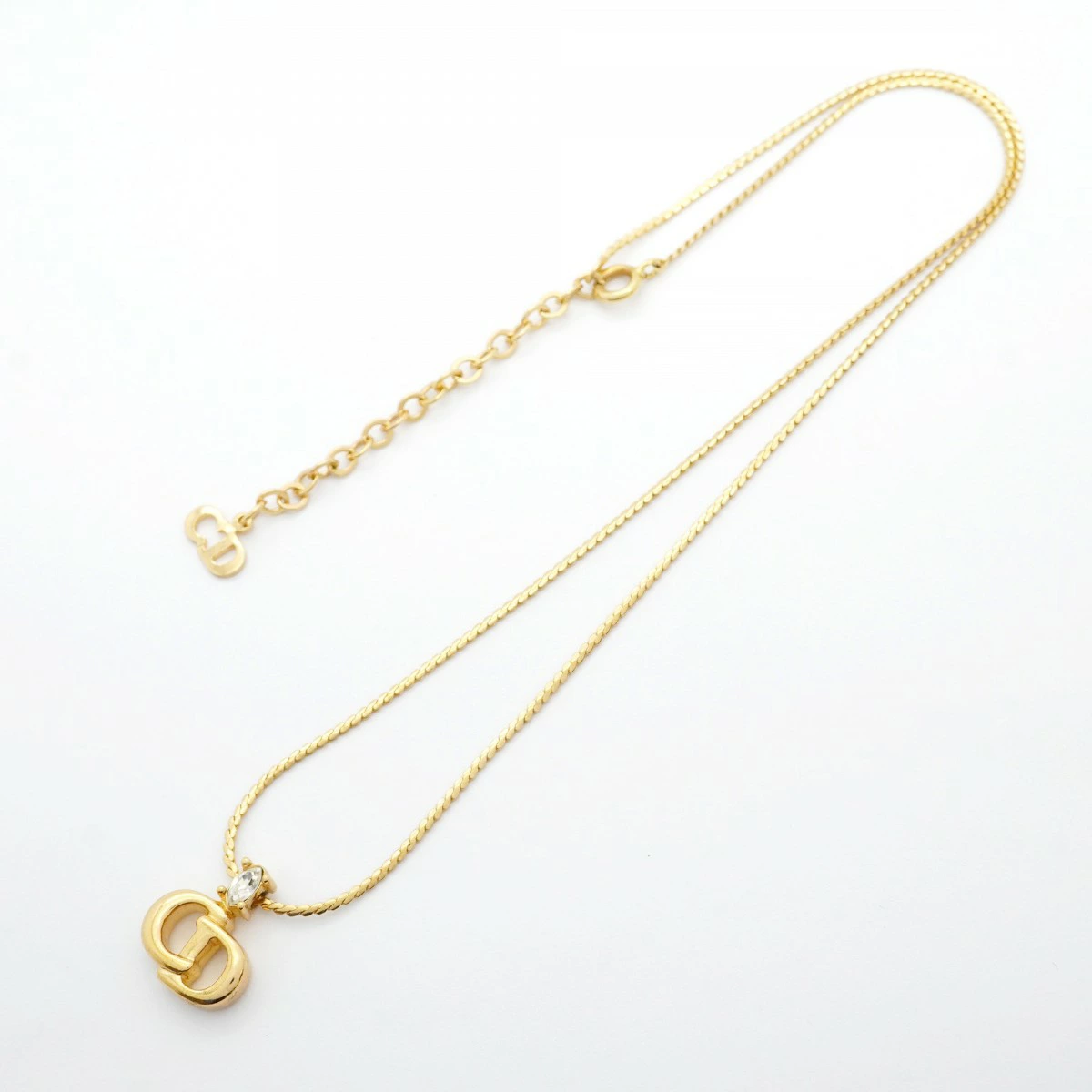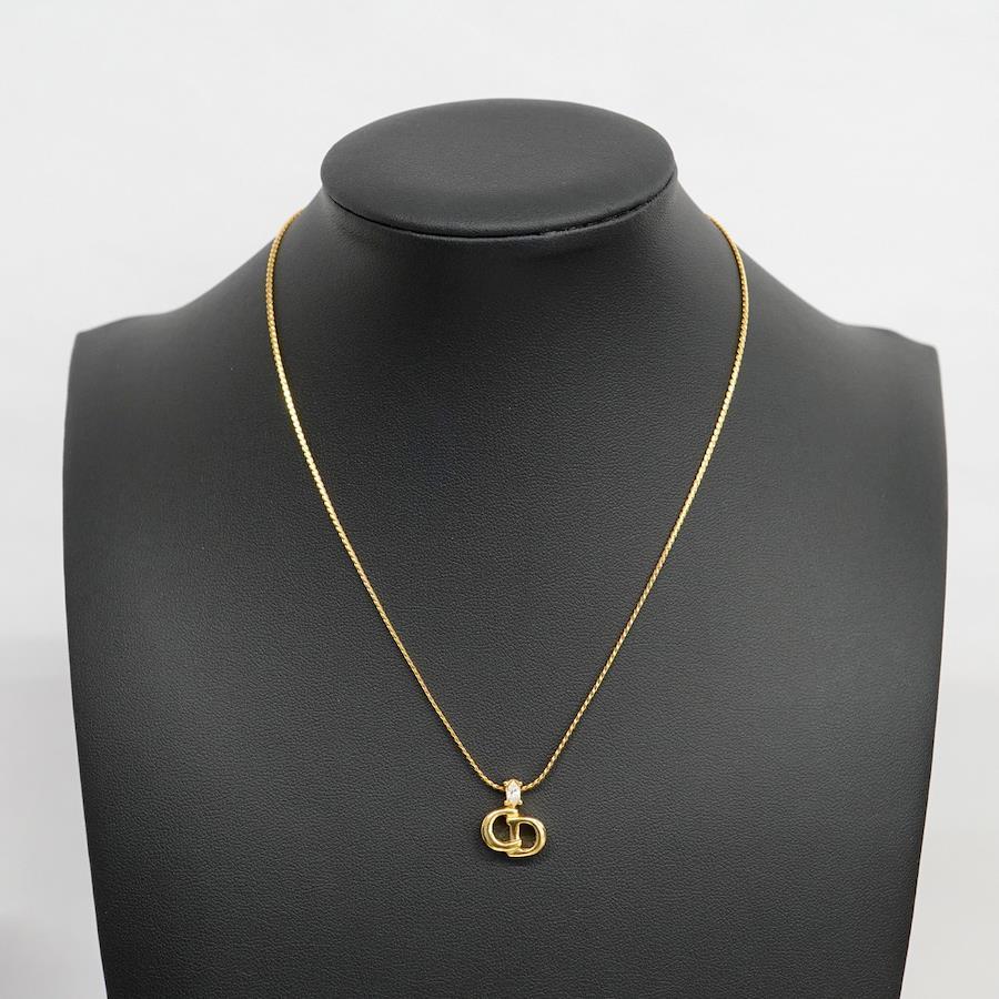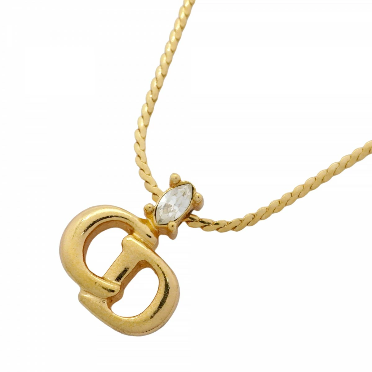 【5jpb0548】クリスチャンディオール ネックレス CDロゴ GPメッキ ラインストーン ゴールド【中古】レディース