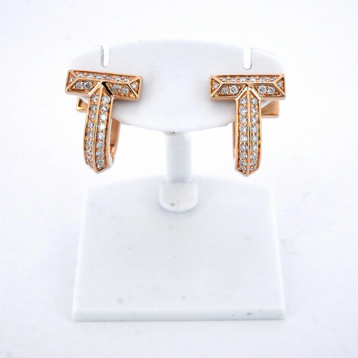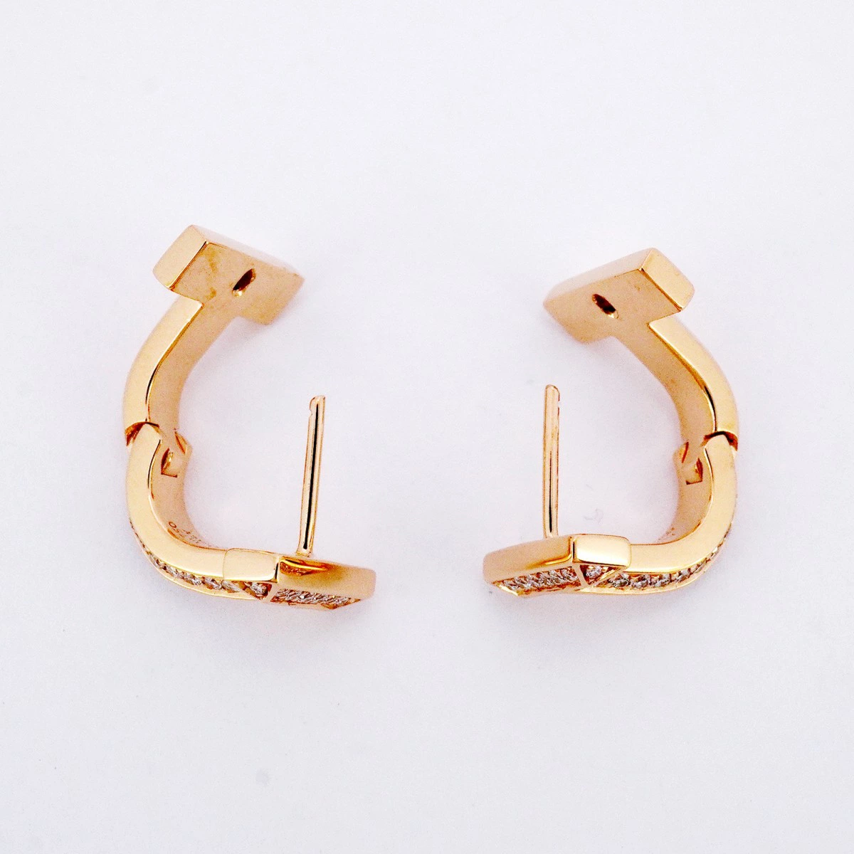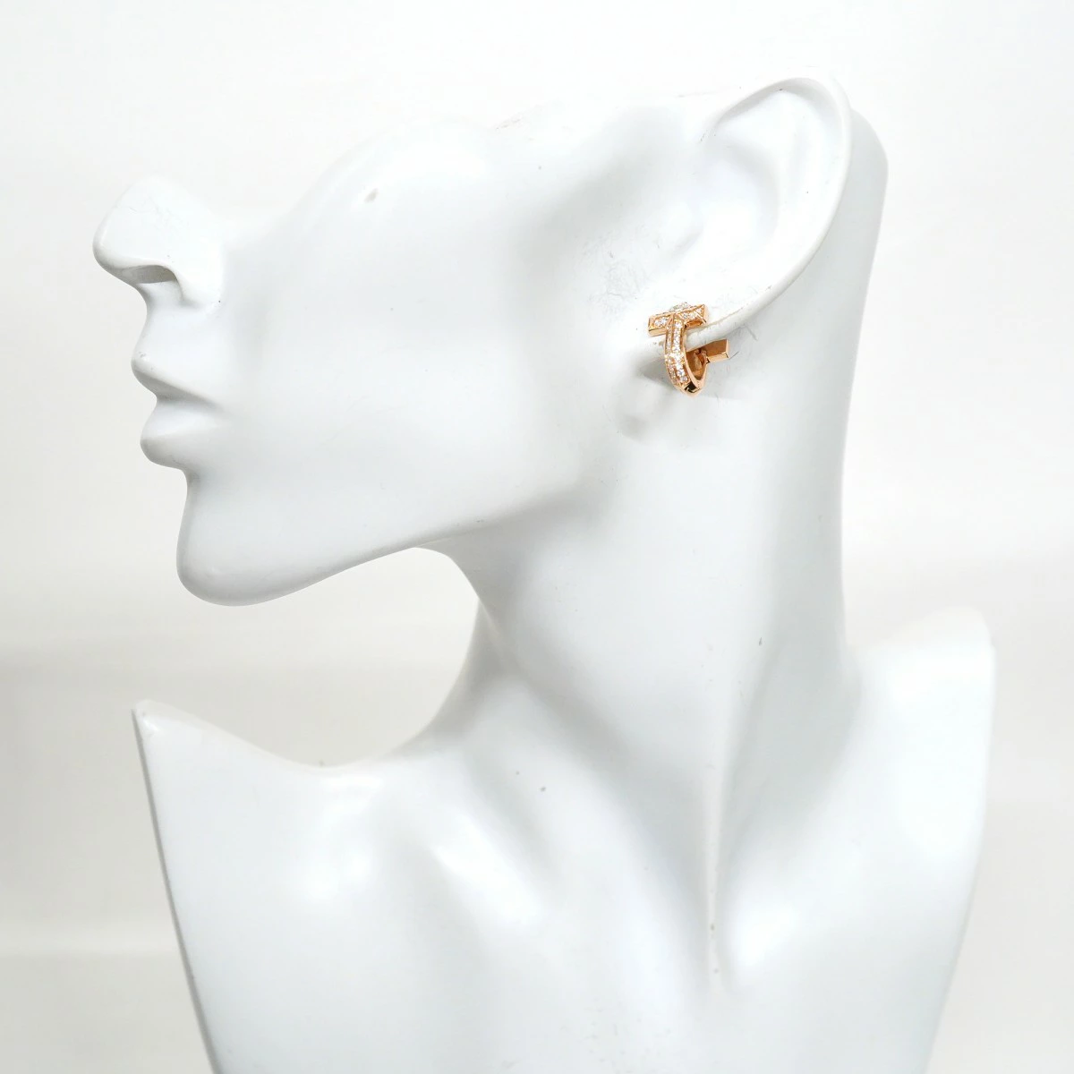 [5jpb0585] Tiffany T-One Huggie Half Pavé Earrings in 18K Pink Gold with 0.14ct Diamonds [Pre-owned] Women's